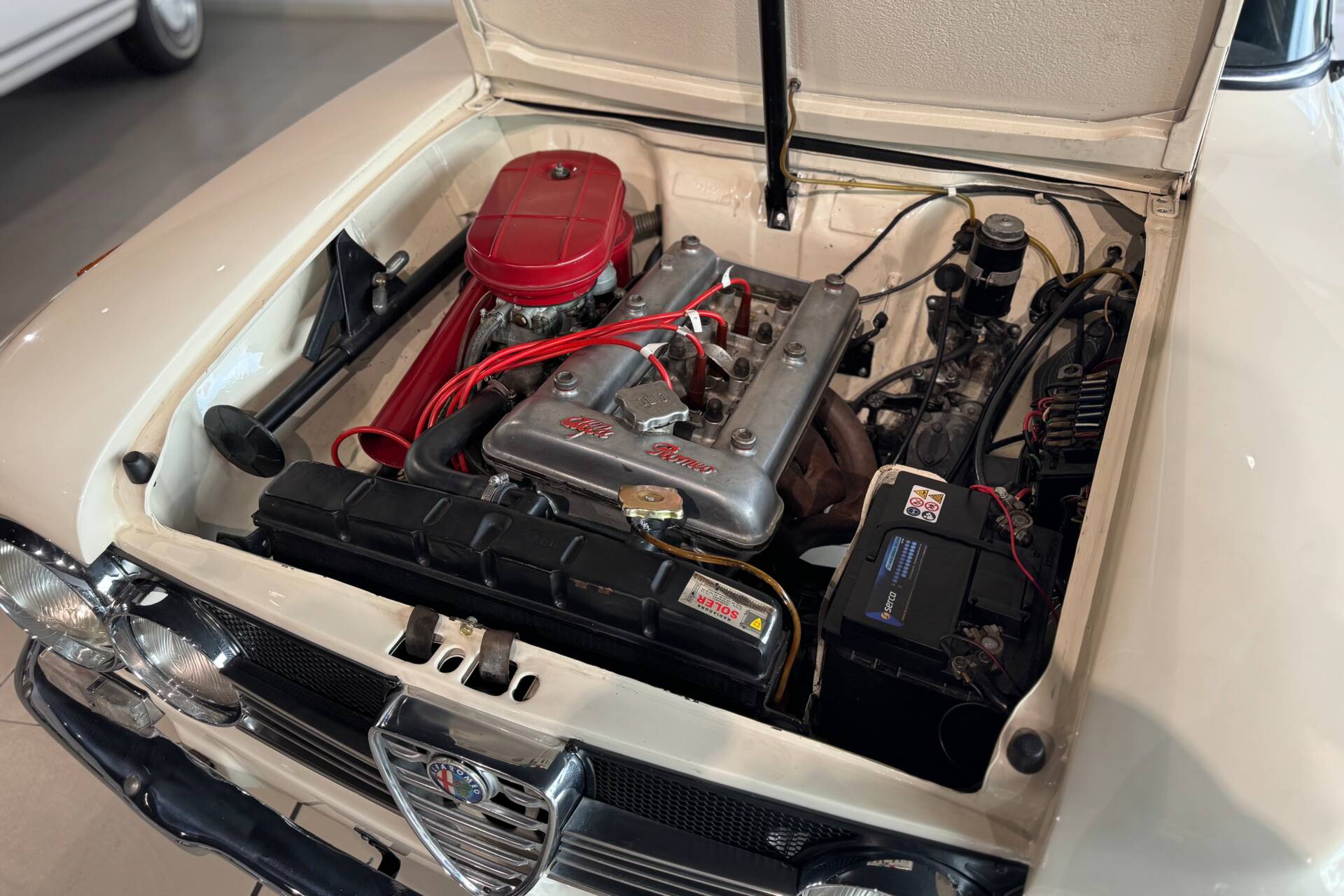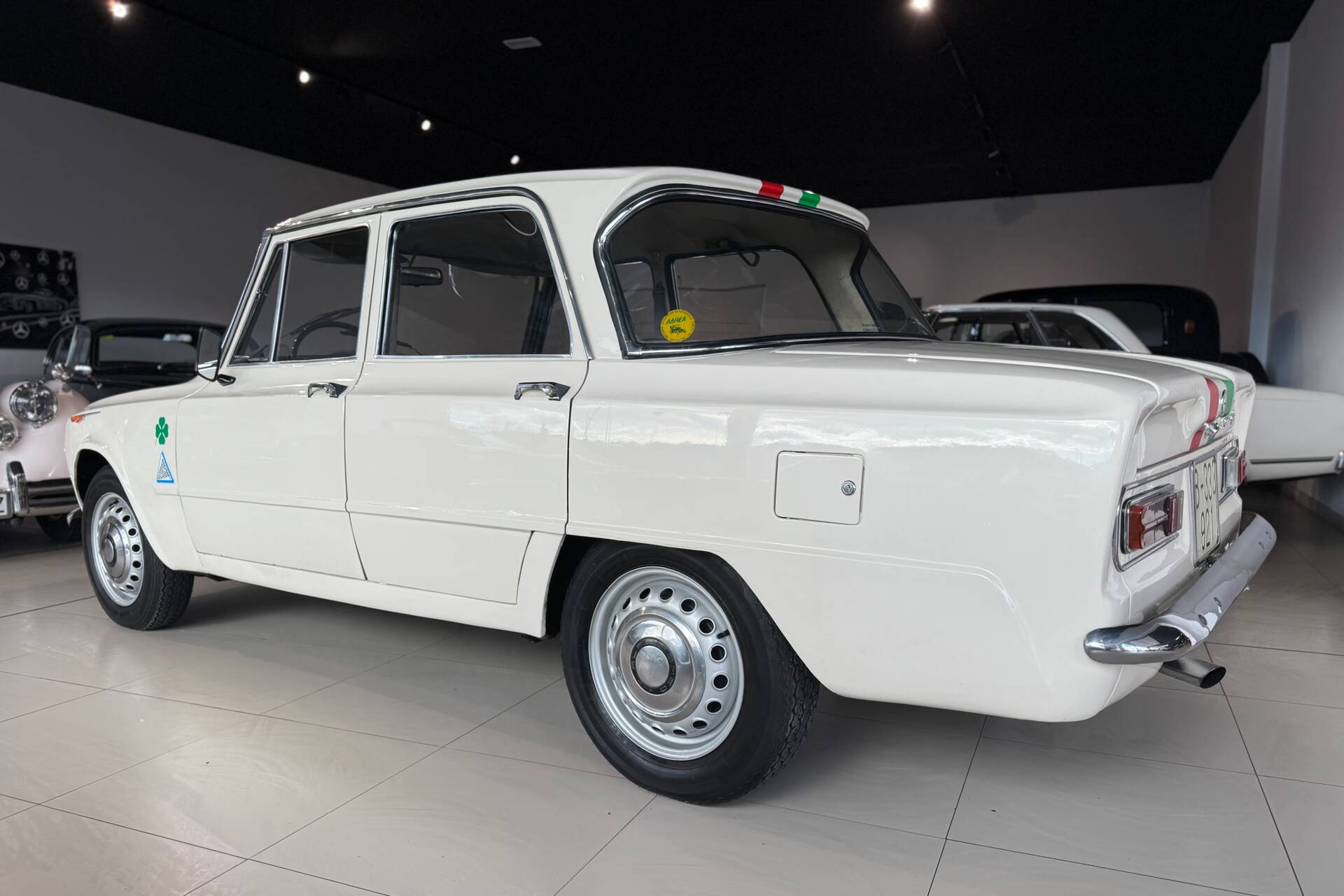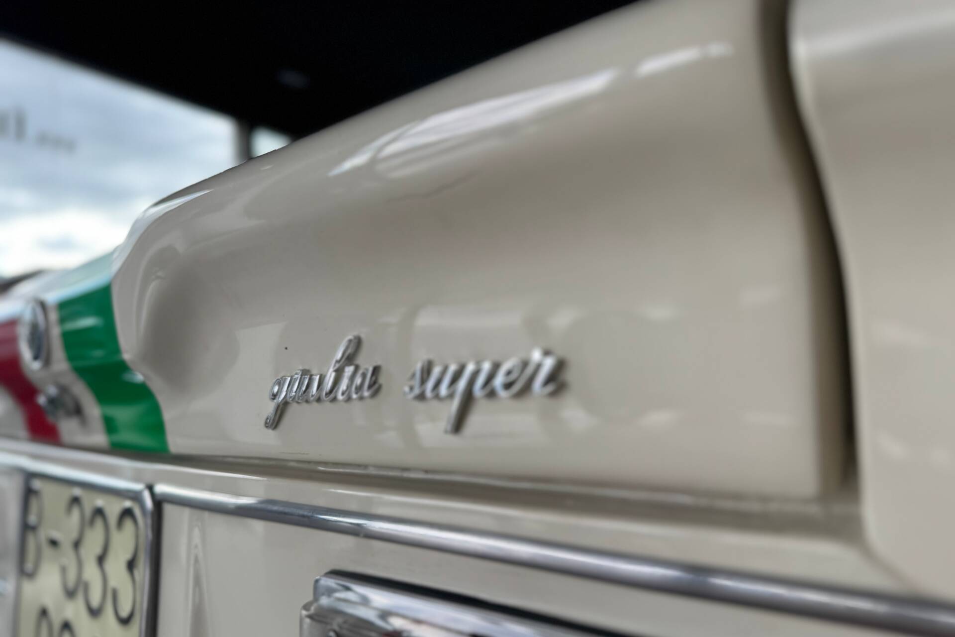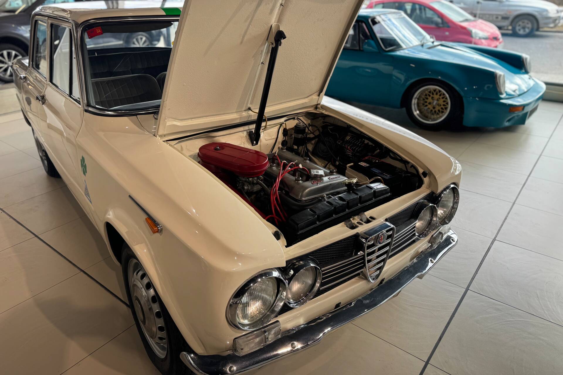 A 1963 Alfa Romeo Giulia TI 1600 in an elegant beige, one of the most iconic sports sedans in Italian automotive history.