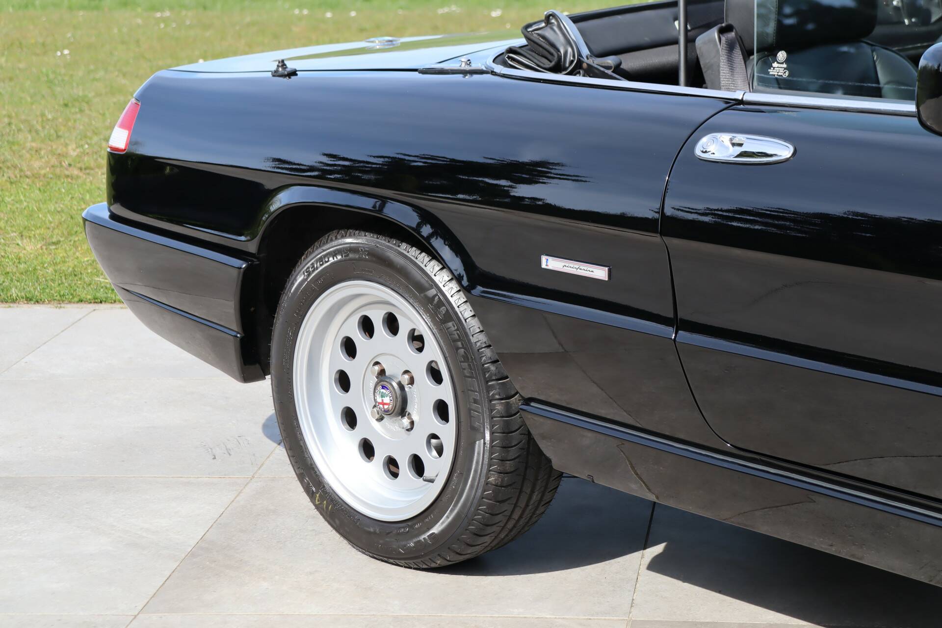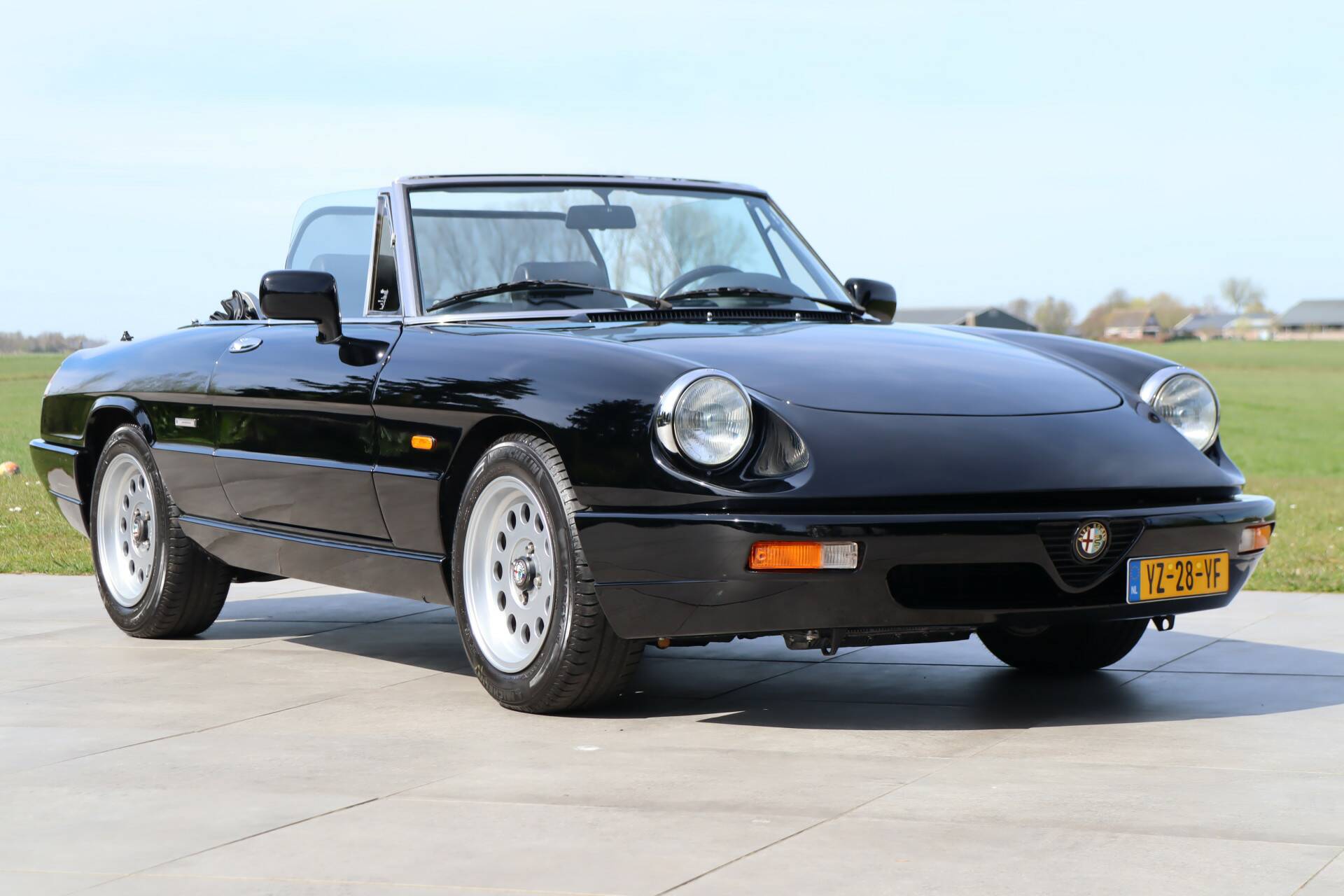 De Alfa is stijlvol uitgevoerd in zwart lakwerk 'Nero' (kleurcode 817) met een zwart lederen interieur. Een zeldzame, stoere en zeer fraaie kleur voor deze Spider, juist omdat deze zo weinig voorkomt. Het lakwerk verkeert in zeer goede staat en heeft een diepe glans. In april 2026 is een professionele poetsbeurt uitgevoerd. Ook het chroomwerk verkeert in een goede staat. De auto verkeert in originele conditie en dit heeft alles te maken met de zeldzaam lage kilometerstand. De aluminium 15" Ronal velgen zijn zo goed als nieuw, en zijn rondom voorzien van goede Michelin banden. De rubbers en verlichting zijn nog gaaf. De ramen rondom zijn nog origineel. Er is een elektrische antenne aanwezig. De zwarte softtop is nog origineel maar in zeer goede staat, wat erop duidt dat de auto altijd droog gestald is. De softtop kan keurig opgeborgen worden onder de tonneaucover.