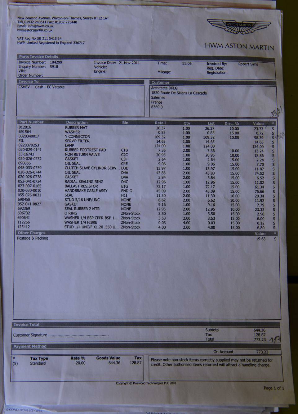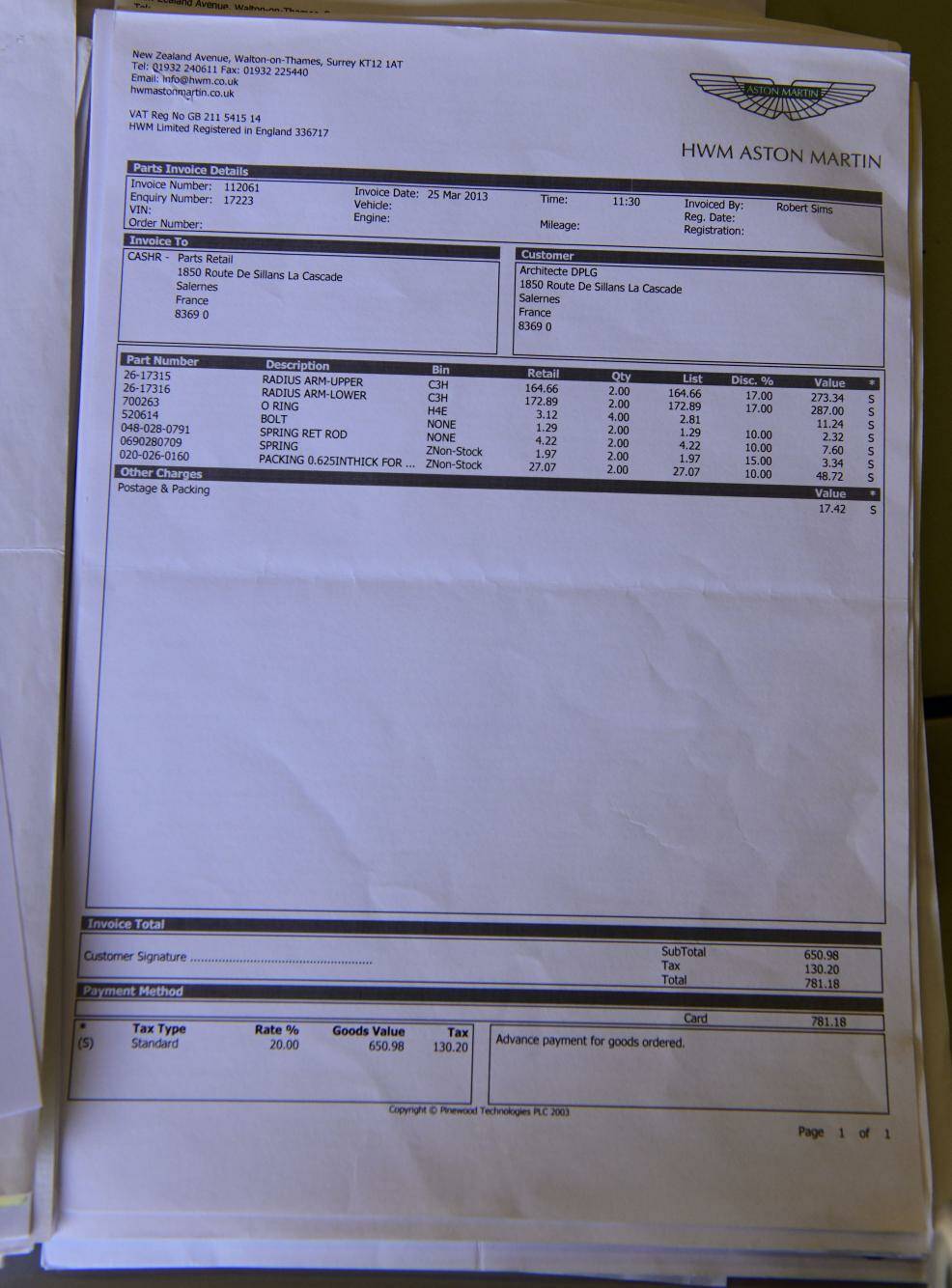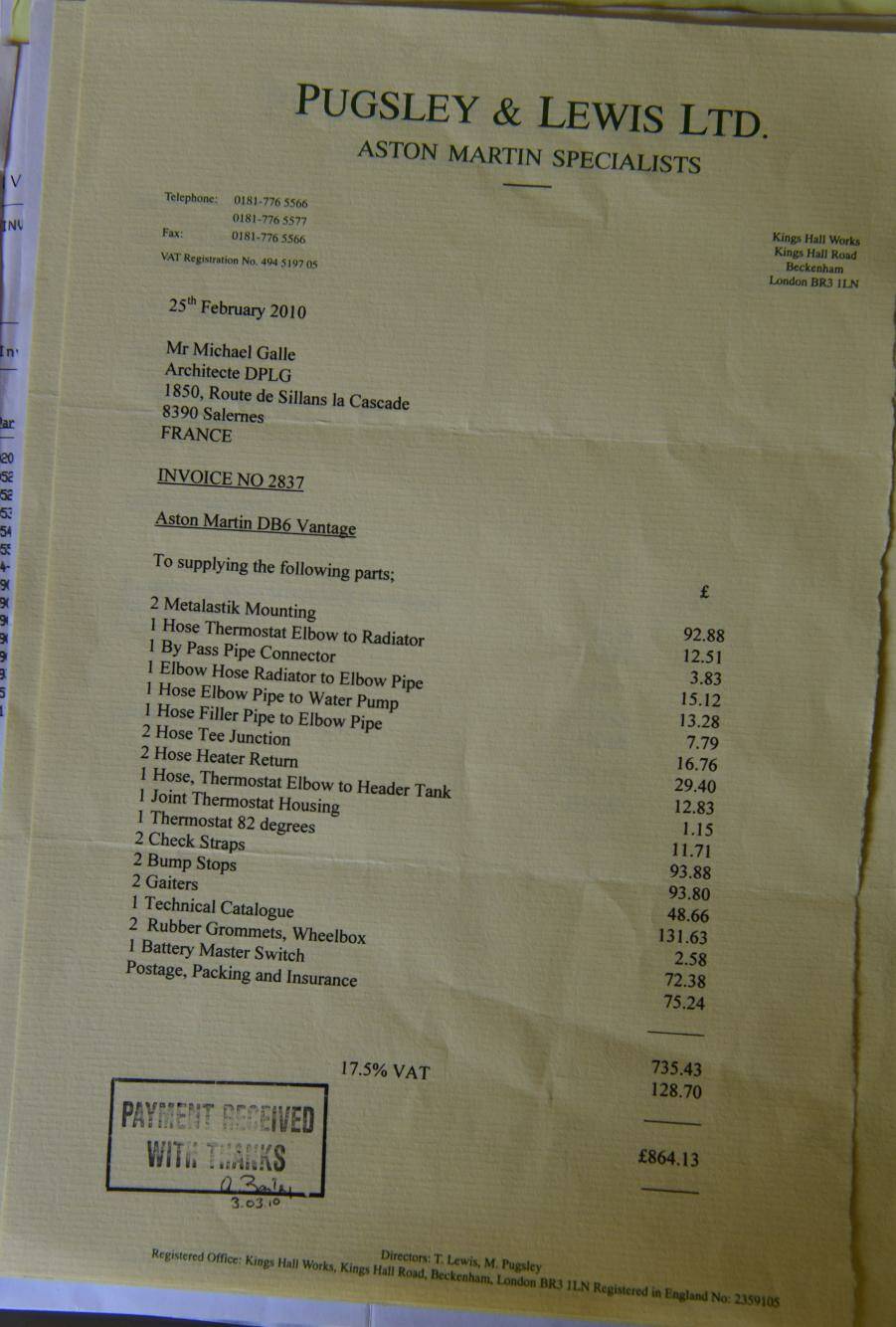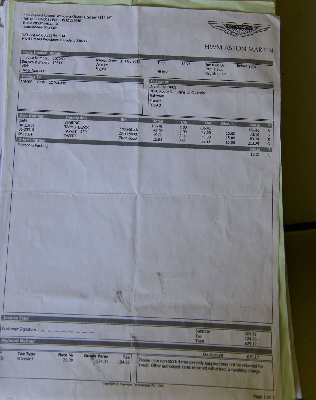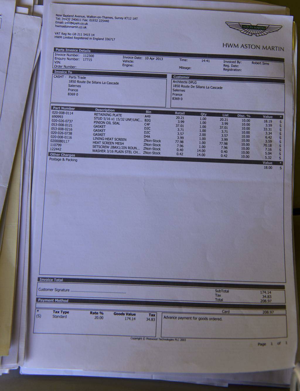 THIS DB6 MANUAL Vantage WAS supplied new through HW Motors to Seven Dial Motors. Options: Vantage engine, chrome wheels with White Wall Tyres, HRW, 3.73:1 limited slip diff, Marchal Foglamps Two front seat belts. New car price £3332.0.0.