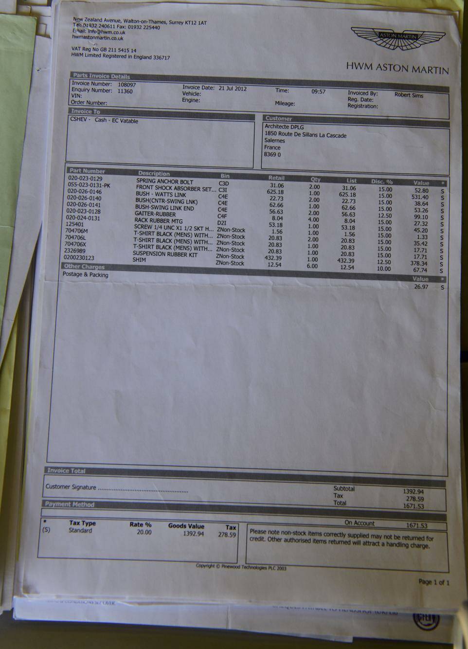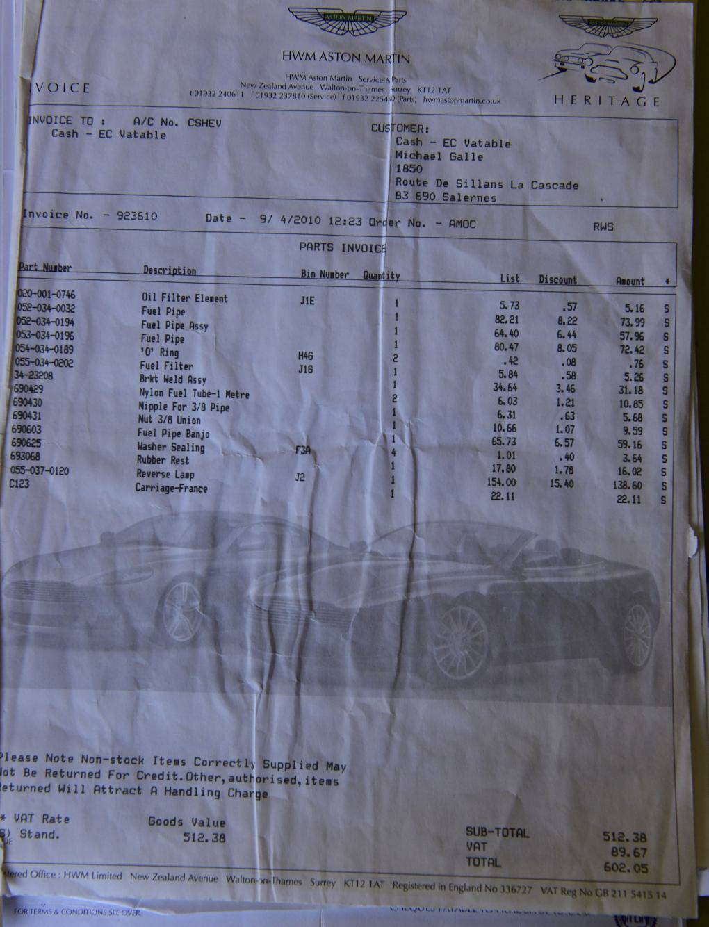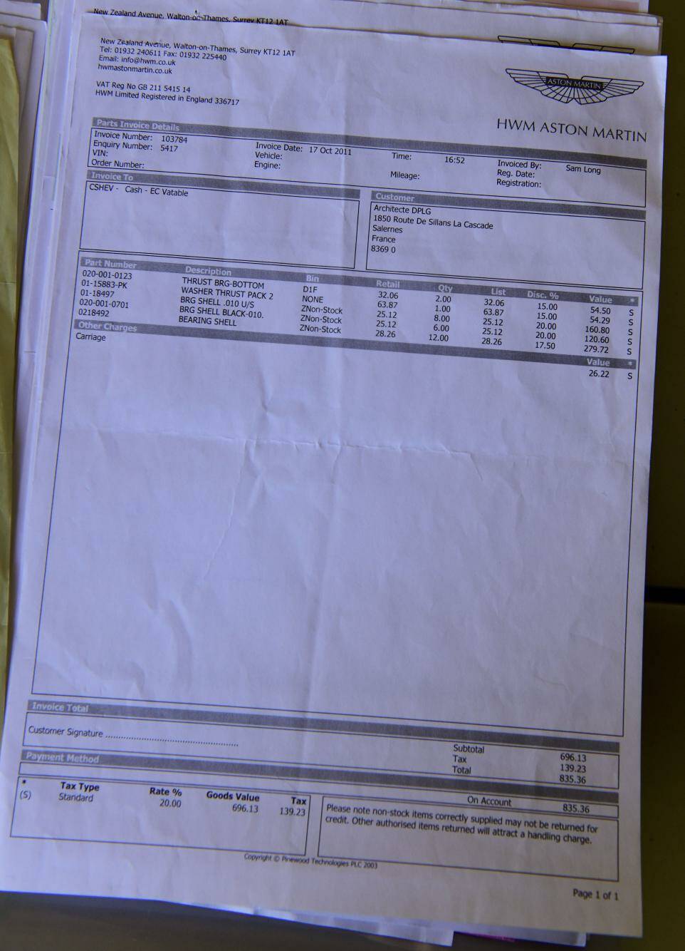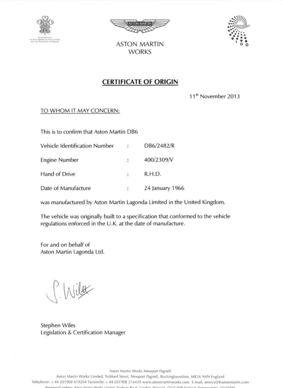 THIS DB6 MANUAL Vantage WAS supplied new through HW Motors to Seven Dial Motors. Options: Vantage engine, chrome wheels with White Wall Tyres, HRW, 3.73:1 limited slip diff, Marchal Foglamps Two front seat belts. New car price £3332.0.0.