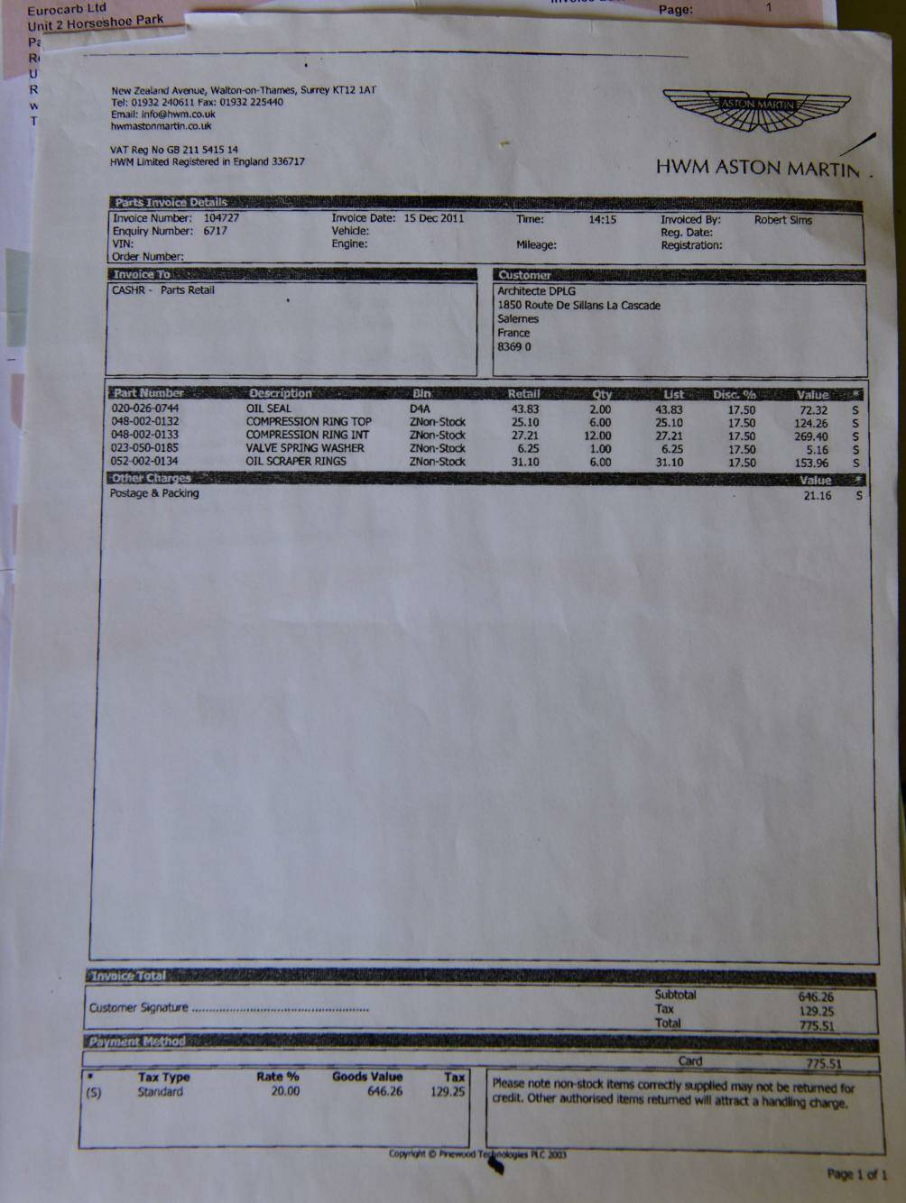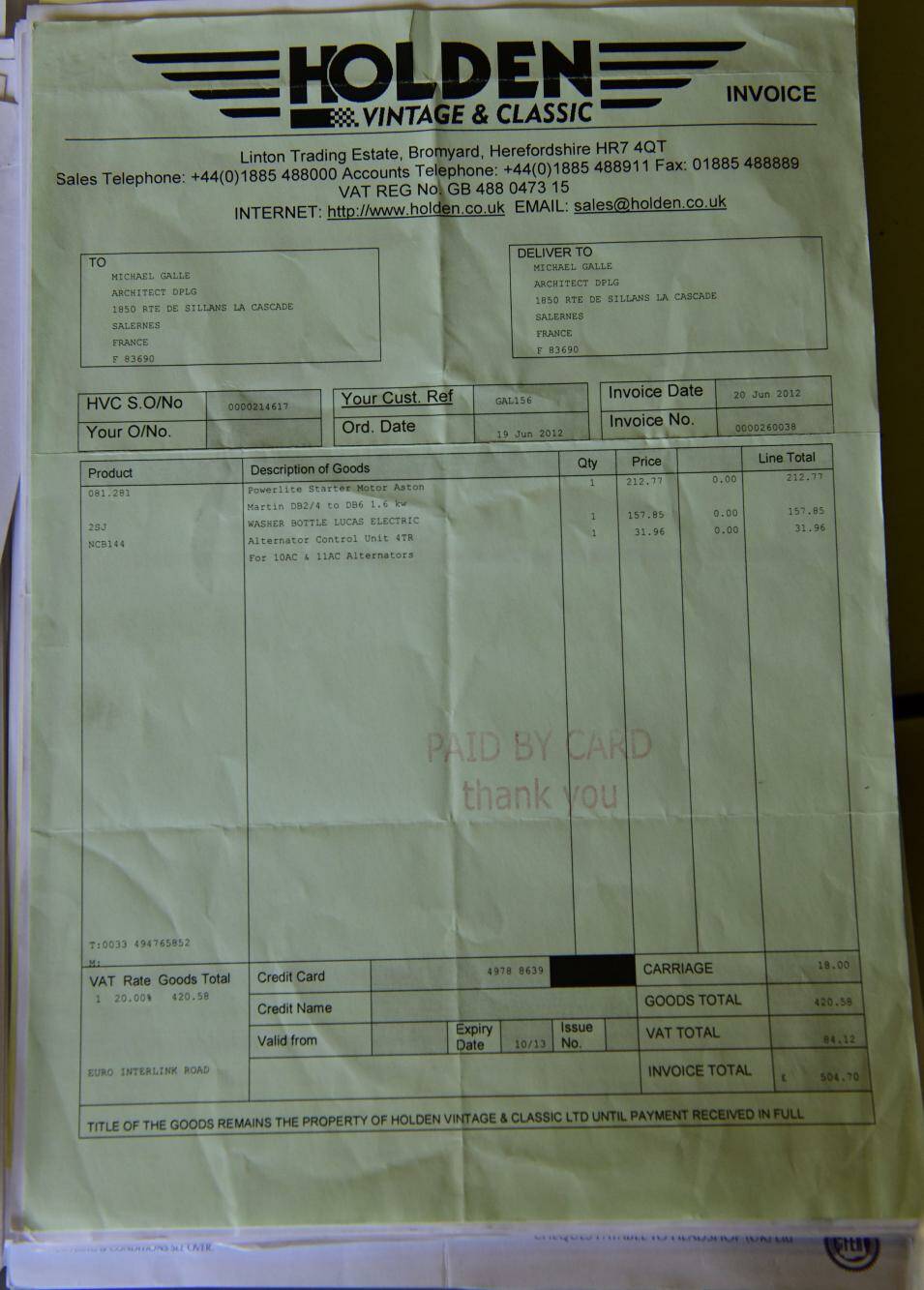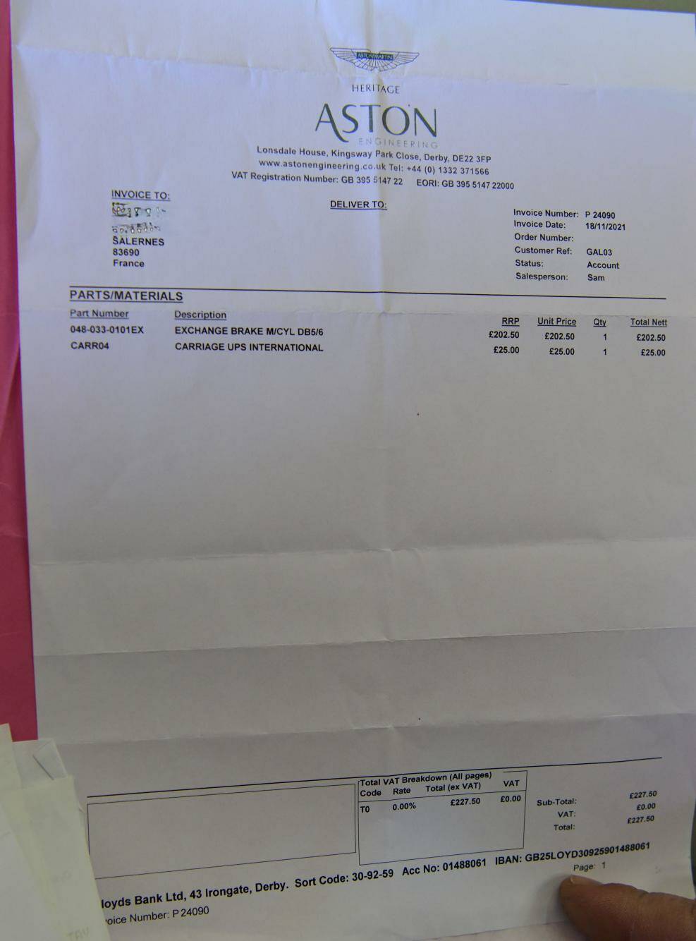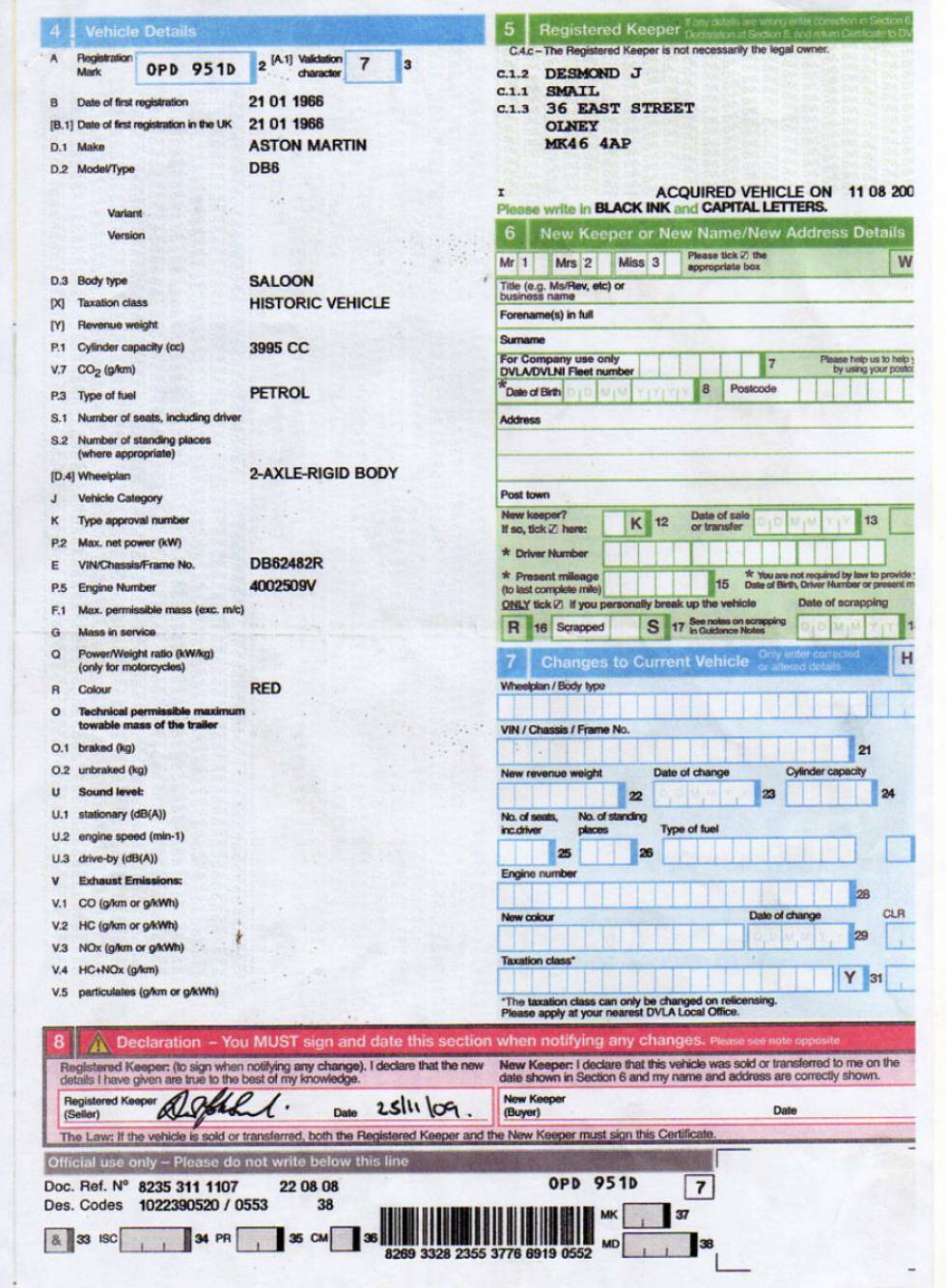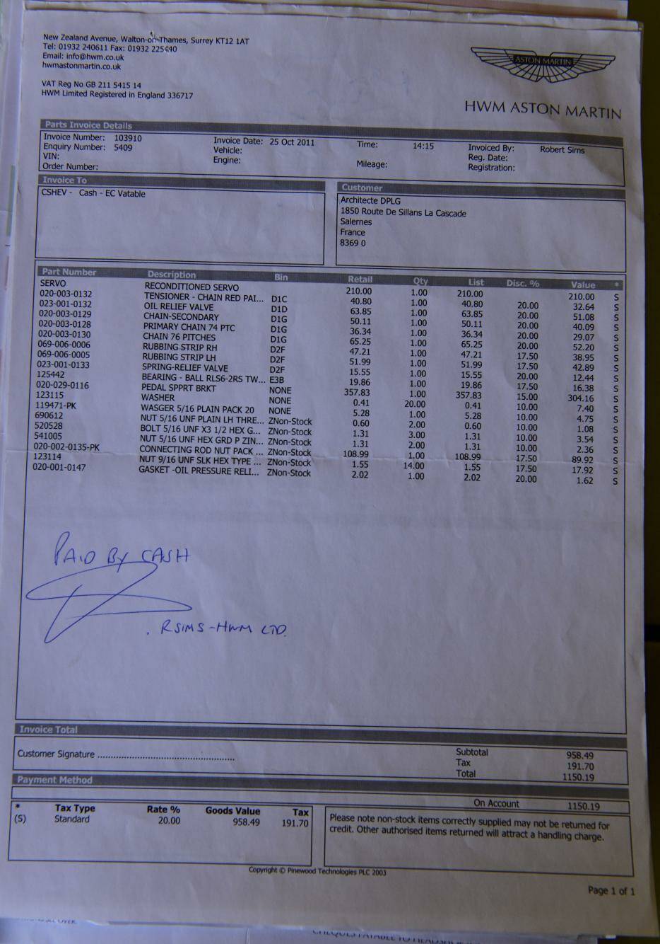 THIS DB6 MANUAL Vantage WAS supplied new through HW Motors to Seven Dial Motors. Options: Vantage engine, chrome wheels with White Wall Tyres, HRW, 3.73:1 limited slip diff, Marchal Foglamps Two front seat belts. New car price £3332.0.0.