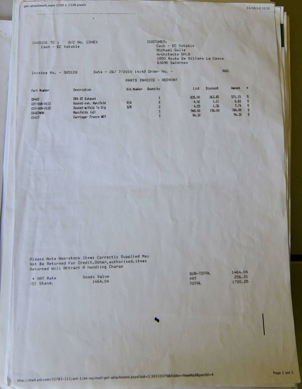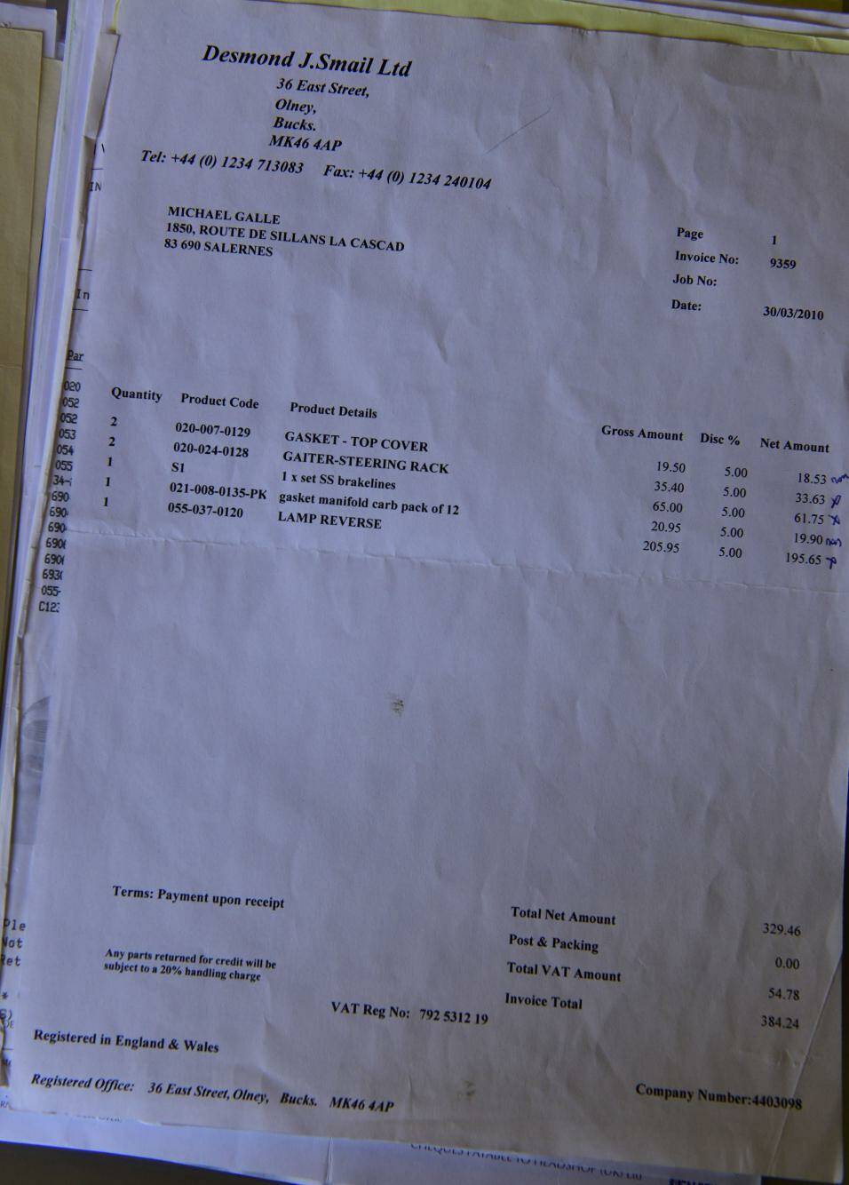 Residing with the current French onwer for a decade or so; He has during this time lavished time & money on the car to put it into tip top mechanical condition including a full engine rebuild by a specialist using all the right parts for which bills are on file. The engine is thus fresh & running beautifully with just a few thousand miles on it since the rebuild.