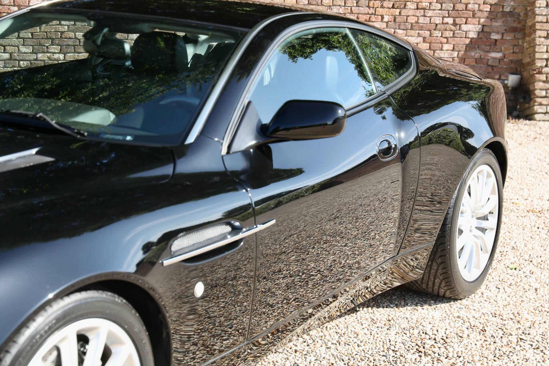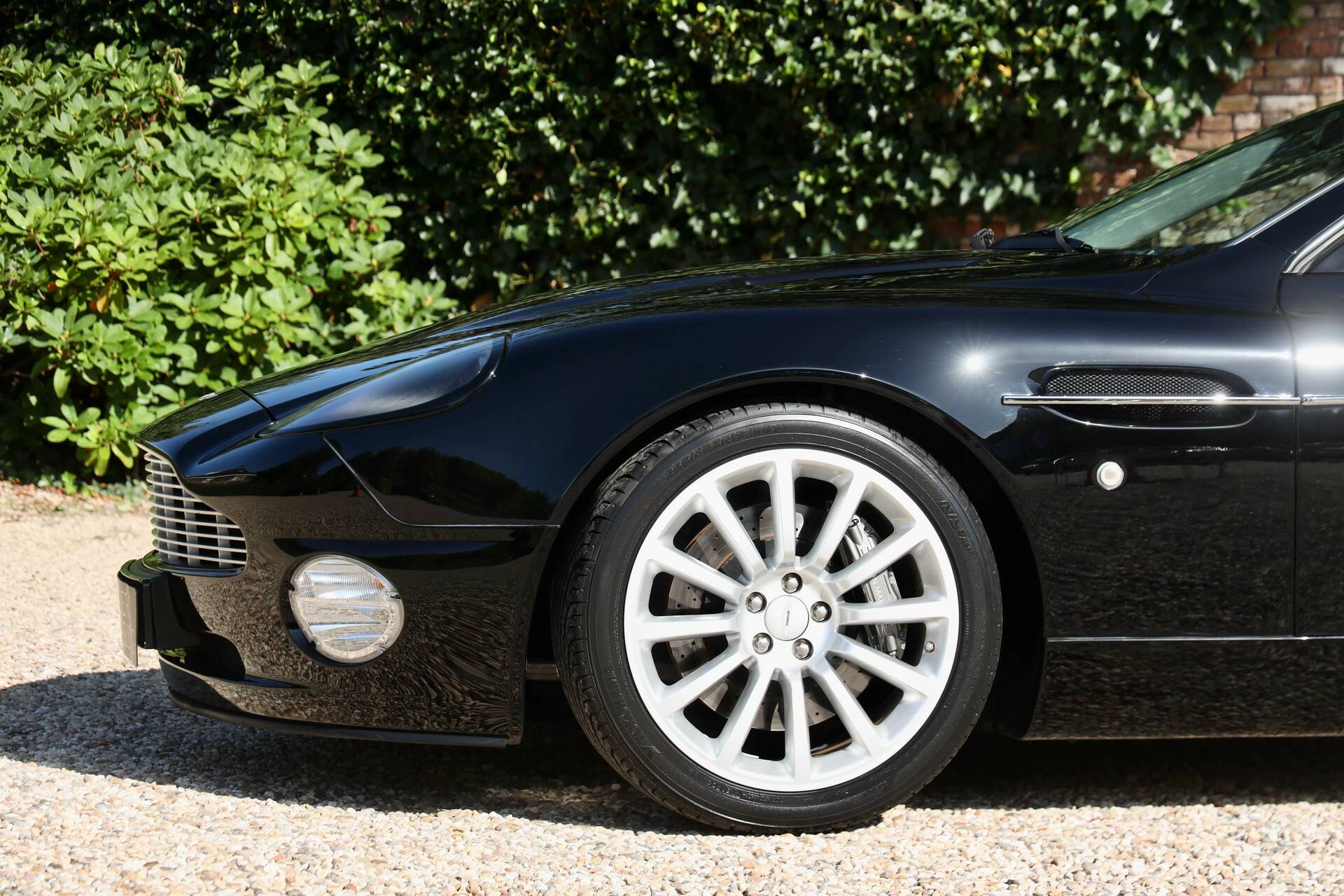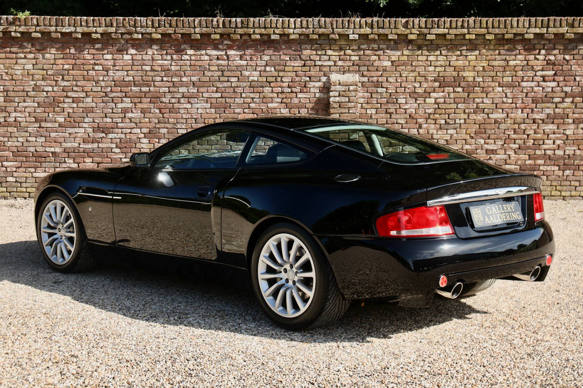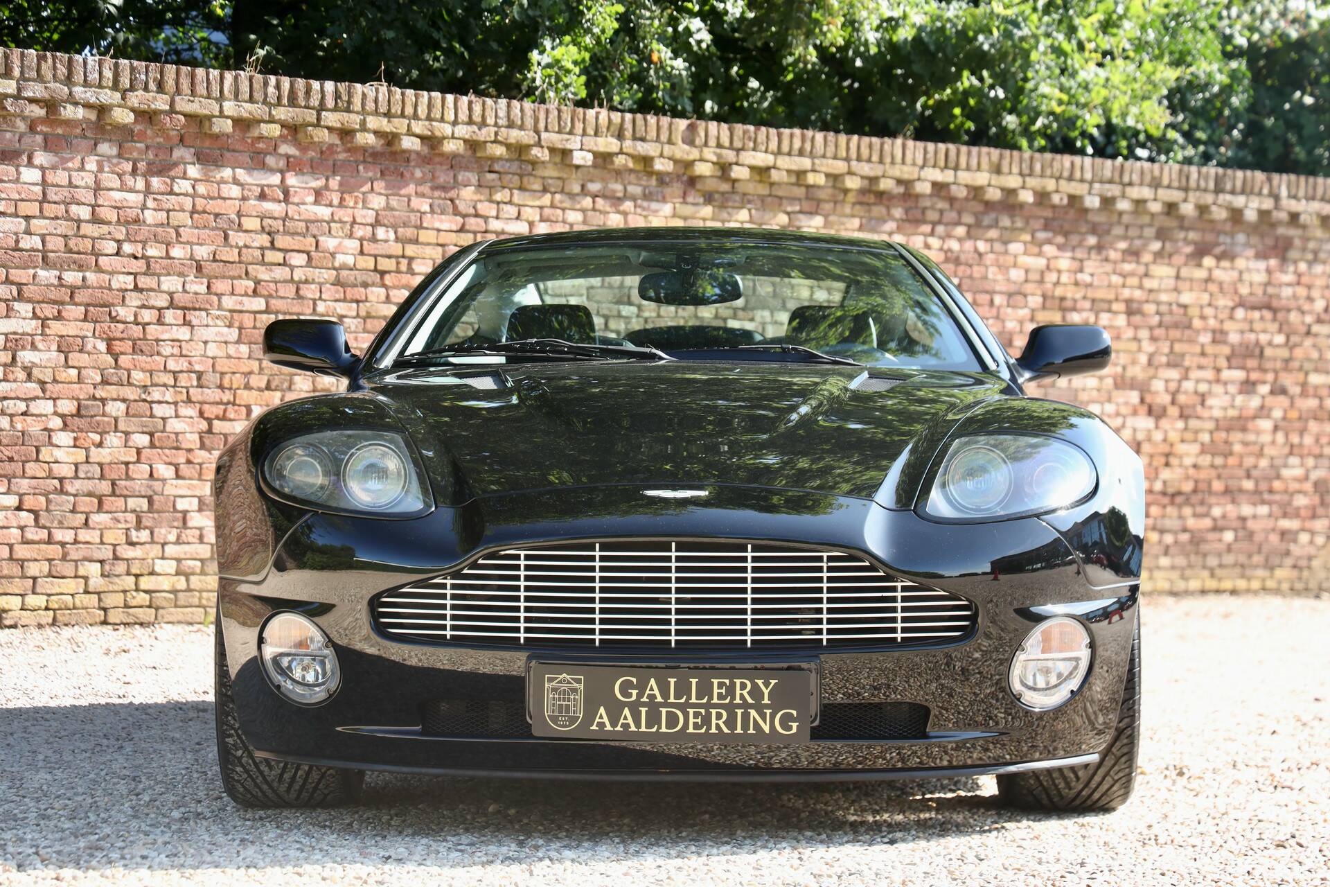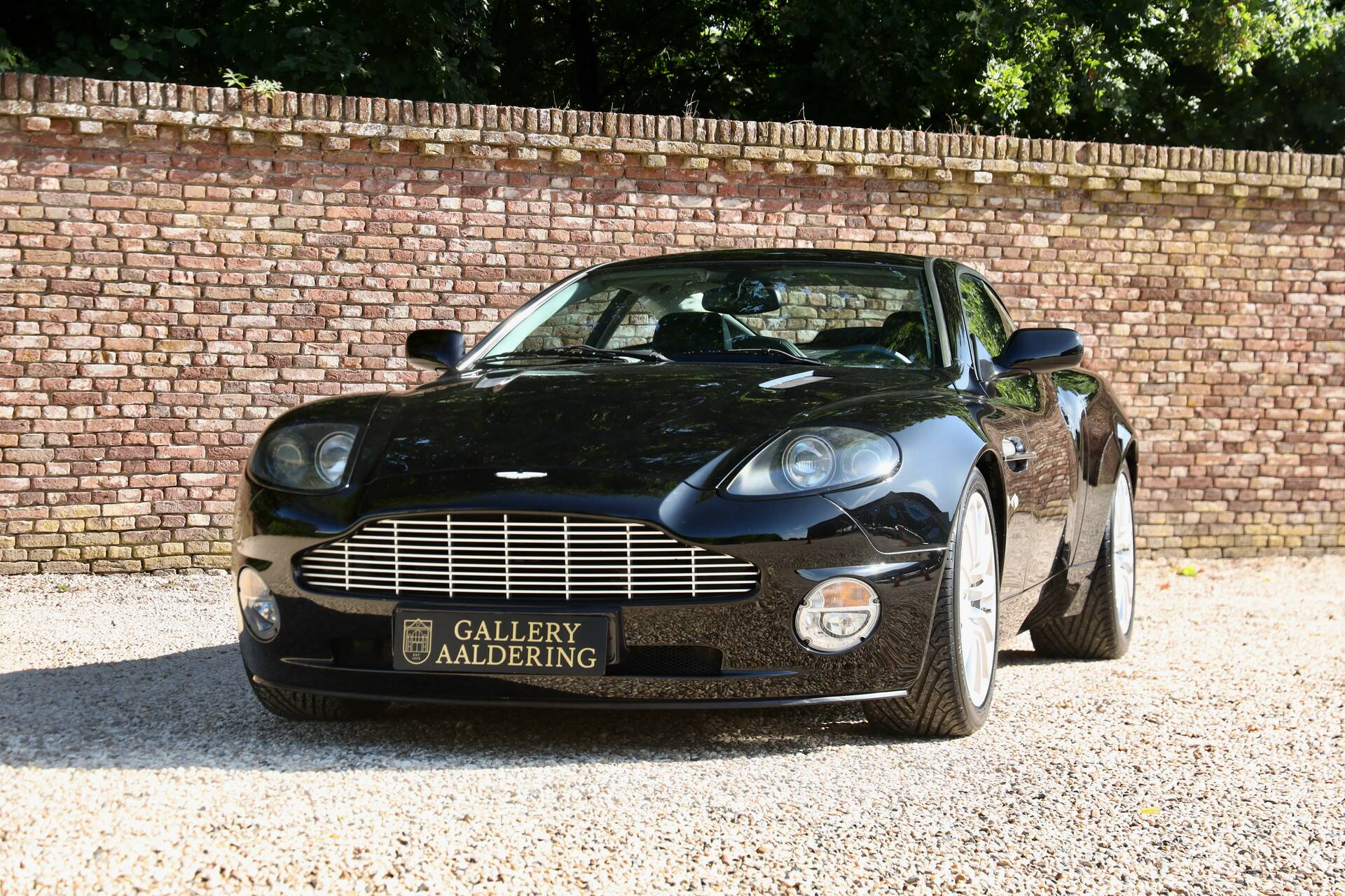 Aston Martin V12 Vanquish "Low mileage" PRICE REDUCTION! Executed in deep "Bowland Black over Charcoal" interior with alloy veneer, Attractively low mileage of less than 36000 kilometers provable with documents, The Aston comes with the manual&service booklets, Vanquish - it all started in 2002's Bond classic "Die Another Day", Well-kept all-black example with the all-alloy V12, European Vanquish