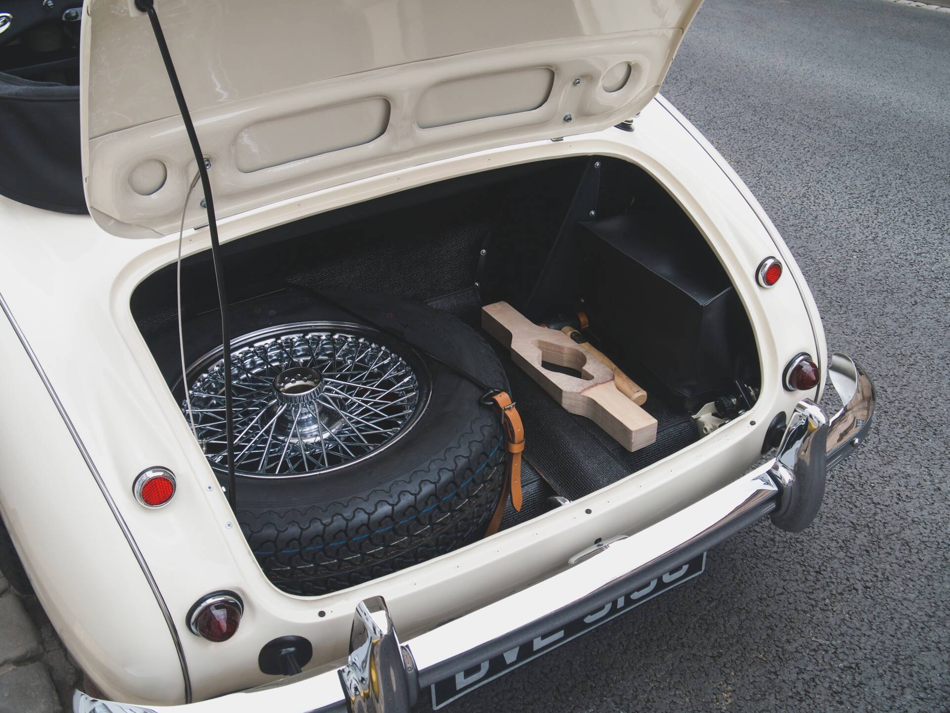 According to its BMIHT factory records, this beautiful 3000 on offer was built LHD on the 20th-22nd February 1963 and was exported to Dusseldorf, Germany later that year. Finished in Ivory White with a black interior and black hood. Records show that the car was despatched to the dealership on the 18th October 1963. It was optioned from new with wire wheels, heater, laminated screen, overdrive, road speed tyres, mph speedometer, octagonal wheel nuts, steering column lock, black tonneau cover, European headlights & exhaust. The original UK logbook indicates that the car was repatriated back to the UK and allocated its current registration number on 15th November 1965.