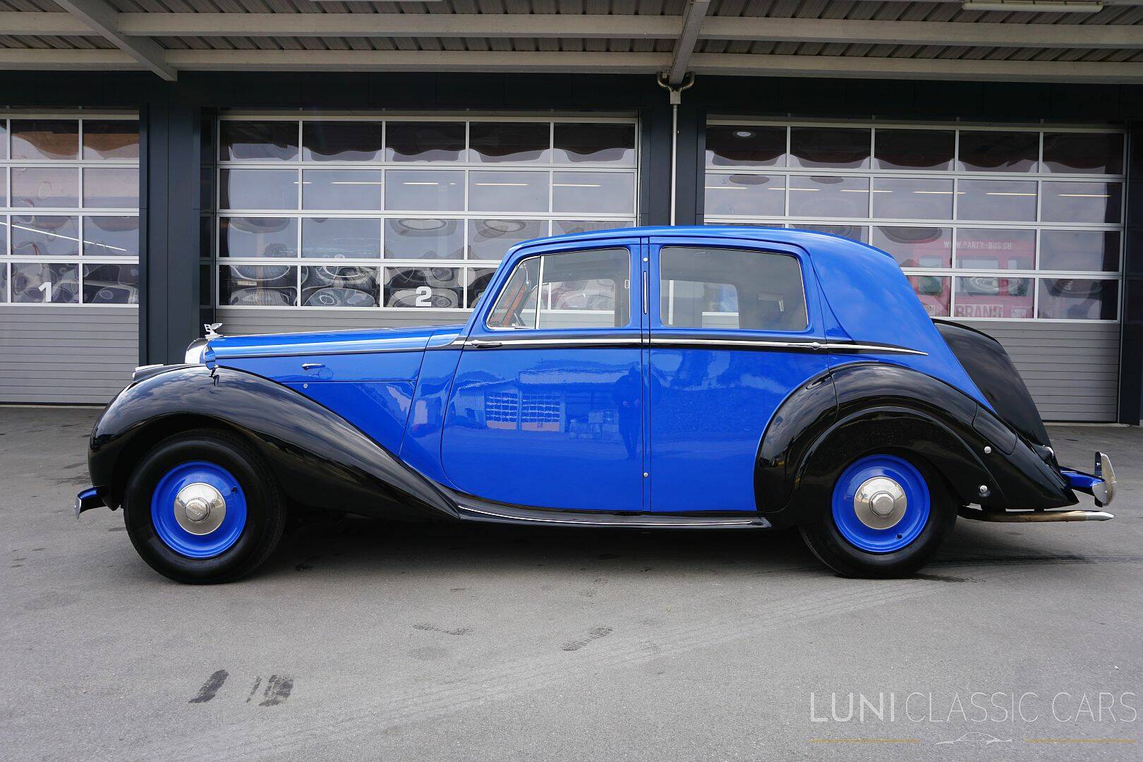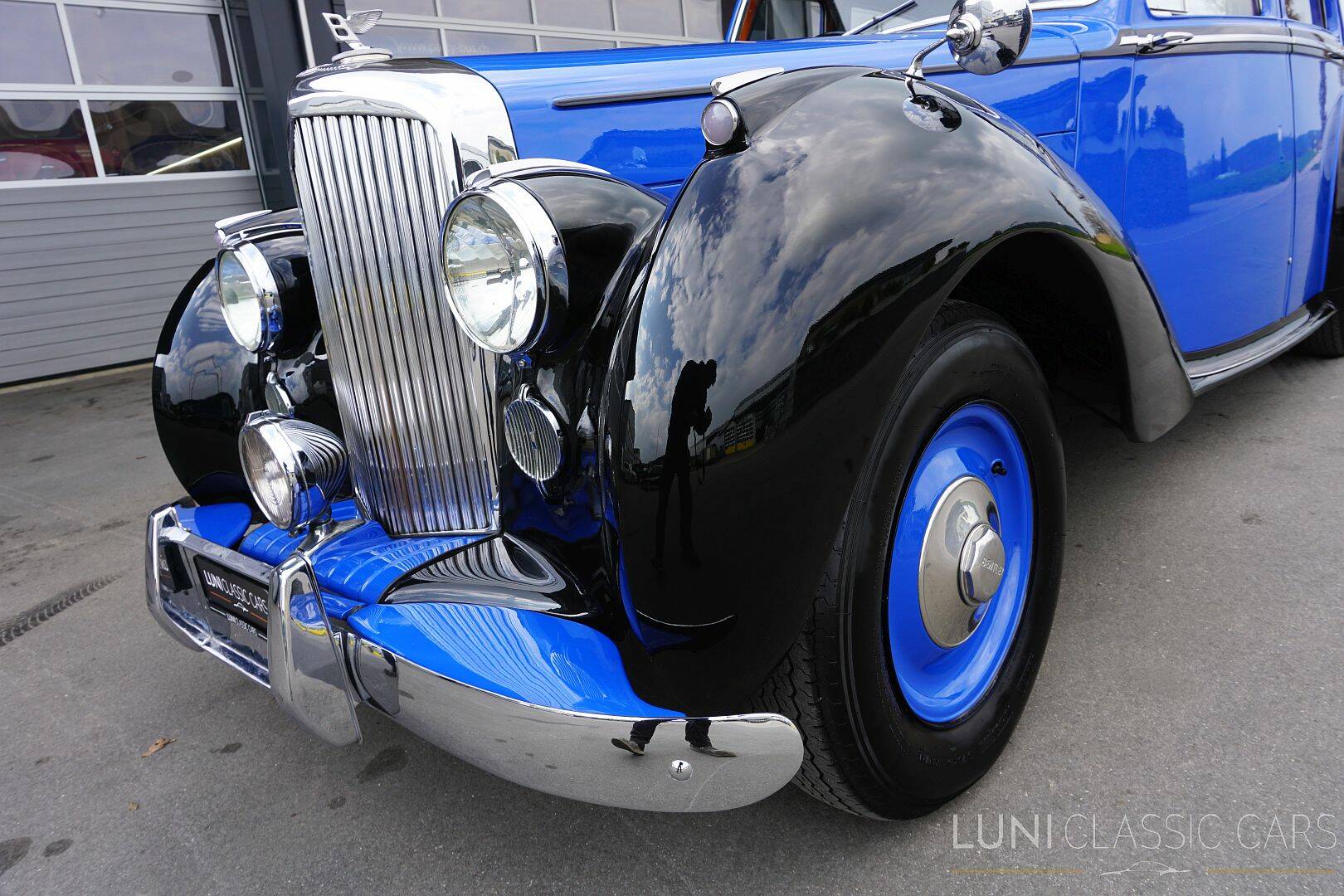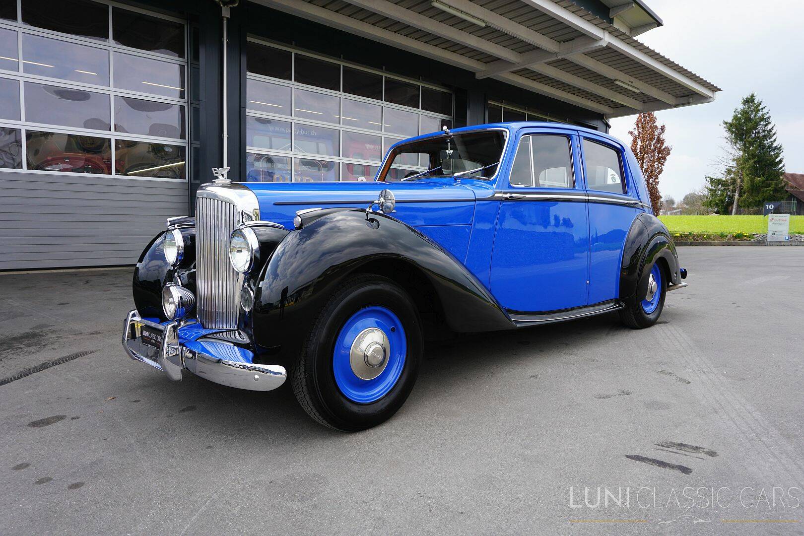 Ein Bentley Mark VI ist kein Auto, das sich über Lautstärke oder Effekte definiert. Er wirkt über Haltung, Materialität und eine Art von Souveränität, die nur aus echter Substanz entstehen kann. Dieser rechtsgelenkte Mark VI aus dem Jahr 1948 präsentiert sich in einer besonders stimmigen zweifarbigen Lackierung in der Bentley Originalfarbe «Knightsbridgeblue» und Schwarz – klassisch, elegant und sehr unverwechselbar in seiner Ausstrahlung.