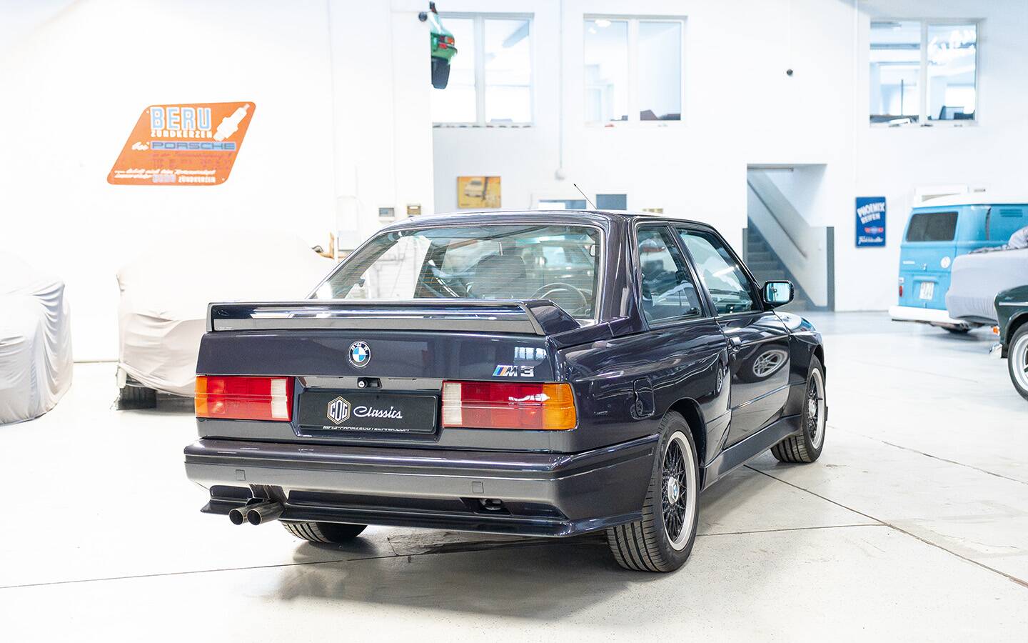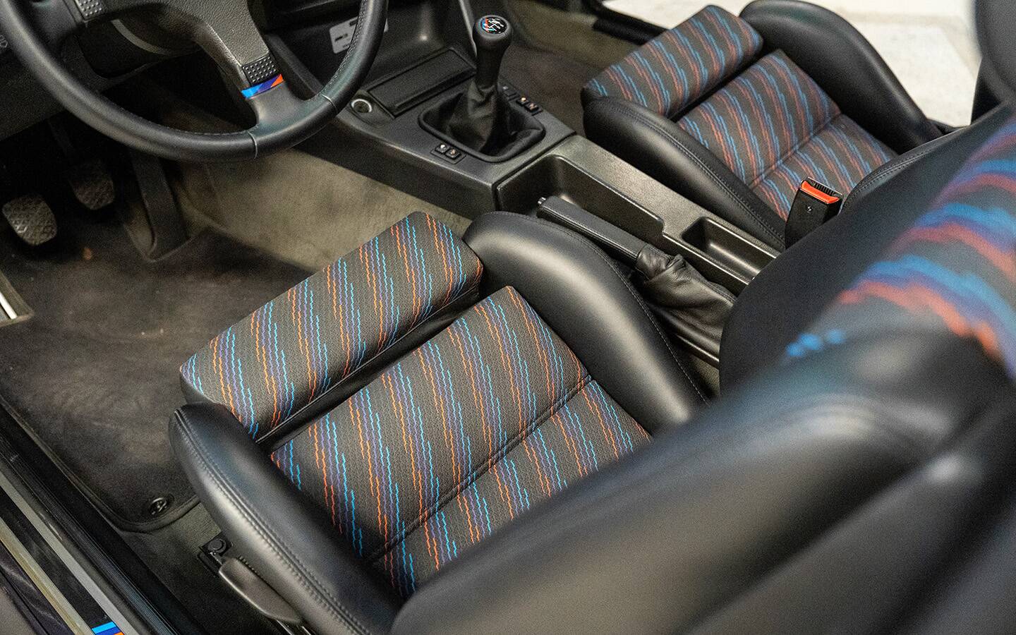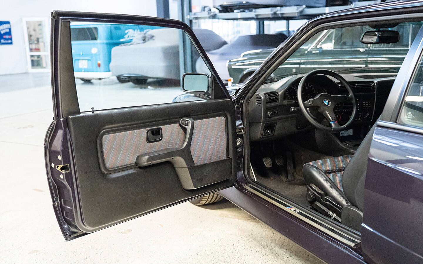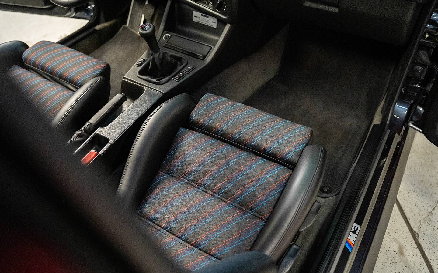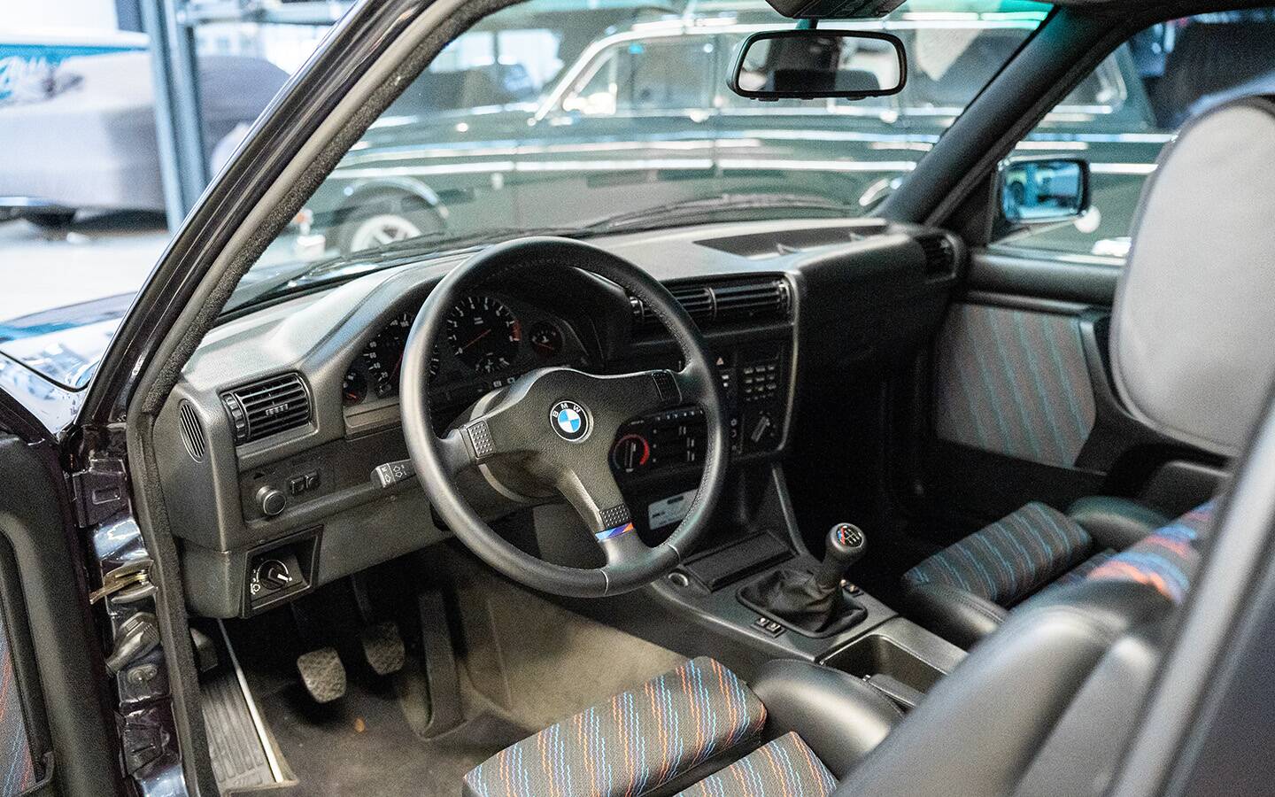 Das hier angebotene Exemplar präsentiert sich in der ikonischen Farbe Macao Blau Metallic, einer der charakteristischsten und elegantesten Lackierungen dieser Edition. Die Farbe unterstreicht die sportlichen Linien des E30 M3 und verleiht dem Fahrzeug zugleich eine zeitlose Eleganz.