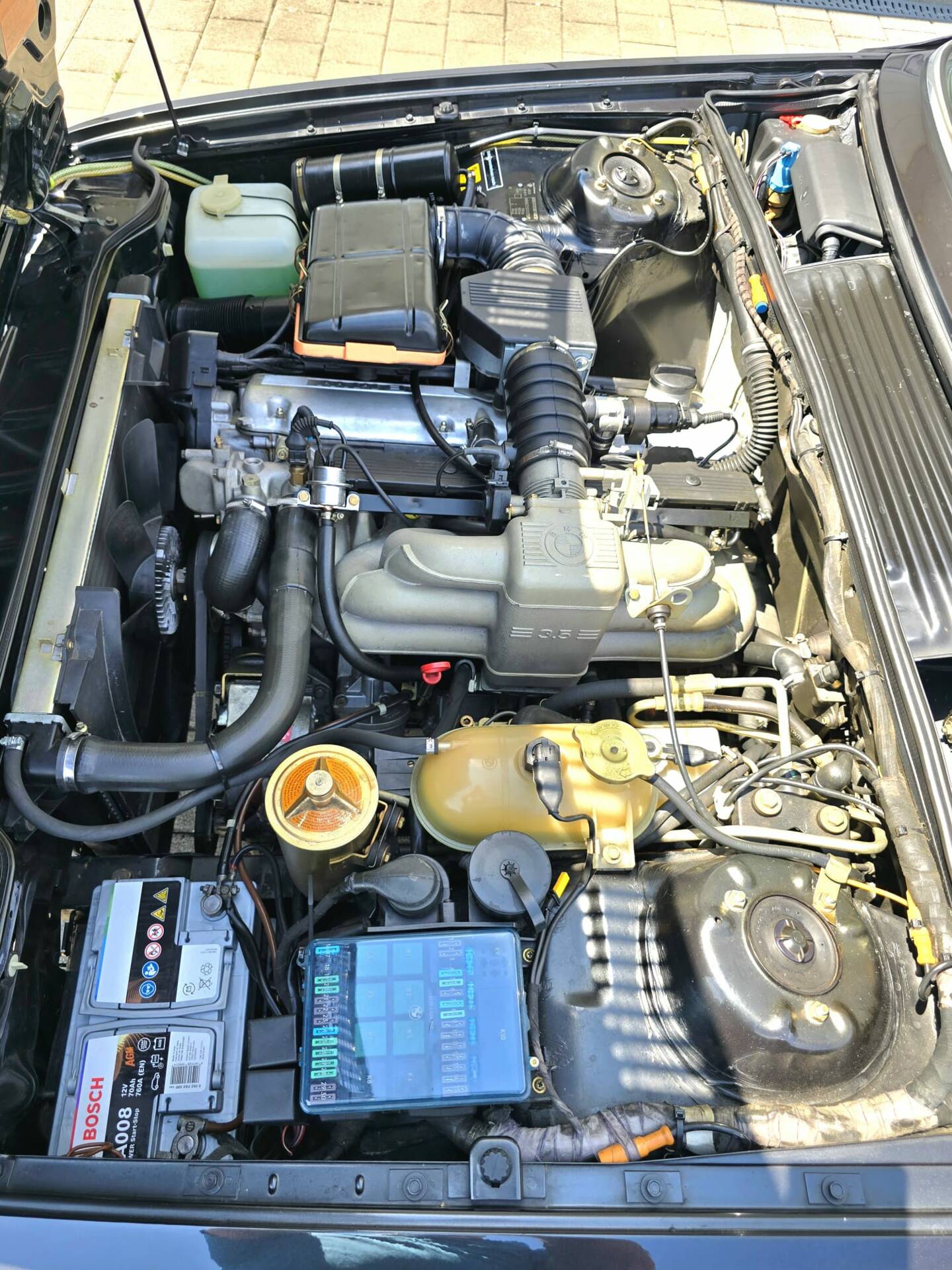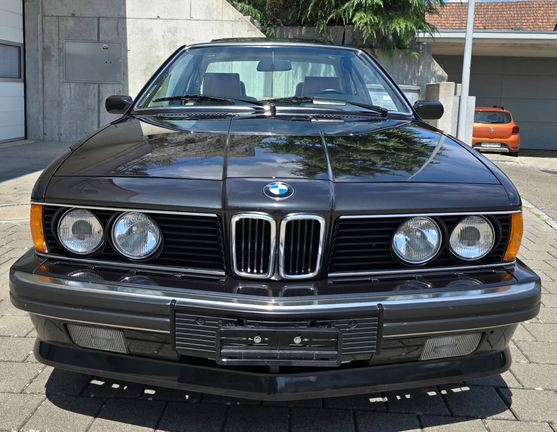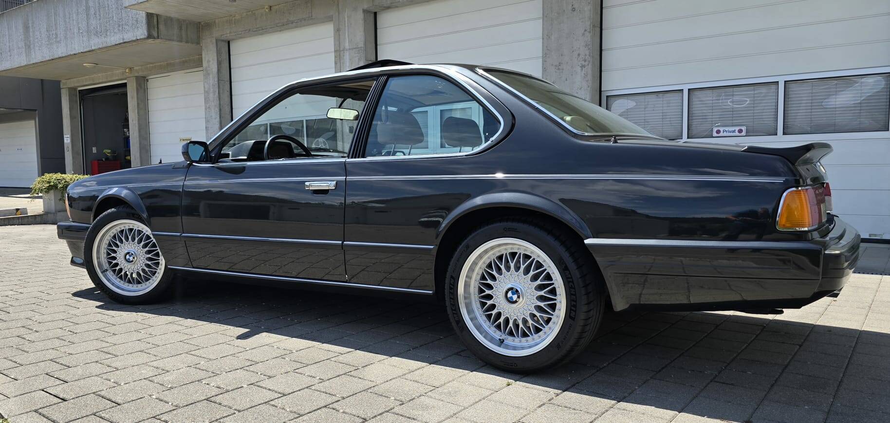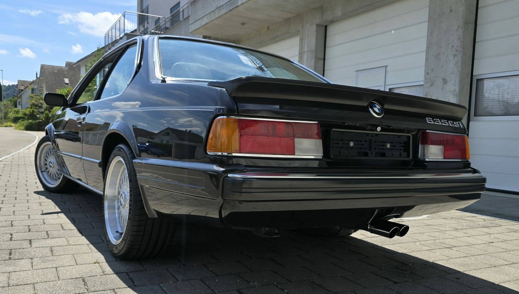 Black metallic BMW 635CSi, manufactured late 1987, first registered in March 1988, beige leather seats, power steering, power windows, power sunroof, registered in Switzerland as a Veteran car