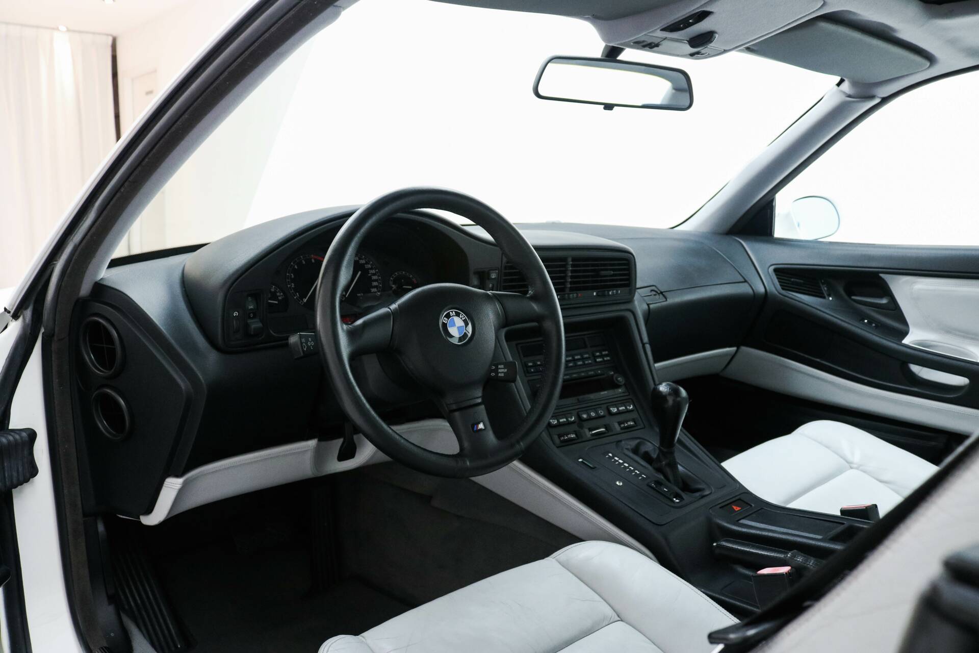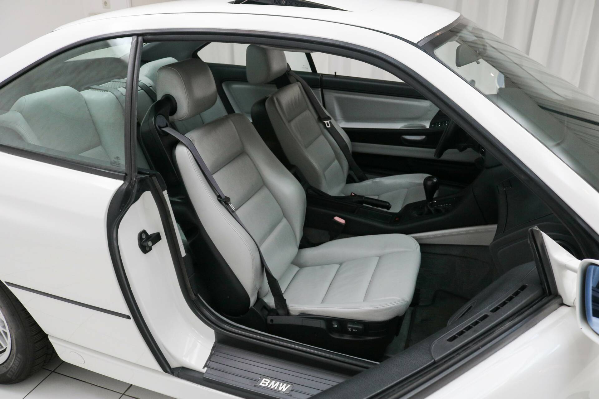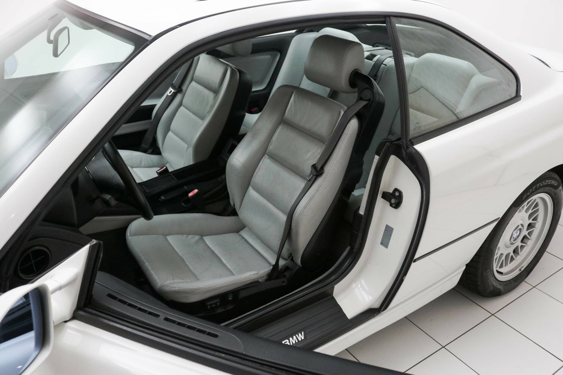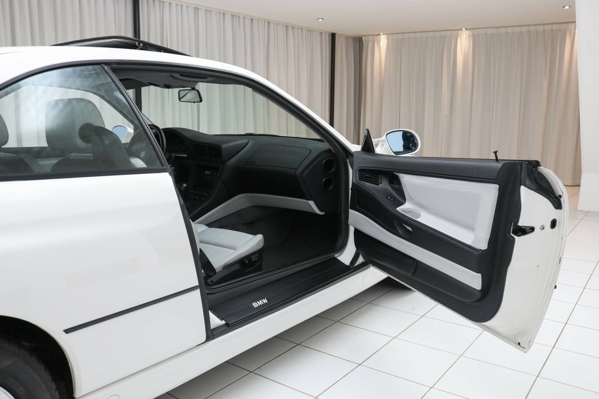 Het exterieur is uitgevoerd in Alpinweiss II, een kleur die het tijdloze ontwerp van de 8-serie mooi benadrukt. De auto staat op originele 15 inch honingraad lichtmetalen velgen en is voorzien van een schuif/kanteldak. Aan de achterkant van de auto vind je de kenmerkende 4 uitlaatpijpen. Het exterieur is voor zijn leeftijd in een goede staat, vertoont normale gebruikssporen.