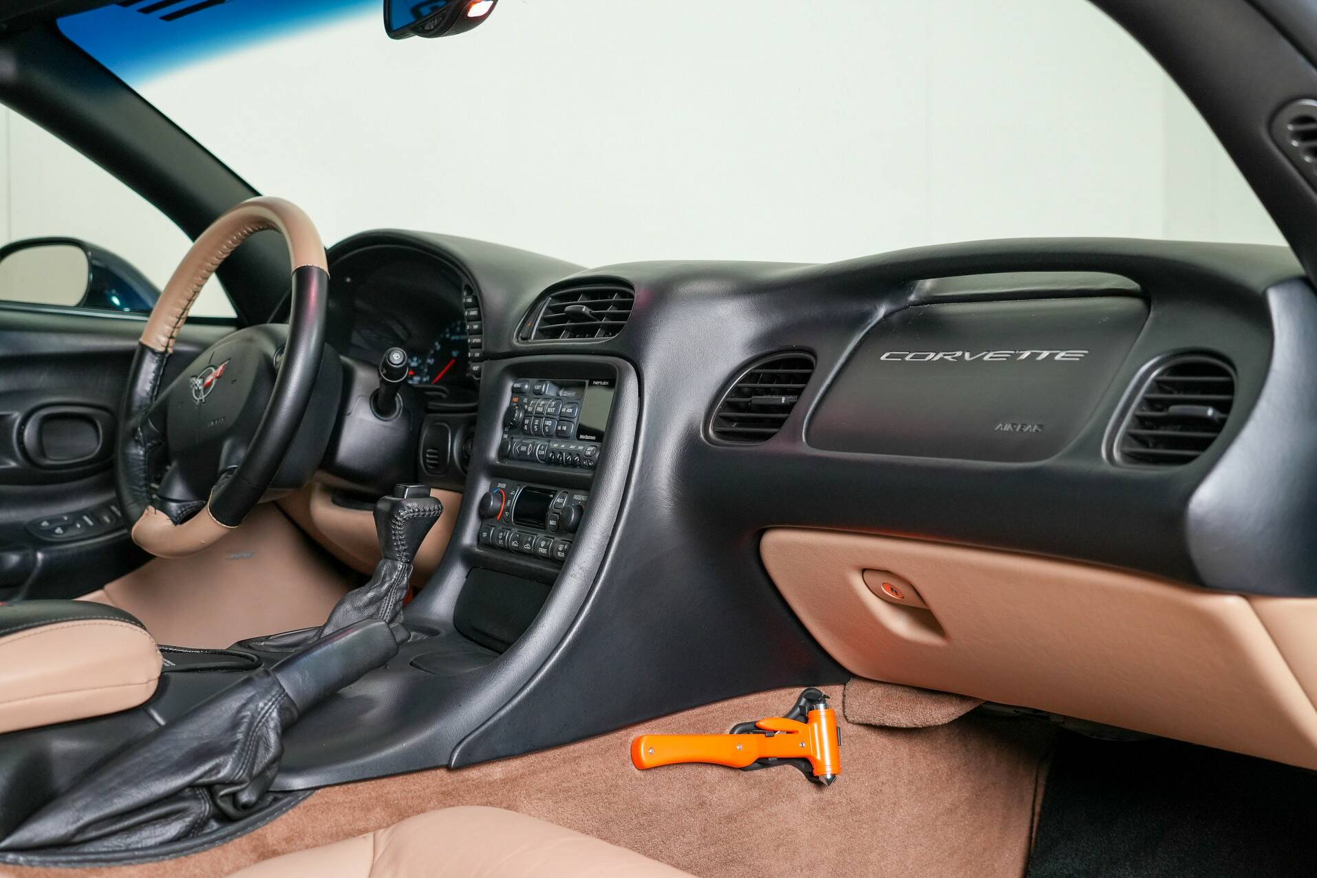 Geheel originele Navy Blue 2001 Corvette met LightOak interrieur, uitvoering 1SC( full options):