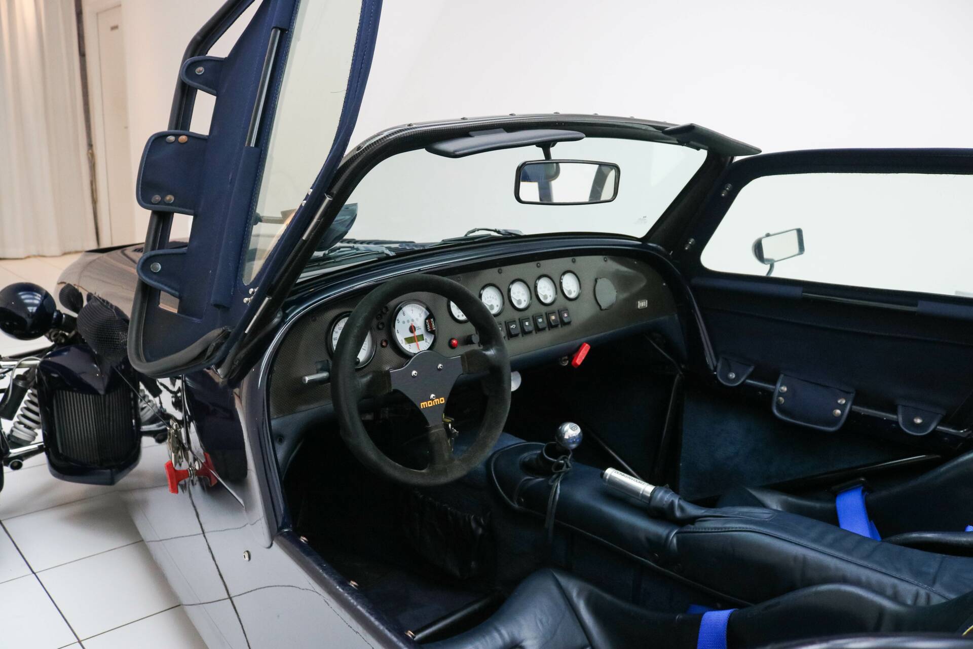 Het interieur is bekleed met blauw leder en voorzien van een dashboard in carbon met de originele instrumenten, waaronder turbodruk, oliedruk, olietemperatuur en watertemperatuur. Ook is de auto uitgerust met een rembalansknop, onderdeel van het Cup-pakket.