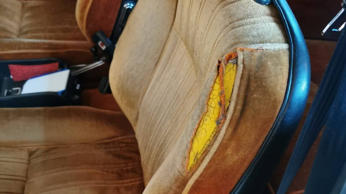 Der Innenraum gleicht einer Lounge der 70er Jahre, mit altersbedingten, sichtbaren Abnutzungen und auch die Sonne/UV Strahlung hat Spuren am Velour hinterlassen. Die Sitze können insgesamt oder auch punktuell überarbeitet werden um einen Originalzustand wieder herzustellen. Ausgewählte Materialien und das markante Armaturenbrett unterstreichen den Anspruch des Fiats.