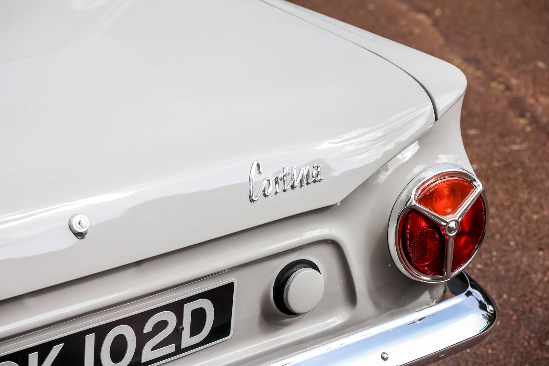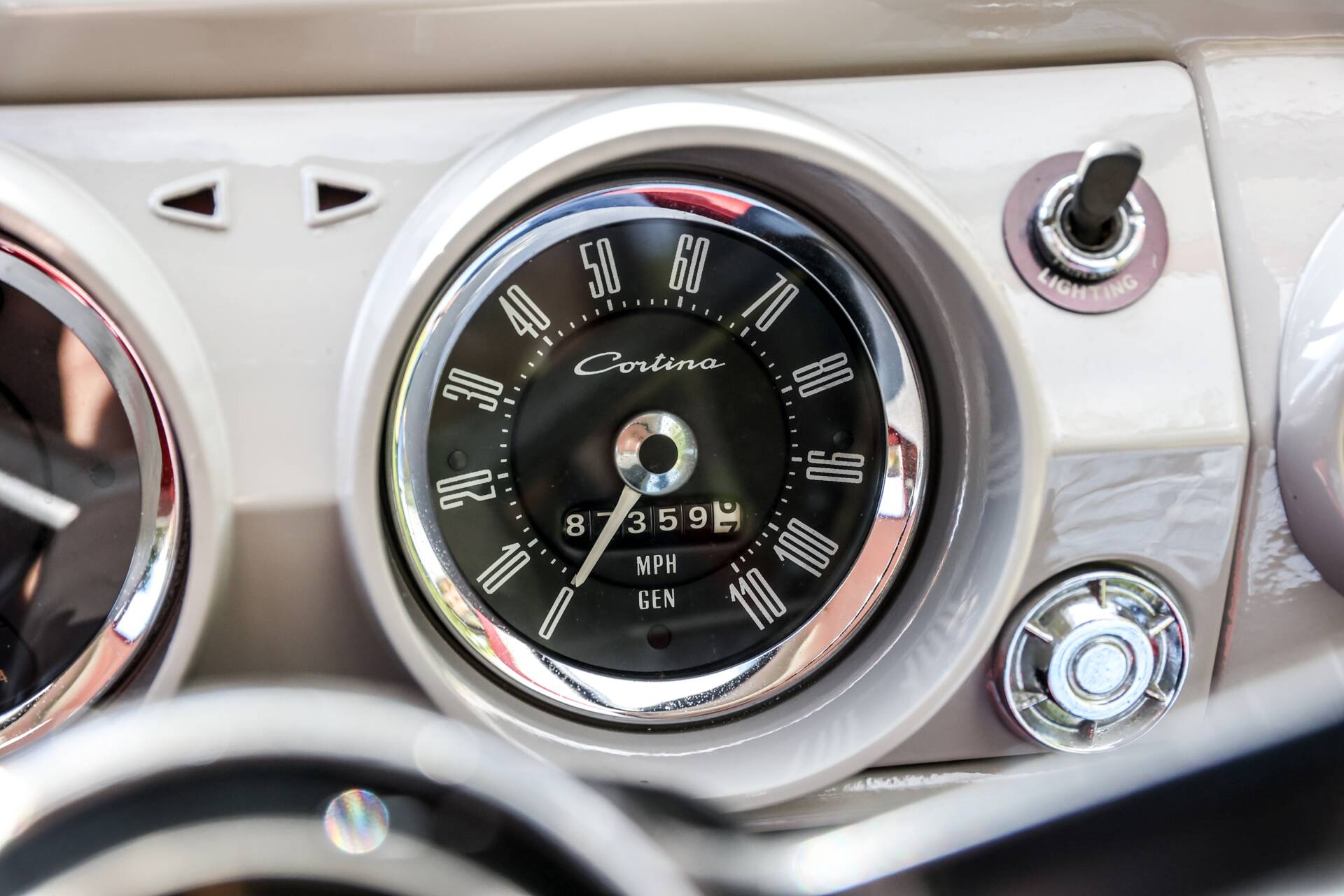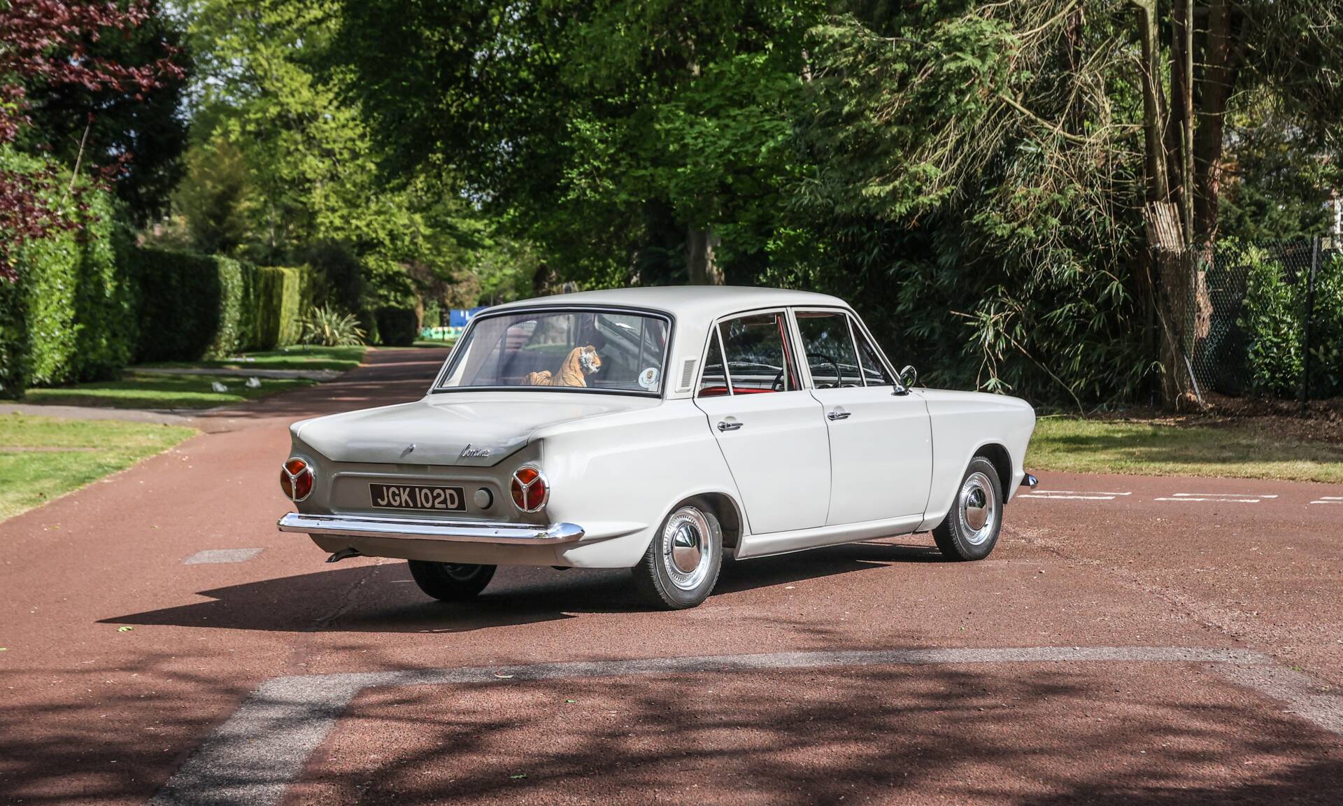 Once Britain's best-selling car, the Standard Cortina Saloon or Fleet Model was marketed by Ford as 'offering outstanding performance with economy; the lowest cost car in its class. An ideal vehicle for everyday business or for the family man who wants maximum saloon-car space at minimum cost'. Correctly identified by the BA72 chassis number the Mk. I Ford Cortina Owners Club have established this as one of just 34 UK Fleet Models known to exist. In comparison, 486 Lotus Cortina are known to the Club! Furthermore, the Club have confirmed only three four-door Aeroflow cars are known to exist worldwide. Distinguishing features of the Fleet Model are all clearly visible and include the body colour grille and extractor louvres on the rear roof for the Aeroflow ventilation system, normally chrome on De Luxe and Super models.