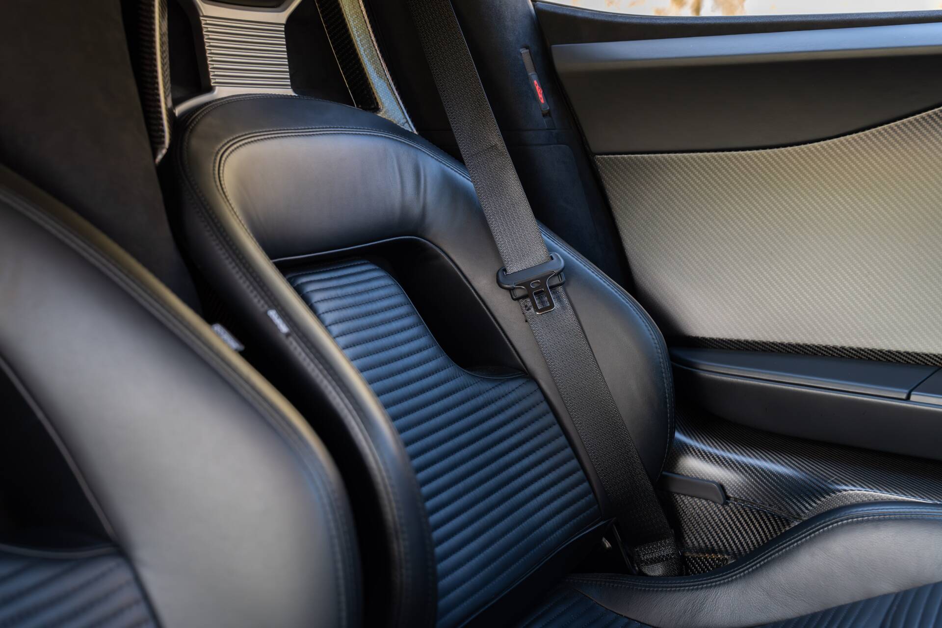 With just 3,400 miles, this example remains in exceptional condition, offering a near new ownership experience. Inside, the cabin is purposefully minimal yet unmistakably premium, trimmed in Alcantara to deliver a tactile, driver-focused environment. Every element is engineered with intent, reinforcing the car’s dual identity as both a track capable machine and a refined collector’s piece. Complementing this is a set of 20-inch exposed carbon fibre wheels, which not only elevate the visual impact but also reduce unsprung mass enhancing responsiveness, agility, and overall driving precision and also fitted is the quicksilver exhaust system.