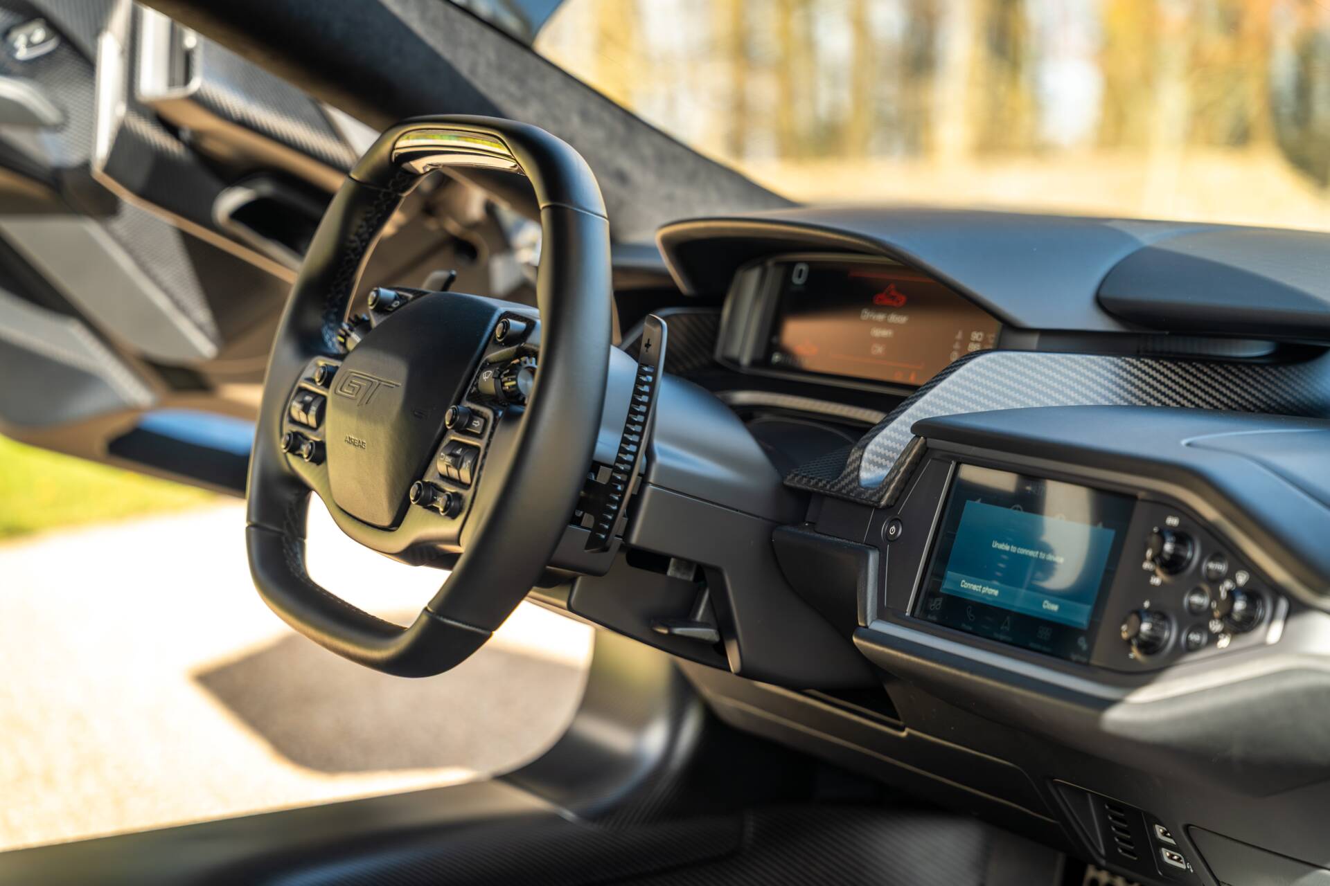 Beneath its sculpted carbon exterior lies a formidable powertrain. The mid-mounted 3.5-litre twin turbocharged EcoBoost V6 produces 630 PS (463 kW), delivering relentless acceleration and race derived performance. Paired with a 7-speed dual clutch transmission, the drivetrain offers instantaneous gear changes and seamless power delivery across all conditions. Advanced aerodynamic systems honed through extensive wind tunnel development ensure exceptional stability at speed, while the race-inspired suspension provides a finely tuned balance between control and compliance.