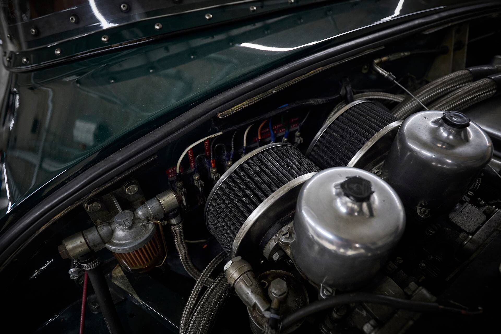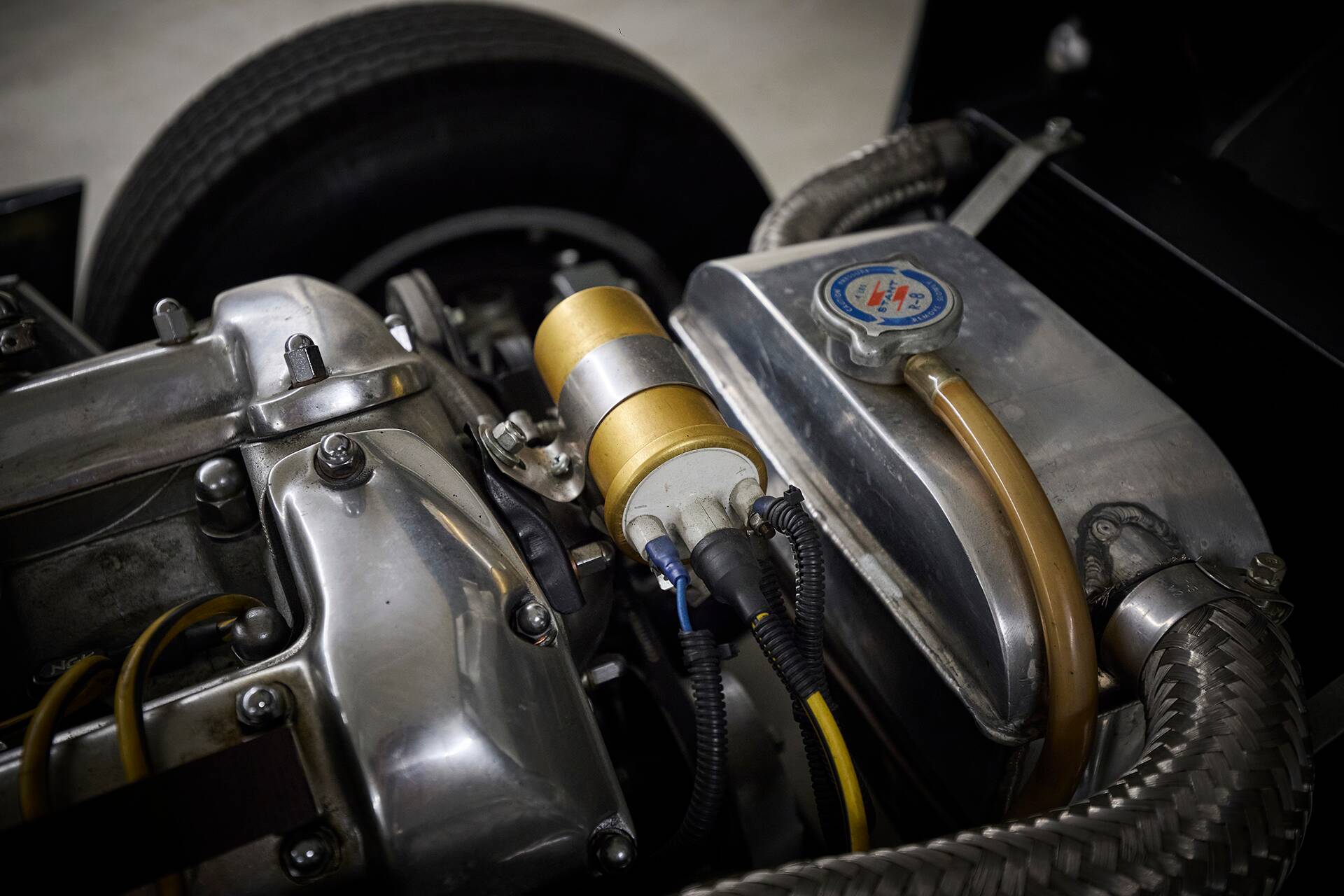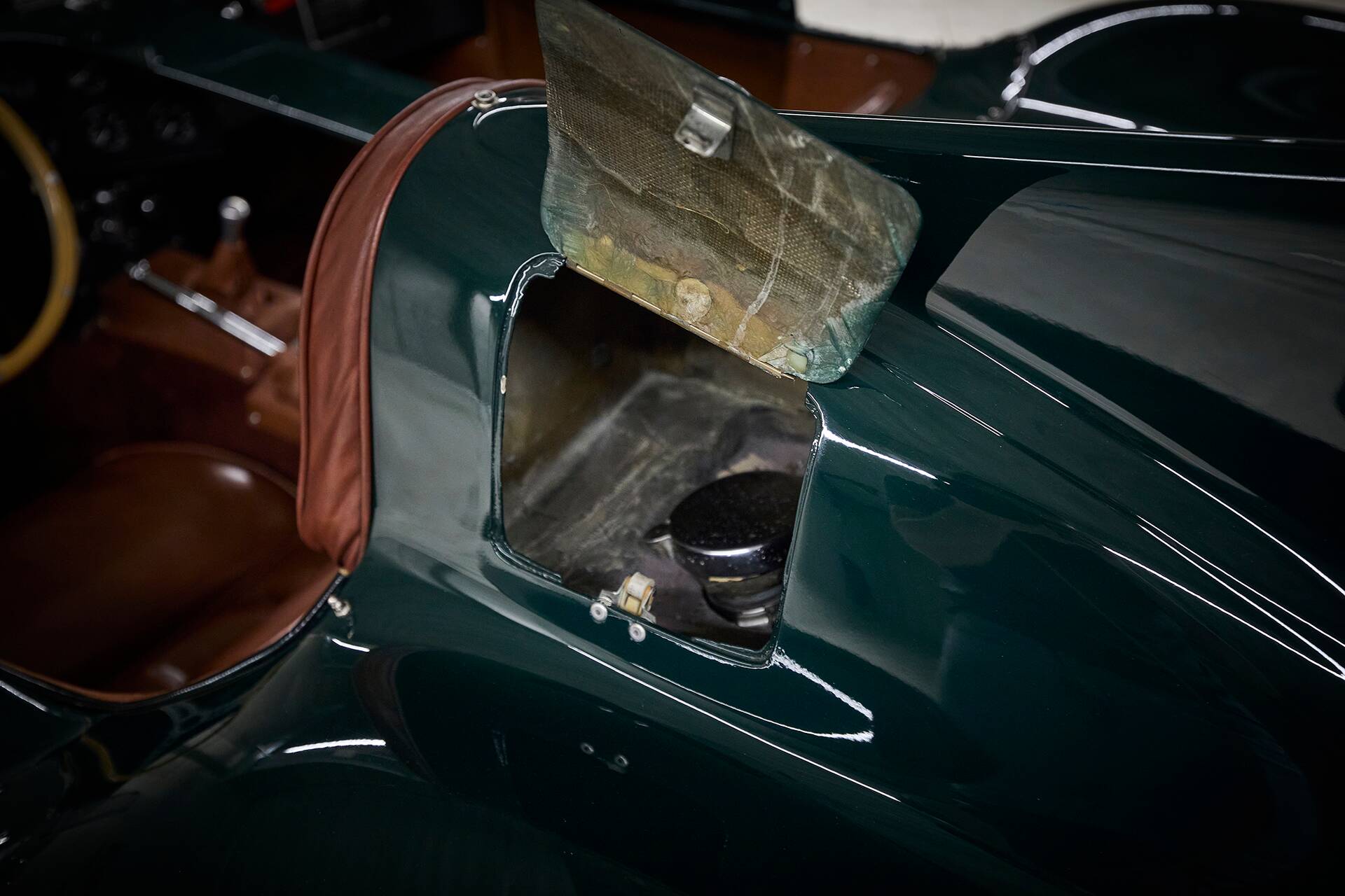 1951 and 1953 were the years when Jaguar held their heads particularly high, as they celebrated victories at the Cirque de la Sarthe in Le Mans with the C-Type. The winning design was, of course, optimized and further developed, and in 1954, the D-Type, with its graceful aerodynamics and iconic fin, saw the light of day for the first time.