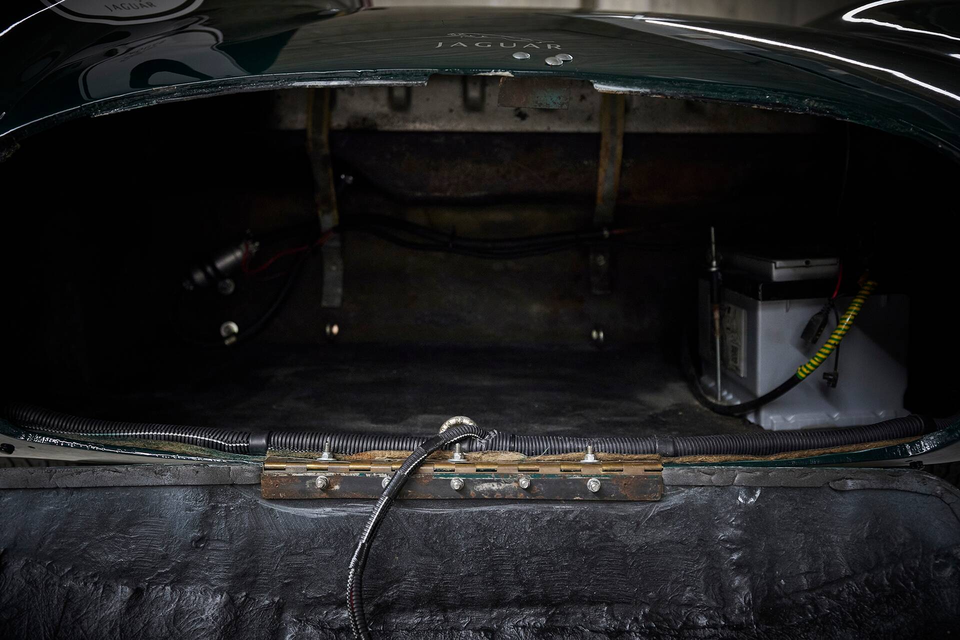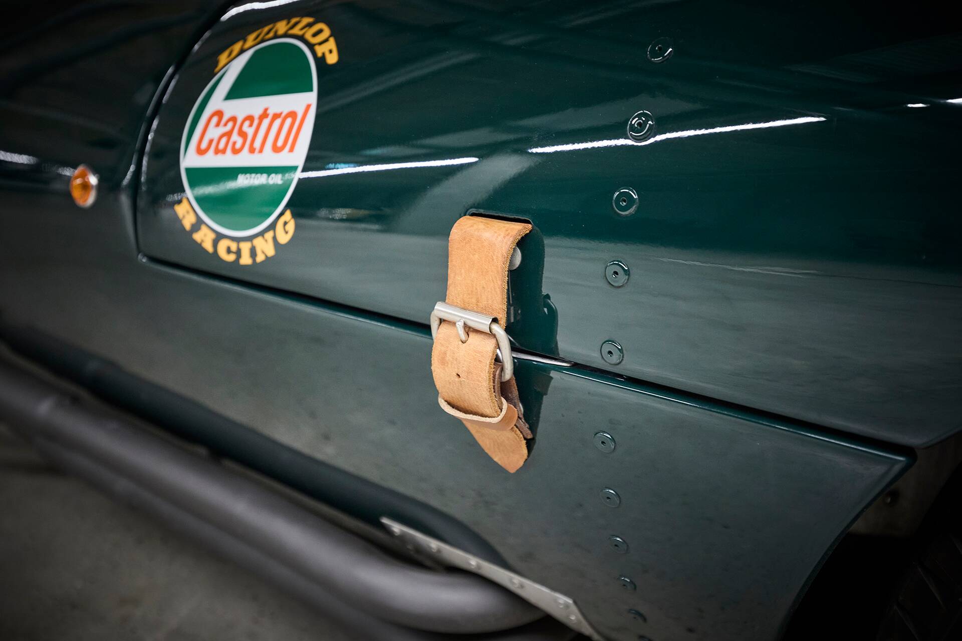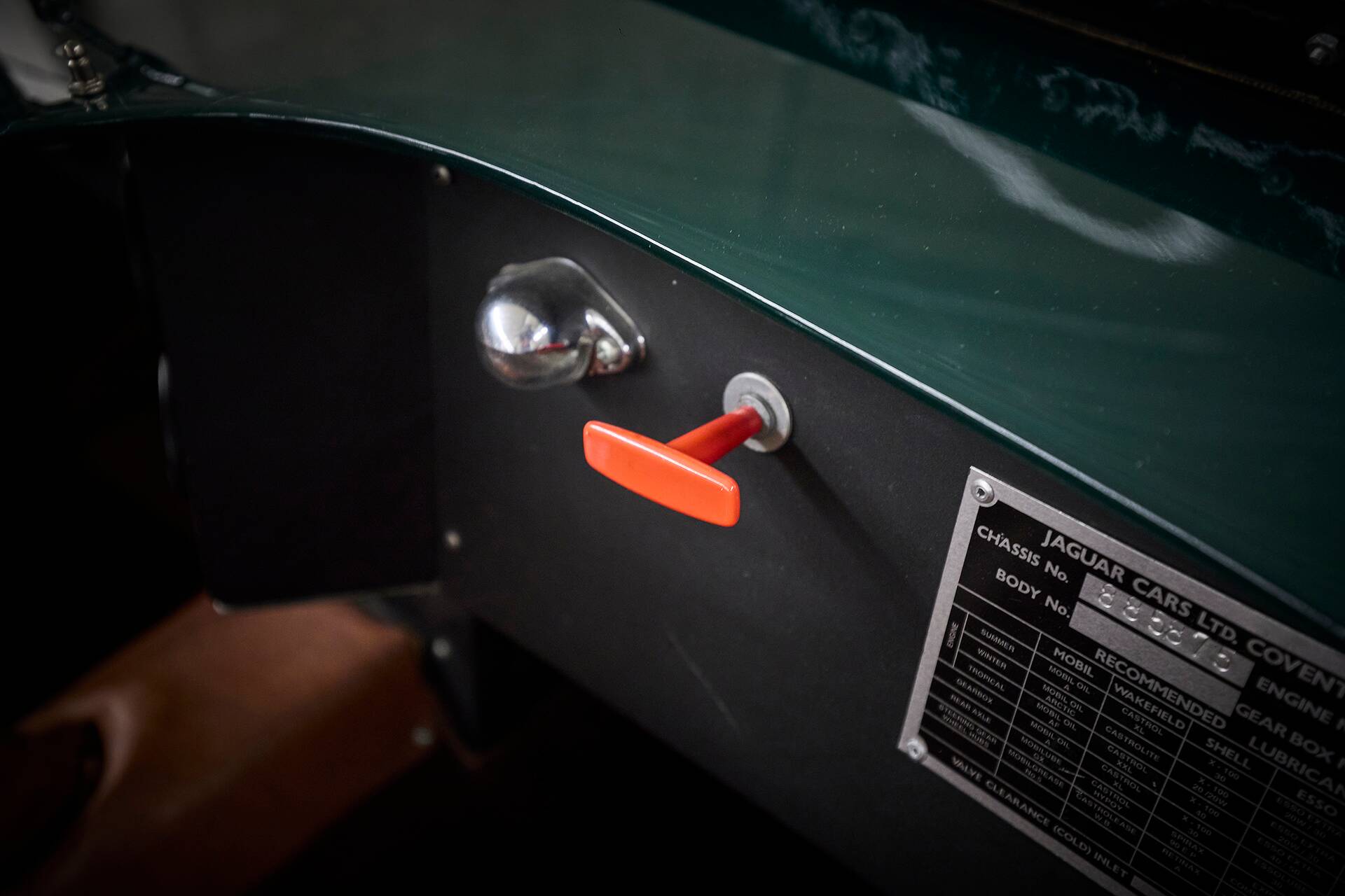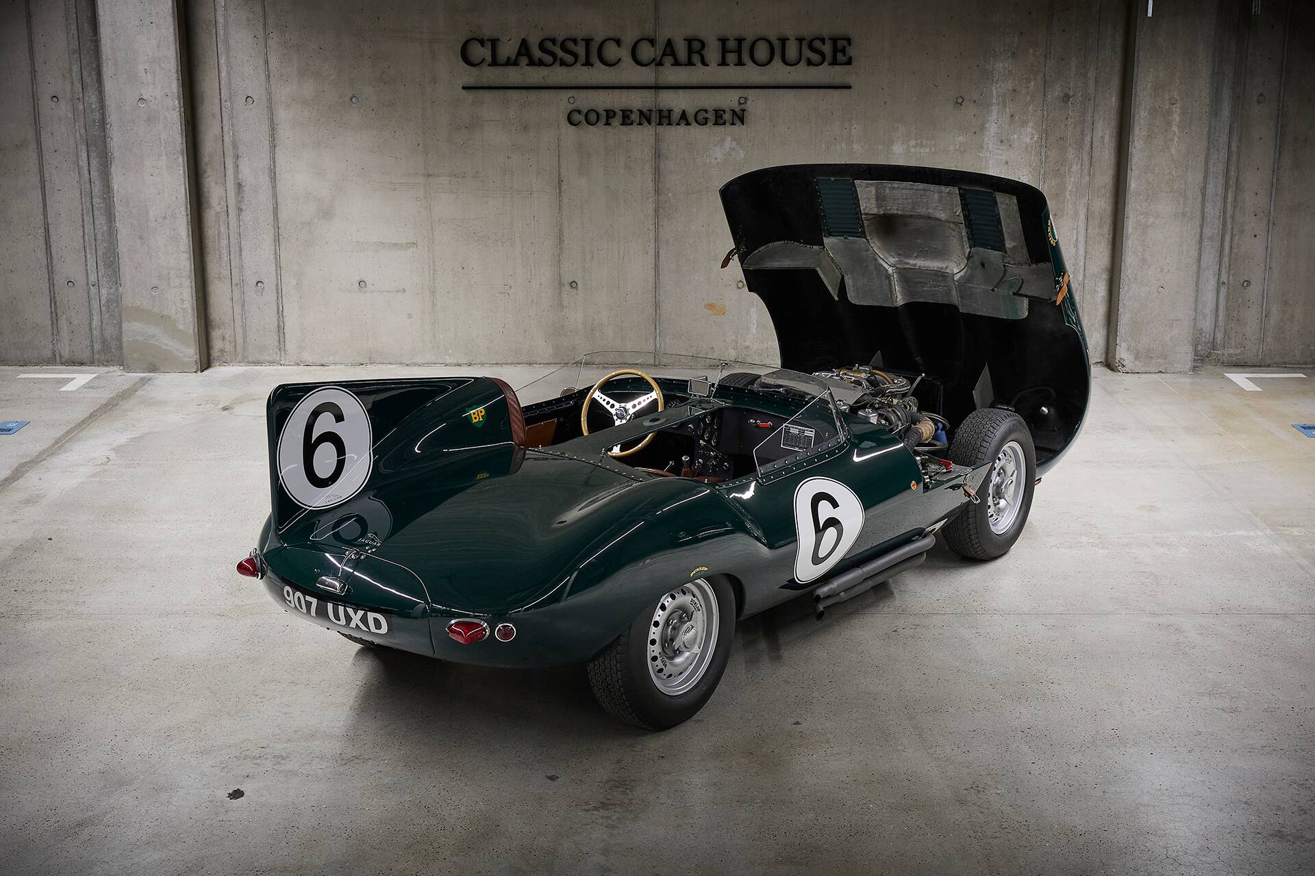The D-Type had a voracious appetite for victory and was faster, more agile, and rawer than its predecessor. These qualities resulted in an impressive hat-trick of wins at Le Mans in 1955-57.This extremely well-built fiberglass-bodied replica is, unlike most other tributes, actually based on a Series 1 E-Type from the 1960s. This means that the suspension, driveline, seats, instrumentation, and more are entirely period-correct, and this is a genuine Jaguar right down to the chassis number. The car is equipped with a bored-out 3-liter XK engine, a synchronized Series 2 gearbox, and various racing goodies such as a sharper camshaft from Piper, a high-pressure oil pump, and a minimally restricted exhaust system with an incredible sound!The car was originally built for Joe Harwood, an American racing driver who used it extensively for what it was created for, namely racing, well into the 1980s when it was sold to a private collector. Between 2003 and 2007, it underwent a comprehensive restoration, including new paint and a complete engine rebuild. It is noted that the car "drives and performs with plenty of surplus, balance, and ease." The iconic racer recently completed the Ollon-Villars Hillclimb in Switzerland without significant challenges.This Jaguar D-Type is now ready to make the most of its retirement, either as a returning vintage racer, for hobby driving, or as a centerpiece in a collection.
