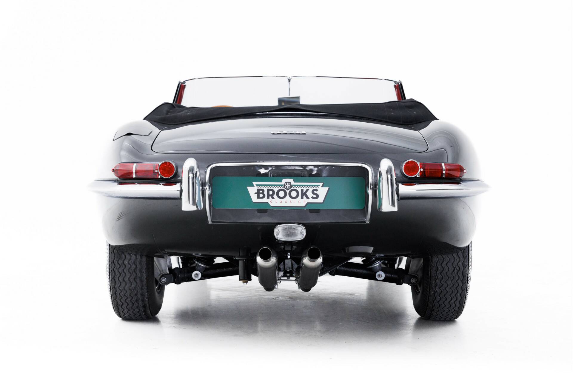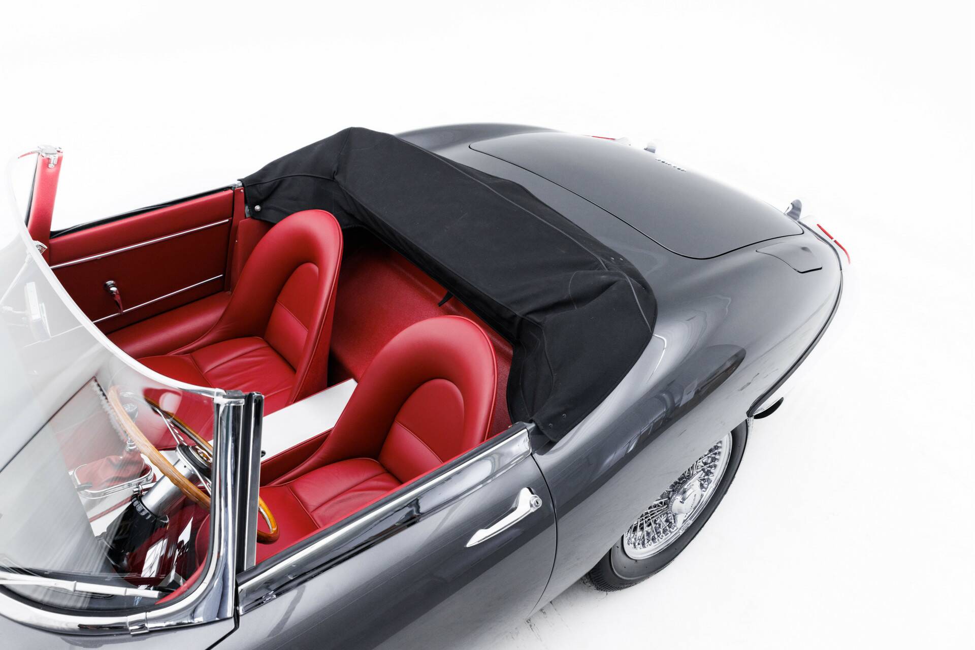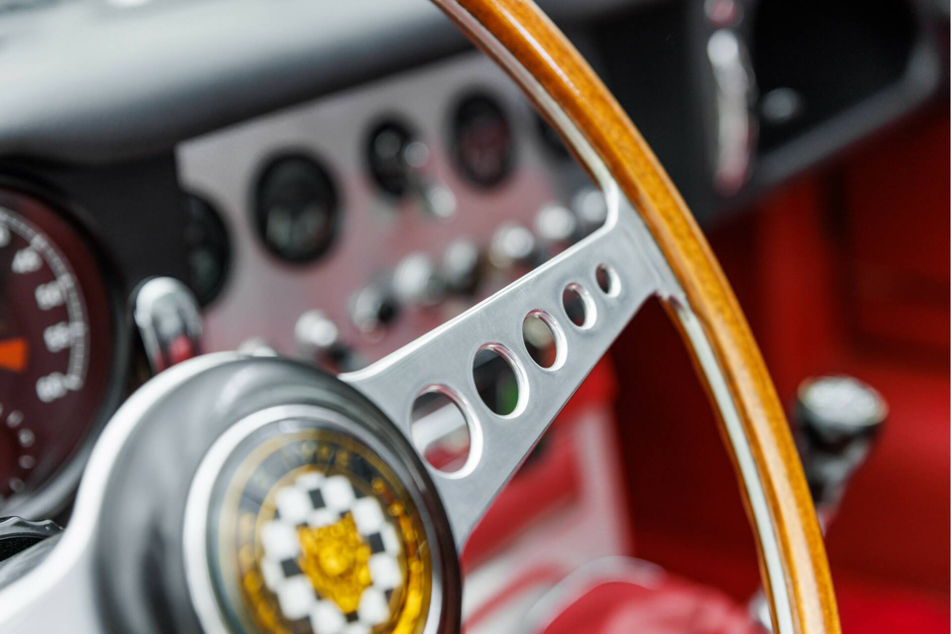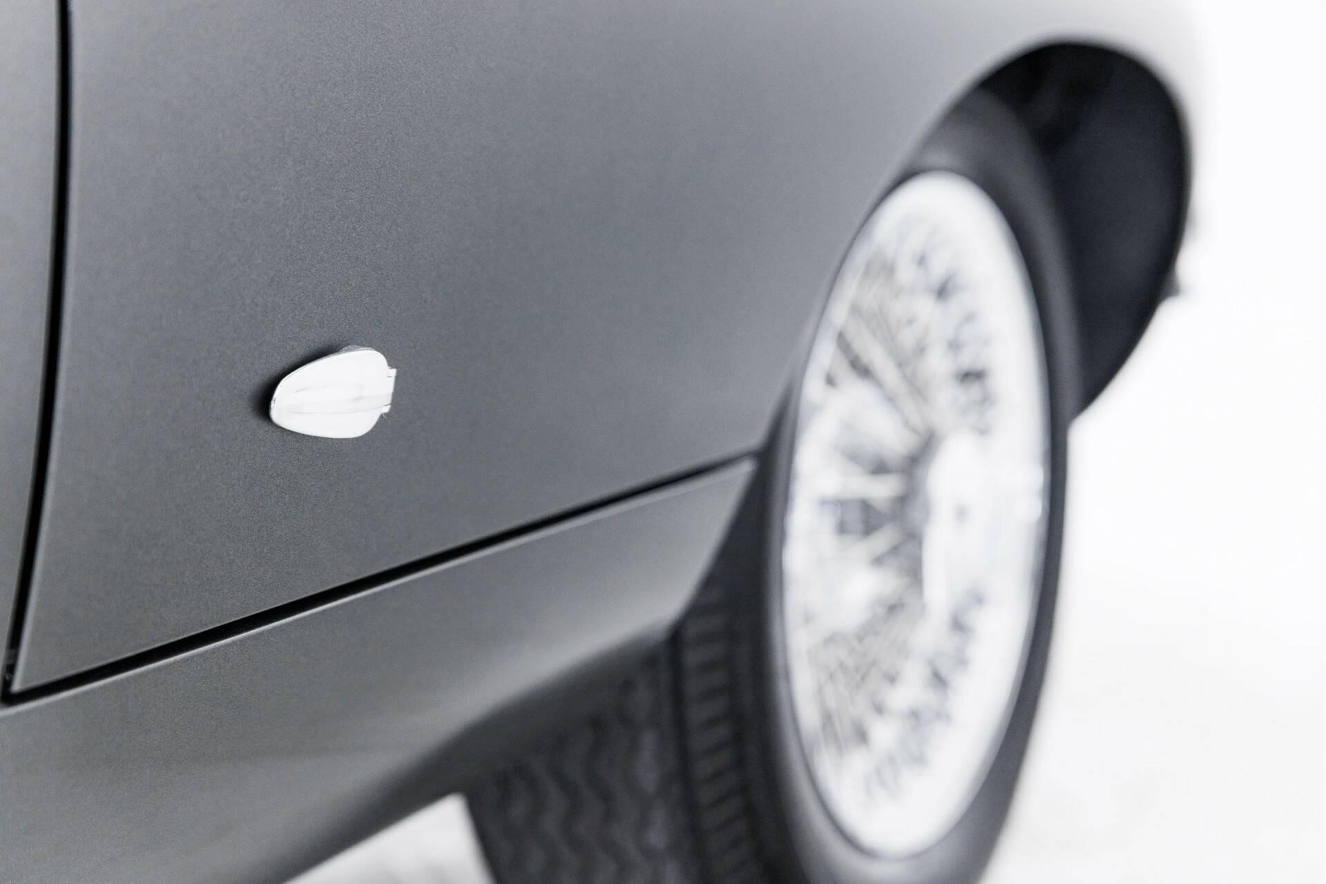 Het unieke carosserienummer bevindt zich bij deze vroegste E-Types op het schutbord, in tegenstelling tot andere E-types waar dit nummer zich in de kofferbak bevindt.
