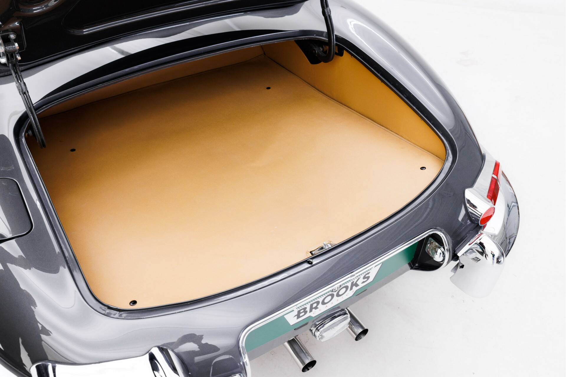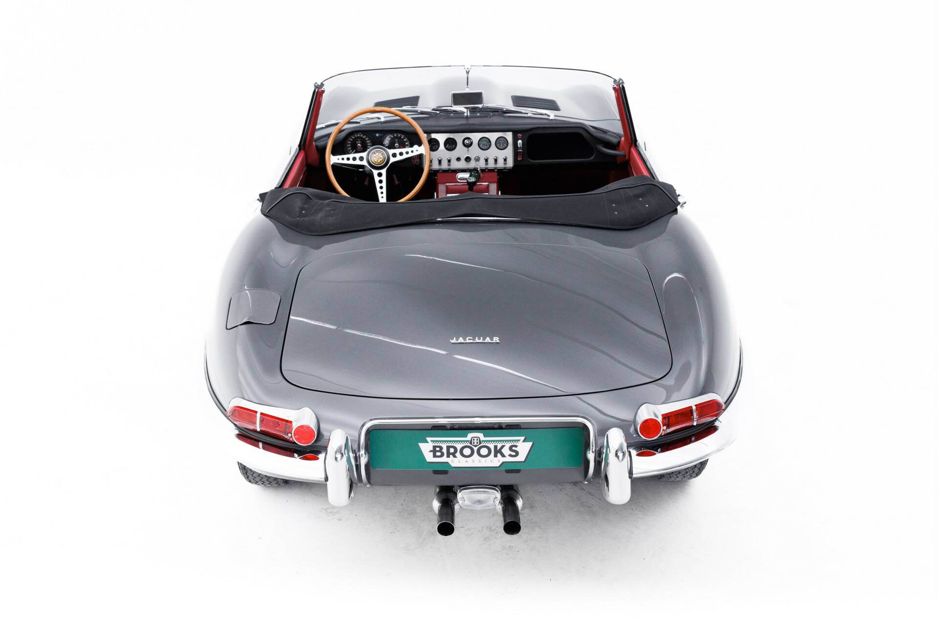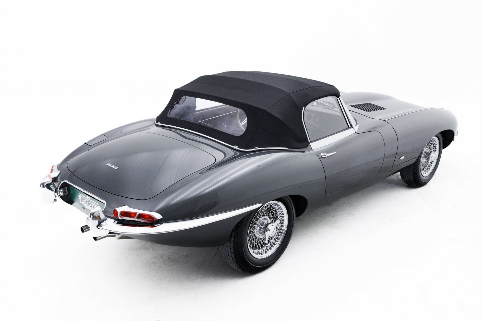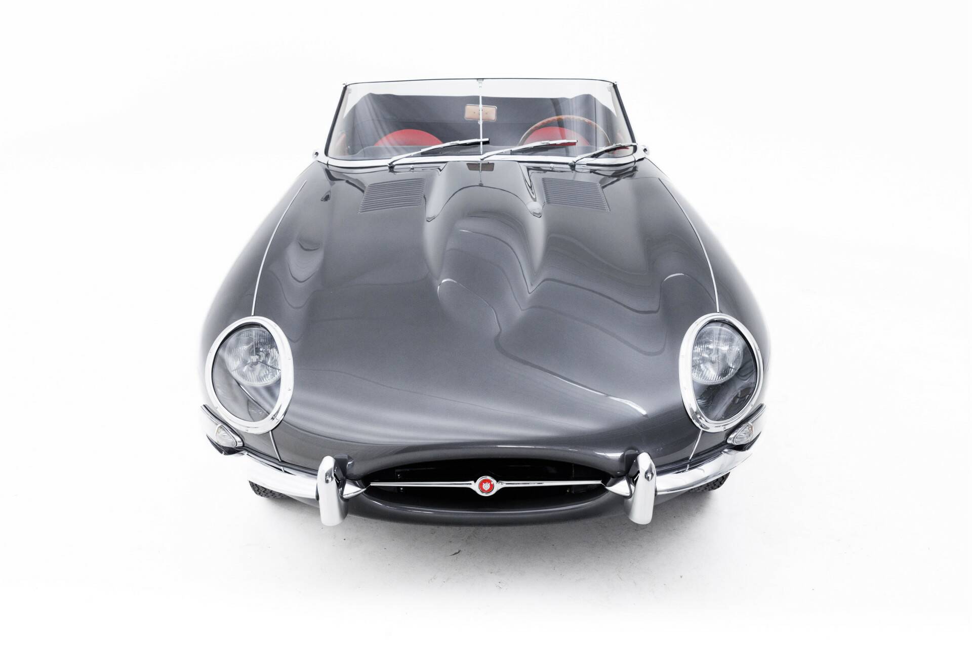 Het unieke carosserienummer bevindt zich bij deze vroegste E-Types op het schutbord, in tegenstelling tot andere E-types waar dit nummer zich in de kofferbak bevindt.
