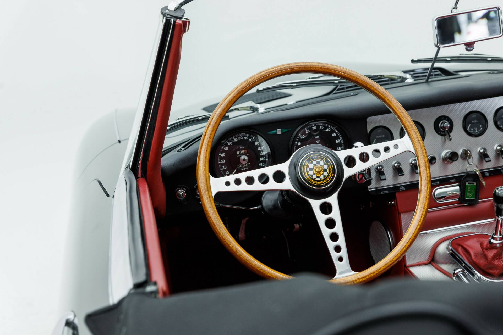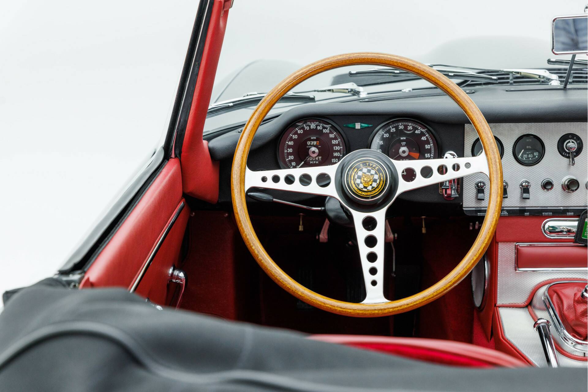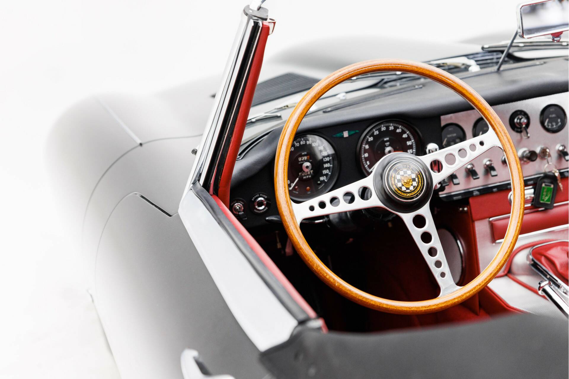 Deze bijzonder fraaie “outside bonnet latch” E-Type werd op 18 juli 1961 gebouwd en behoort hiermee tot één van de vroege linksgestuurde E-type roadsters, geconstrueerd in de eerste maanden van Jaguar’s E-type productie.