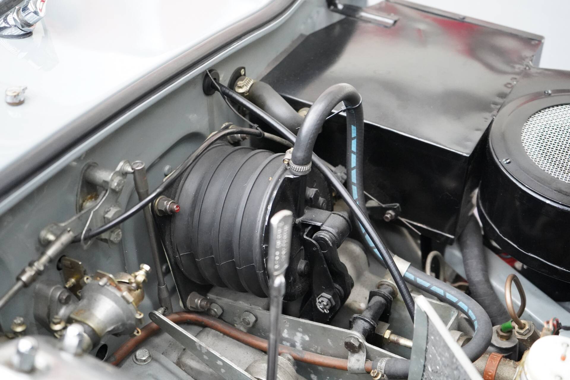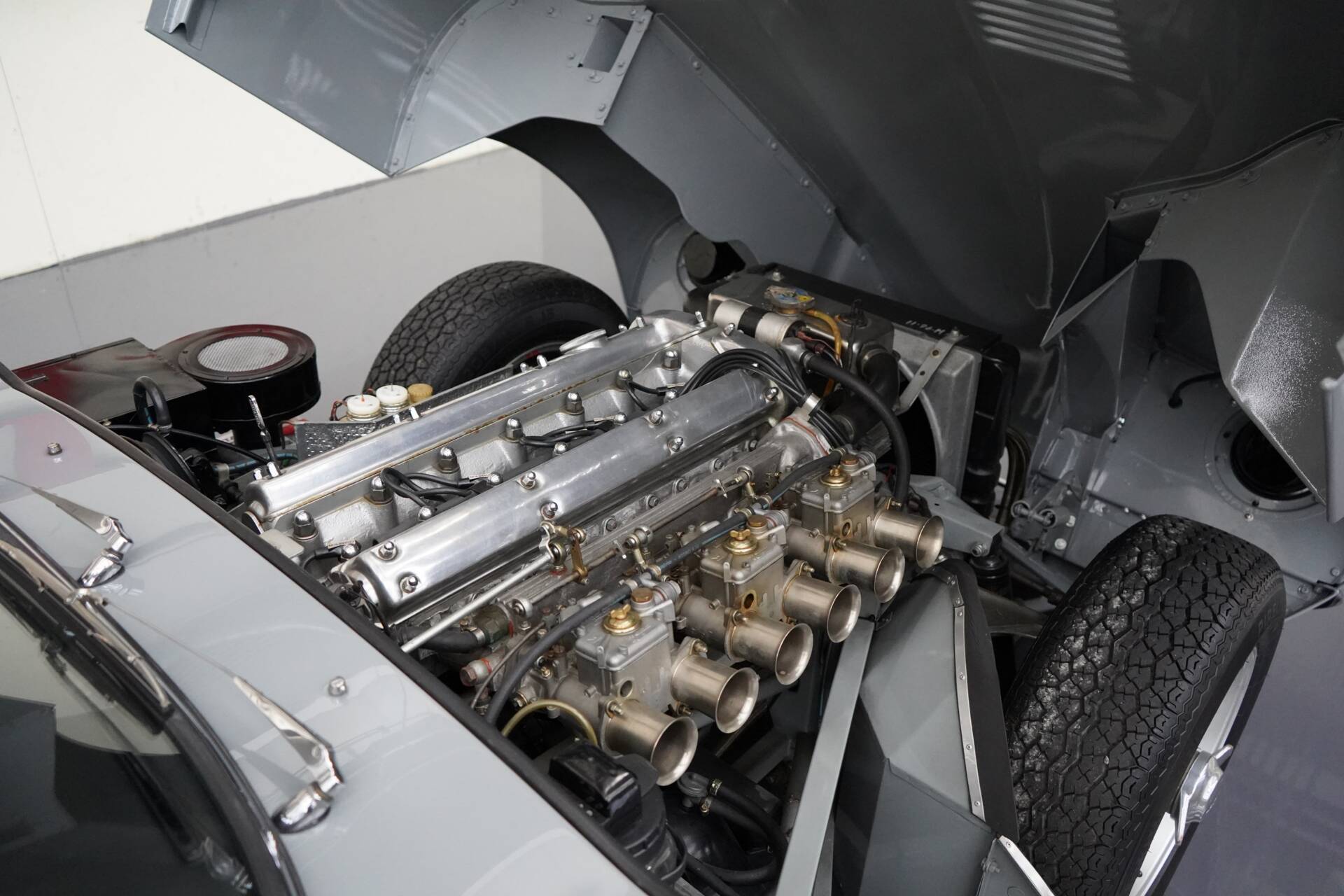 Im Zuge der Restaurierung wurde der Wagen auch u.a. mit Sport-Schalensitzen, Felgen im Dunlop Stil (D-Type), 3-Fach Weber Doppelvergasern mit offener Ansaugung und verbesserten Abgaskrümmern aufgewertet.