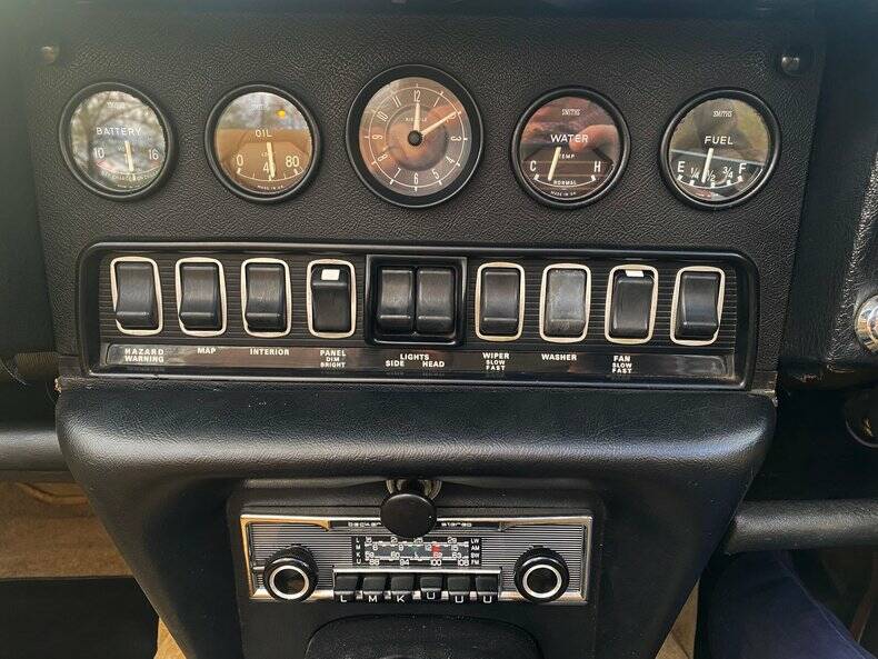 Supplied with sundym glass, chrome wire wheels (fitted with the correct Dunlop SP sport tyres) internally adjustable drivers door mirror and a snazzy Becker Europa period stereo with electric aerial, for an E Type of this period, this is about as much as you could option from the factory or supplying dealer