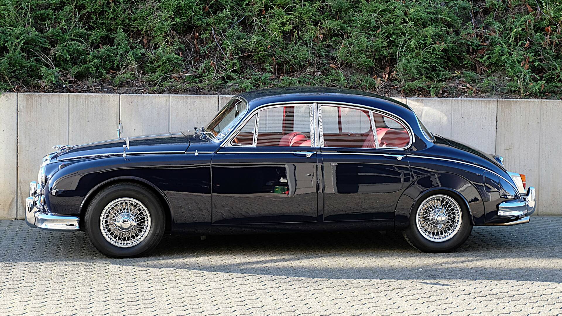 Die Karosse hatte gegenüber seinem Vorgänger dem Jaguar 2.4 und 3.4 Litre größere Fensterflächen und verbesserten Motoren und ein moderneres Fahrwerk mit Scheibenbremsen sorgten für hohe Fahrfreude. Er konnte sehr sportlich bewegt werden. Es gab 3 Motorvarianten mit 2,4, 3,4 und 3,8 Liter Motoren. Unser Exemplar hat den mittleren, sehr drehfreudigen 3.4 Liter Motor mit 210 HP, gepaart mit einem mechanischen, vollsynchronisiertem 4-Gang-Getriebe mit Overdrive. So können auch längere Etappen entspannt zurückgelegt werden. Er ist aus dem Letzen Baujahr und hat auch alle damaligen Verbesserungen erhalten. Der MKII ist Limousine und Sportwagen in einem und hat diese Qualitäten auch bei sportlichen Einsätzen unter Beweis gestellt.