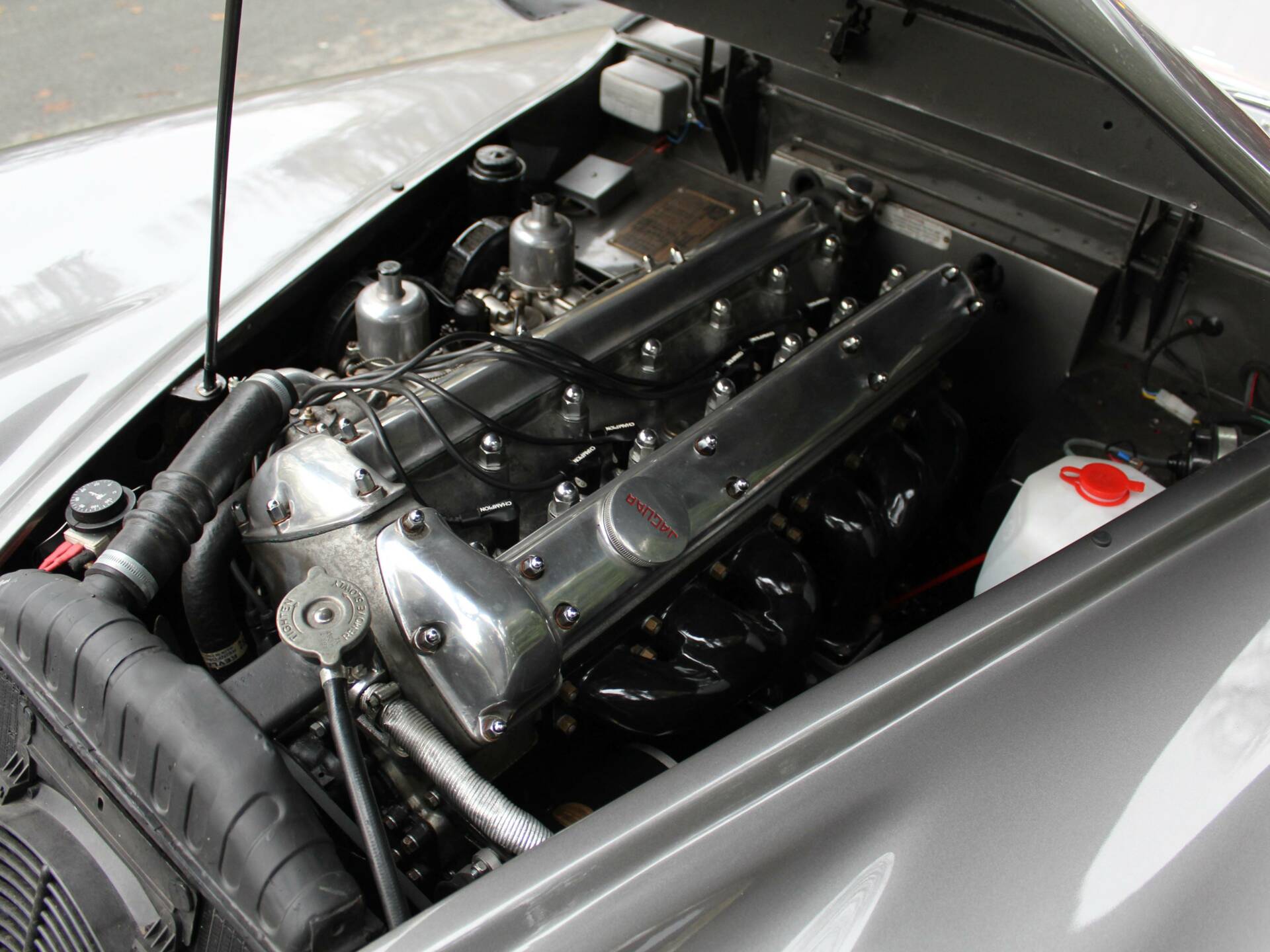 Very few miles have been covered since the major engine rebuild that included stripping the block right down ahead of a crankshaft re-grind, new pistons, main and big end bearings. Further to that the XK had a rear crankshaft seal conversion, new timing chains and guides, rebuilt water pump, rebuild cylinder head, all new gaskets, new clutch along with many other new parts. The engine was then mated to the new five speed gearbox and beautifully detailed and then re-fitted to the nicely prepared engine bay. The carbs were then rebuilt and the car set up ahead of road testing