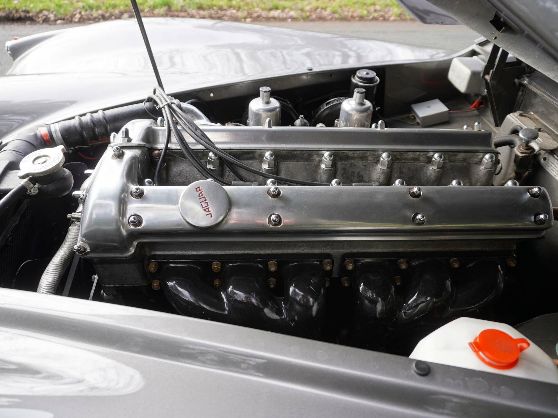 Very few miles have been covered since the major engine rebuild that included stripping the block right down ahead of a crankshaft re-grind, new pistons, main and big end bearings. Further to that the XK had a rear crankshaft seal conversion, new timing chains and guides, rebuilt water pump, rebuild cylinder head, all new gaskets, new clutch along with many other new parts. The engine was then mated to the new five speed gearbox and beautifully detailed and then re-fitted to the nicely prepared engine bay. The carbs were then rebuilt and the car set up ahead of road testing