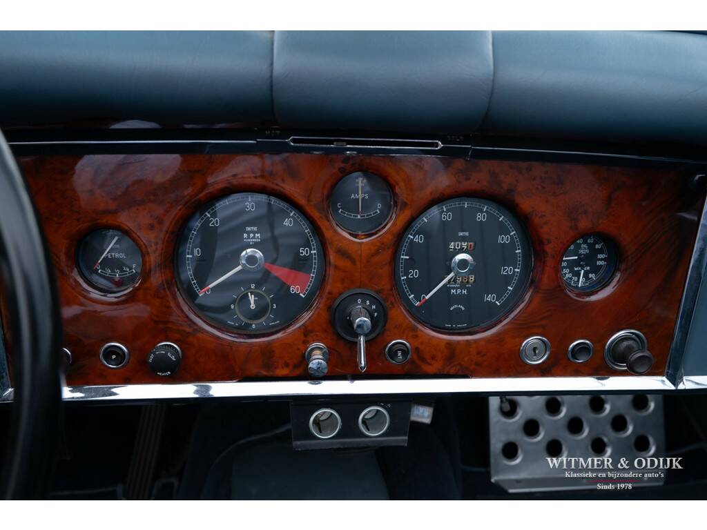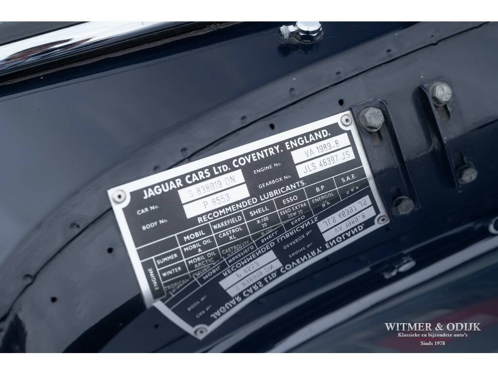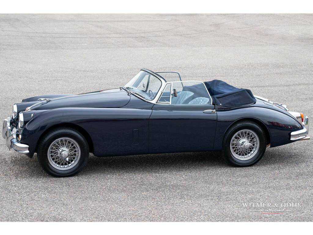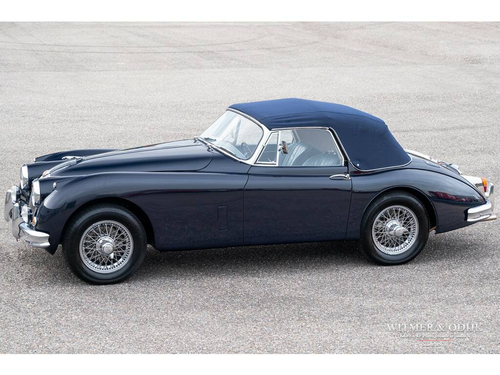 In 1948 introduceerde Jaguar de XK120, in eerste instantie als conceptcar om een nieuw motorontwerp te testen. Het ontwerp werd echter dermate geprezen dat het ook in productie werd genomen. De succesvolle XK serie evolueerde uiteindelijk tot de XK150. Ingenieurs zitten niet stil, meer vermogen, snelheid en steeds groter wordende kopers dwongen Jaguar tot aanpassingen die het tot de XK150 brachten. Zo is een XK120 slechts toegankelijk voor bestuurders van maximaal 1.80mtr. Overigens was de introductie van de XK150 ook het gevolg van de enorme fabrieksbrand in 1957 waardoor de XK140 productielijn volledig verloren ging en niet meer gebouwd kon worden. De 150 was de eerste XK met standaard schijfremmen, door Jaguar uitvoerig getest op het circuit van Le Mans. Vanaf 1959 werd er een 3.8ltr versie leverbaar met uiteraard meer motorvermogen, dit in 1961 gebouwde exemplaar beschikt over die (originele) motor. Aan de lichtblauwe kleur van de cilinderkop herkend men de sterkere motor. Misschien nog wel belangrijker, deze XK150 heeft ook elektrische stuurbekrachtiging. De stuurbekrachtiging werd ingebouwd nadat de auto in de jaren negentig volledig gerestaureerd werd door gerenommeerd specialist Noble House. Van deze restauratie is een compleet fotoboek bij de auto aanwezig. Tot in detail is de auto gerestaureerd en gereviseerd destijds. Blijk van de vakkundige restauratie is dat de carrosserie nog steeds roestvrij is, technisch vooral voelbaar door hoe geweldig deze XK rijdt. De donkerblauwe softtop werd recent vernieuwd. De totale productie van de XK's maakt deze Jaguar naar moderne maatstaven al tot een zeer zeldzame auto. Bovendien is ze dankzij haar ruime interieur en geweldige rijeigenschappen klaar voor optimaal rijplezier!