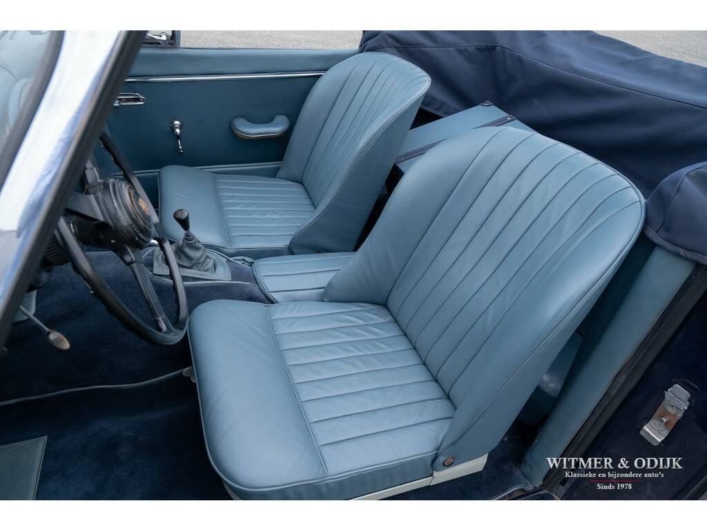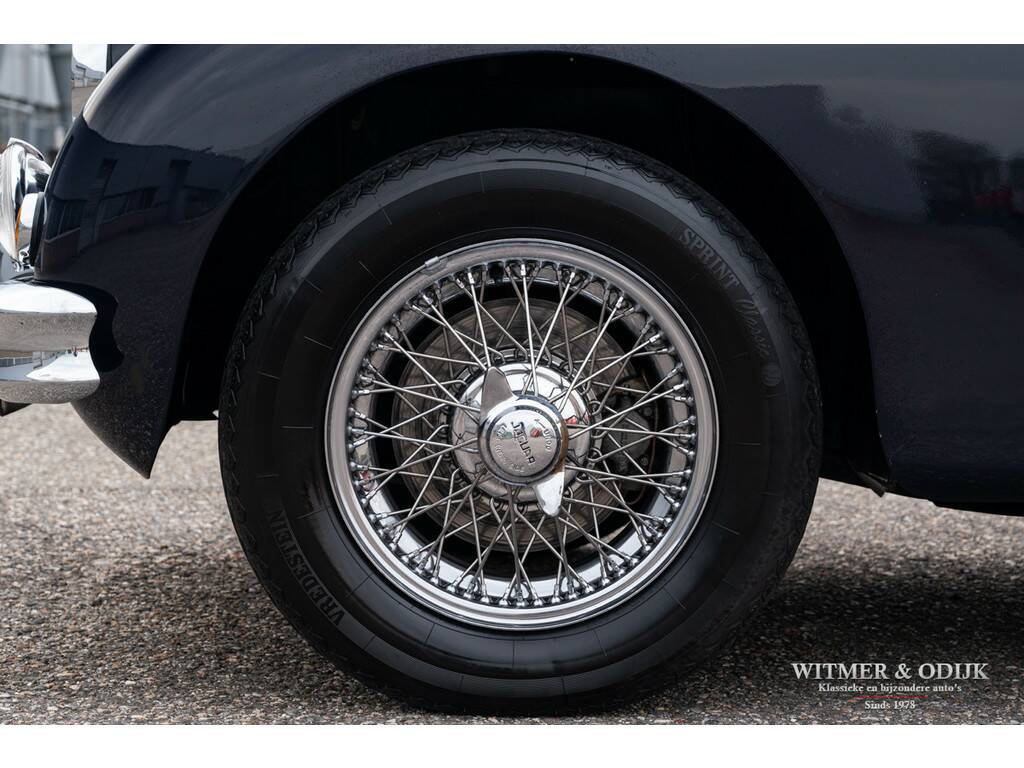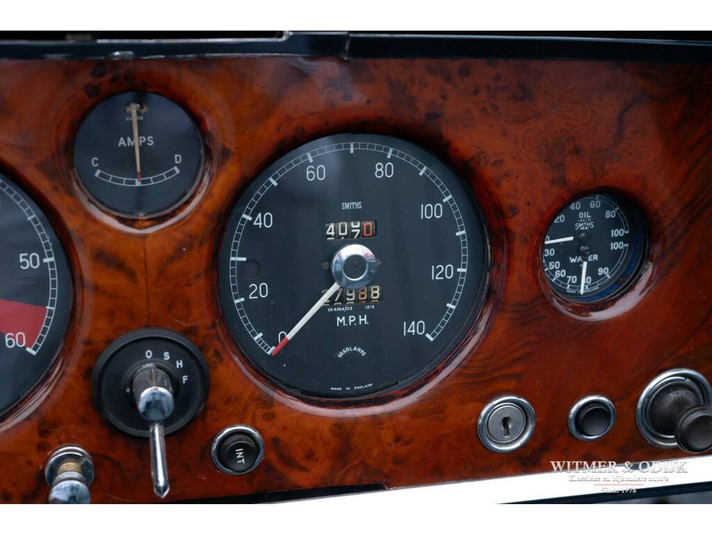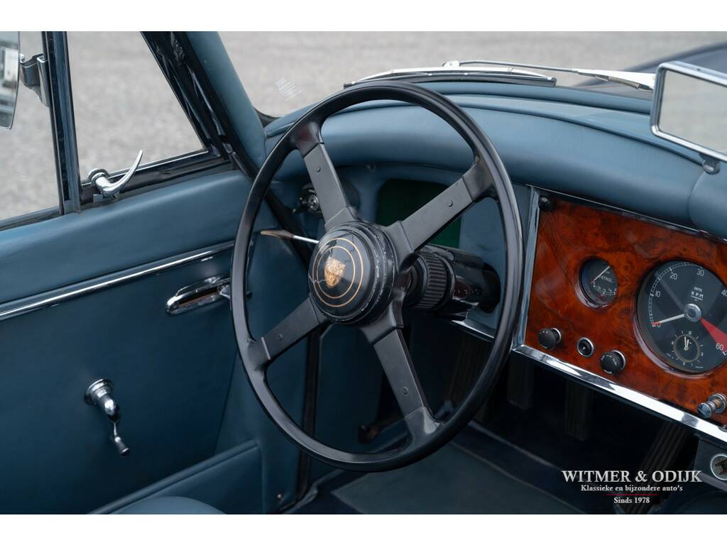 In 1948 introduceerde Jaguar de XK120, in eerste instantie als conceptcar om een nieuw motorontwerp te testen. Het ontwerp werd echter dermate geprezen dat het ook in productie werd genomen. De succesvolle XK serie evolueerde uiteindelijk tot de XK150. Ingenieurs zitten niet stil, meer vermogen, snelheid en steeds groter wordende kopers dwongen Jaguar tot aanpassingen die het tot de XK150 brachten. Zo is een XK120 slechts toegankelijk voor bestuurders van maximaal 1.80mtr. Overigens was de introductie van de XK150 ook het gevolg van de enorme fabrieksbrand in 1957 waardoor de XK140 productielijn volledig verloren ging en niet meer gebouwd kon worden. De 150 was de eerste XK met standaard schijfremmen, door Jaguar uitvoerig getest op het circuit van Le Mans. Vanaf 1959 werd er een 3.8ltr versie leverbaar met uiteraard meer motorvermogen, dit in 1961 gebouwde exemplaar beschikt over die (originele) motor. Aan de lichtblauwe kleur van de cilinderkop herkend men de sterkere motor. Misschien nog wel belangrijker, deze XK150 heeft ook elektrische stuurbekrachtiging. De stuurbekrachtiging werd ingebouwd nadat de auto in de jaren negentig volledig gerestaureerd werd door gerenommeerd specialist Noble House. Van deze restauratie is een compleet fotoboek bij de auto aanwezig. Tot in detail is de auto gerestaureerd en gereviseerd destijds. Blijk van de vakkundige restauratie is dat de carrosserie nog steeds roestvrij is, technisch vooral voelbaar door hoe geweldig deze XK rijdt. De donkerblauwe softtop werd recent vernieuwd. De totale productie van de XK's maakt deze Jaguar naar moderne maatstaven al tot een zeer zeldzame auto. Bovendien is ze dankzij haar ruime interieur en geweldige rijeigenschappen klaar voor optimaal rijplezier!
