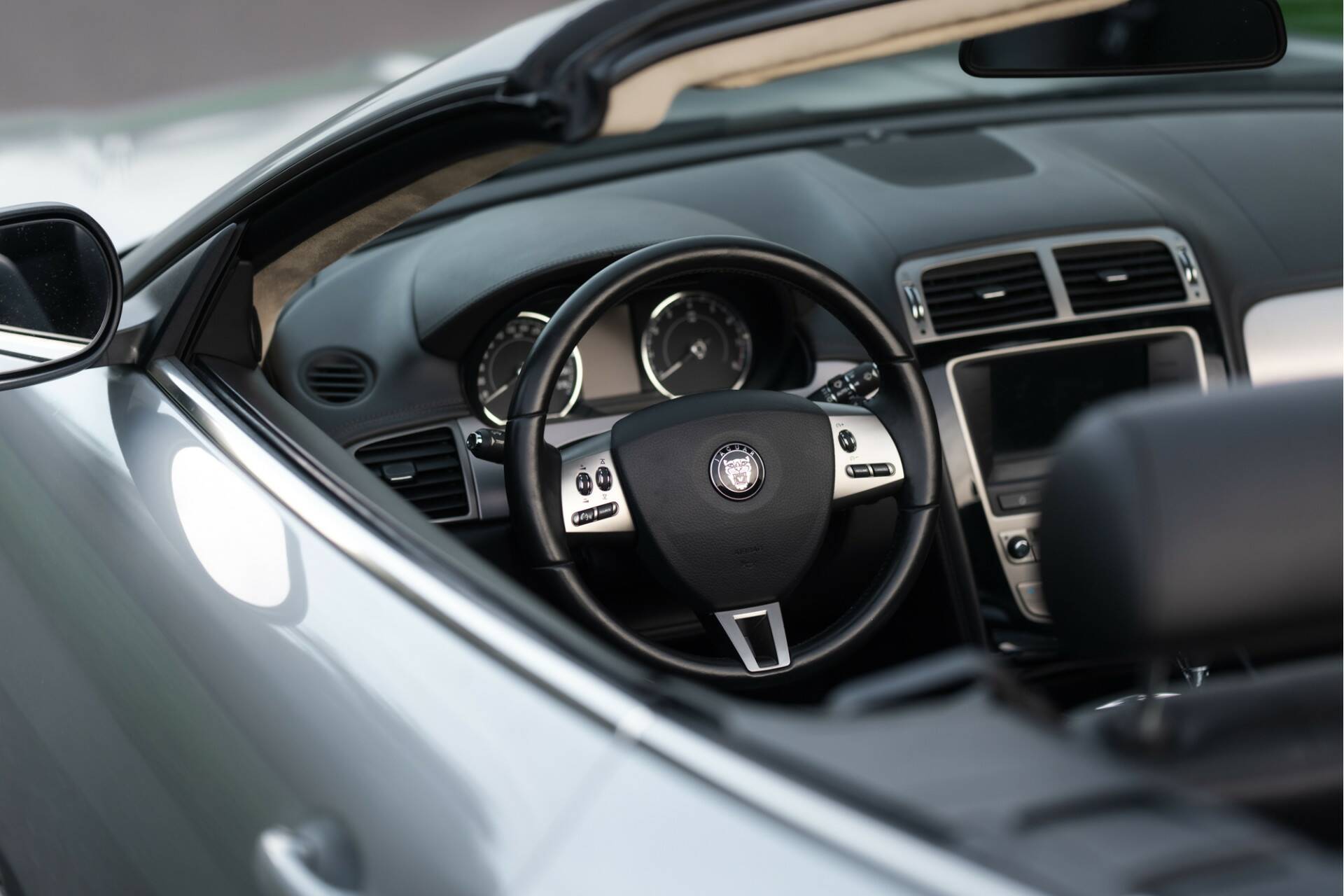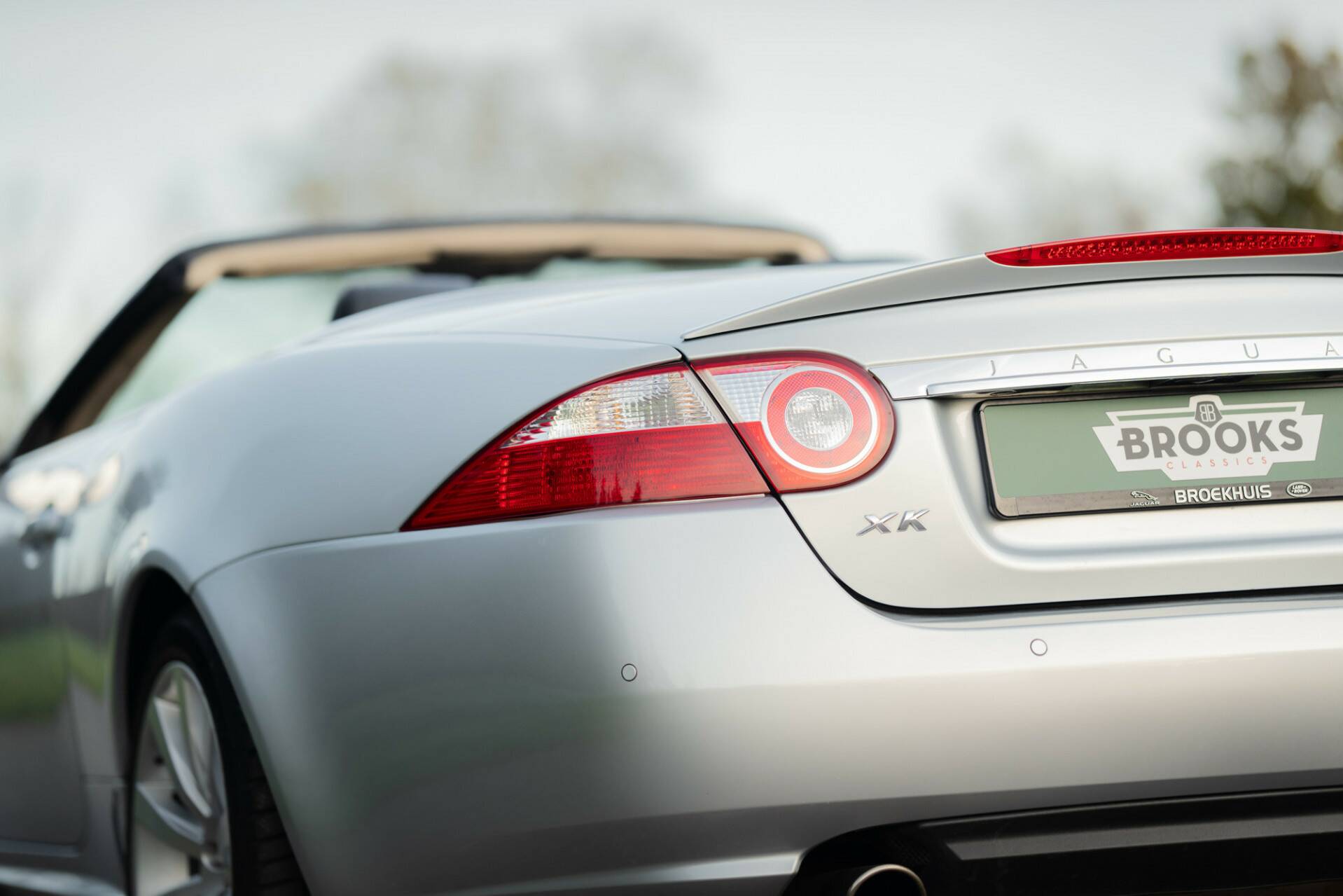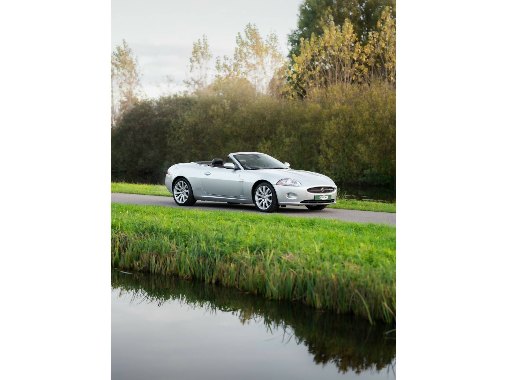 Dit exemplaar uit 2008 is een fraai en verzorgd XK-model,uitgevoerd in Rhodium Silver met een zwart leren interieur in zeer goede staat.De cabriokap sluit strak en werkt perfect; het interieur ademt kwaliteitdankzij het gebruik van hoogwaardige materialen, verchroomde details en hetkarakteristieke Jaguar-dashboard.