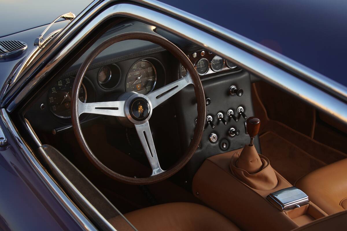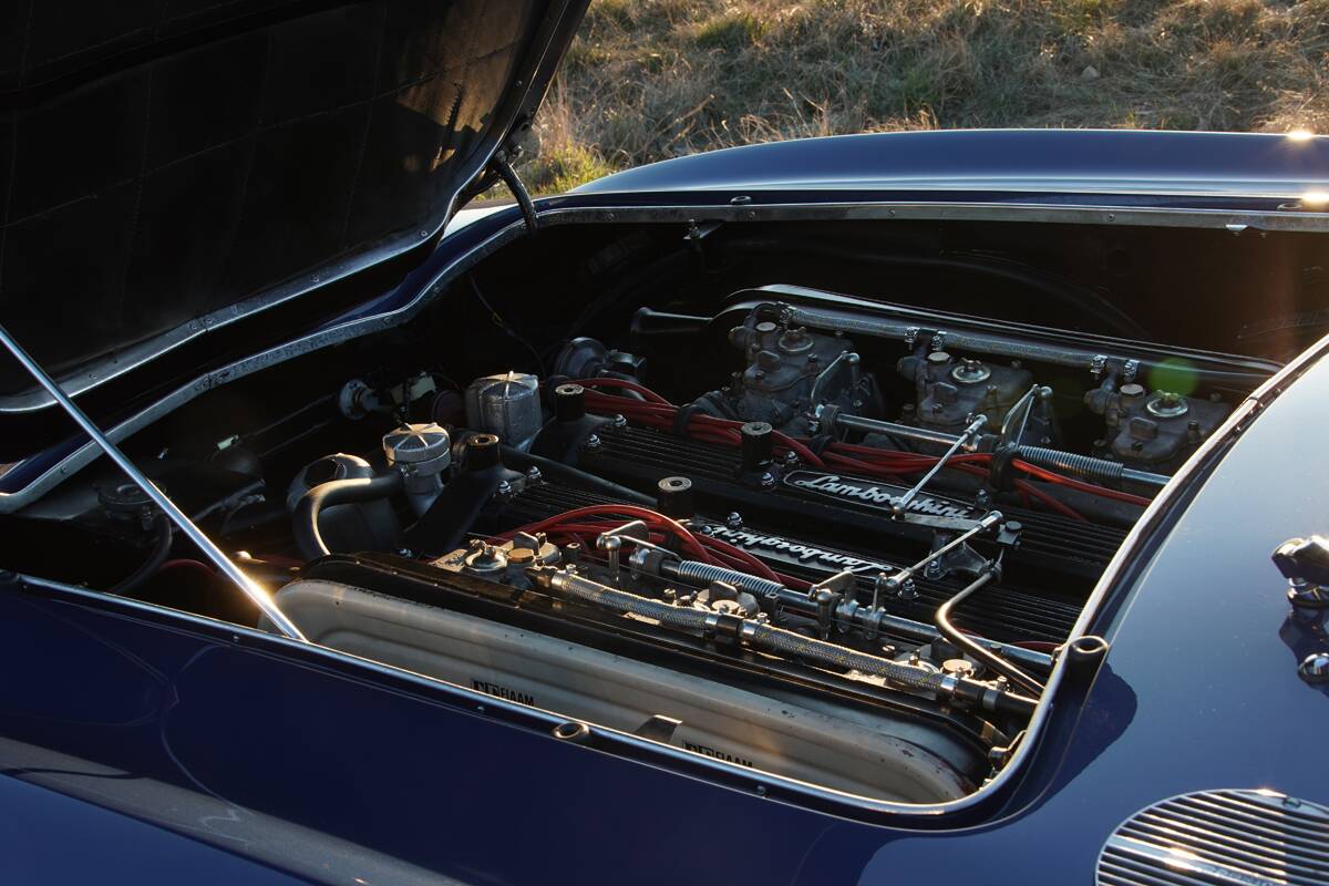 This car, chassis number 1063 (engine 1052), was dispatched to the USA and the extensive history file contains an original letter from the distributor, Jake Kaplan’s Lamborghini East, to the car’s first owner John A. Conde. Conde was a noted automotive historian who spent 32 years as the public relations director at American Motors and was the curator of transportation at the Henry Ford Museum in Dearborn. In the 1990’s the 400GT returned to Europe via the UK and in 1994 was purchased by Heribert Meller in Germany who had various restoration works carried out by Mathias Rapp in Cologne. In 2013, the car was purchased by its most recent owner and a comprehensive restoration to the highest standards was immediately commissioned, to return the car to its original specification. The coachwork was refinished in Blue Notte, whilst the interior was reupholstered in the correct Senape leather, both to exact factory standards. Mechanical aspects were taken care of by Lamborghini specialist Wolfgang Instinski with thorough overhauls of the engine, gearbox and suspension. A full record of this restoration work, including invoices and photographs, is available for inspection. The car has gone on to win first place awards at concours events.
