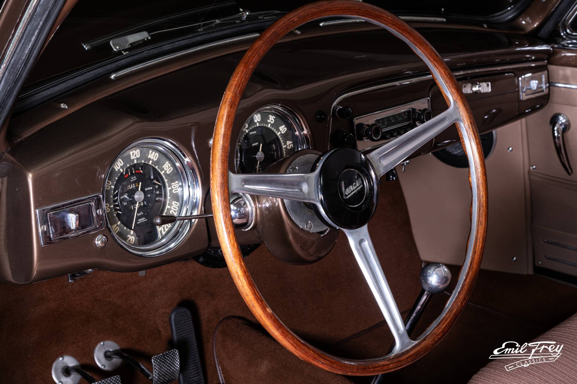 Sowohl das Exterieur wie auch das Interieur überzeugen mit einem nahezu neuwertigen, authentischen Zustand. Spätestens nach dem Starten des sehr laufruhigen Triebwerks wird einem die Klasse eines echten Lancia bewusst. Kurzum: ein besonderer Klassiker für Kenner.
