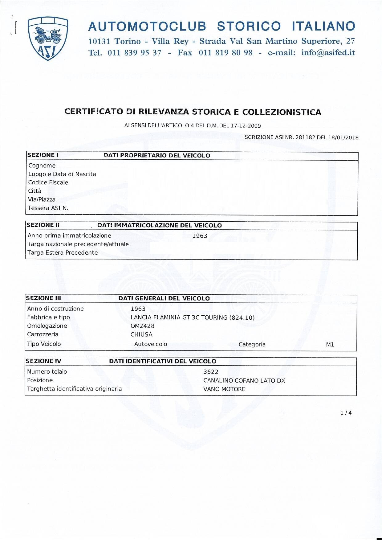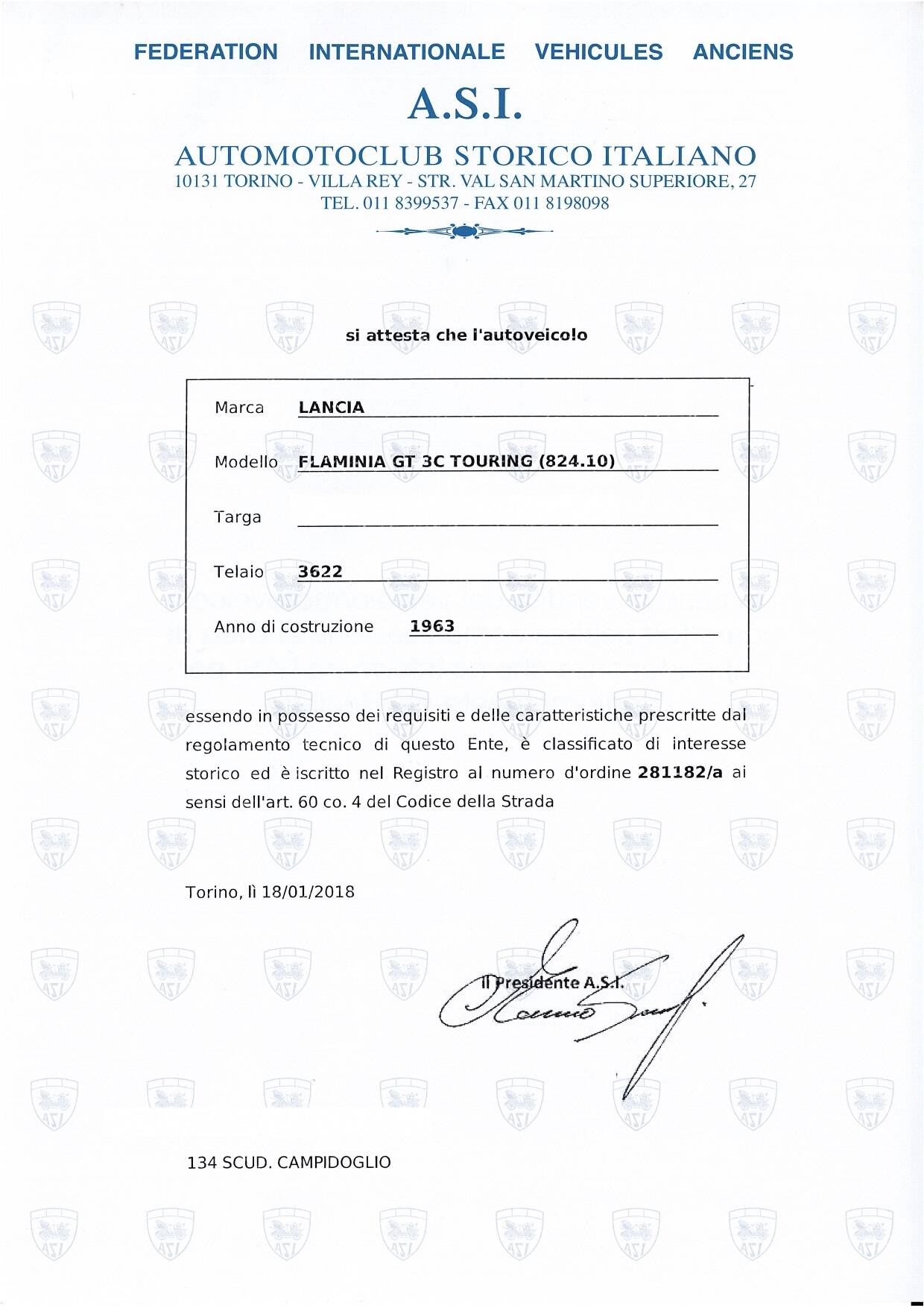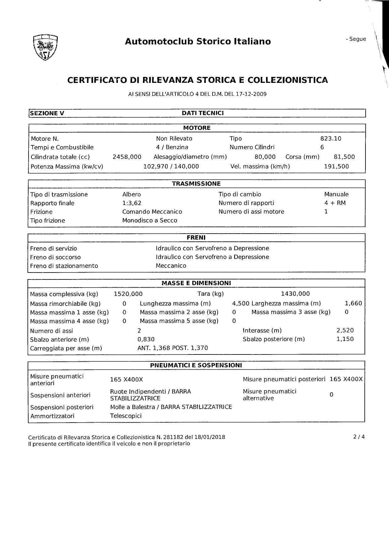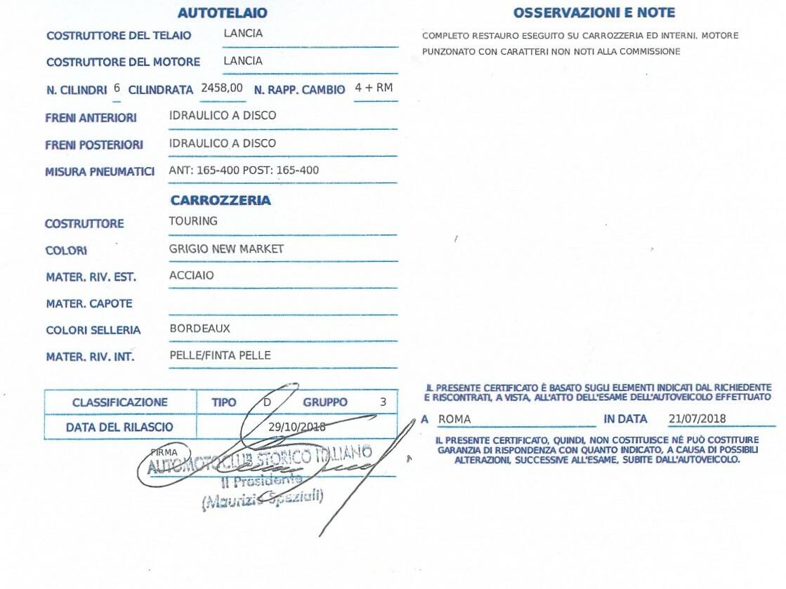 In 2018, the car was awarded both the ASI Homologation and the ASI Certificate of Historical Relevance, confirming its originality, authenticity, and excellent condition.