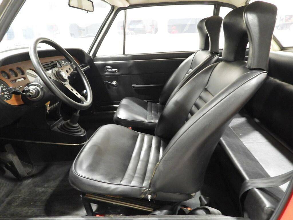 Sedili e pannelli in TVE(Tessuto vinile elastico) nero, Volante FERRERO a tre razze originale dell’epoca, Specchio esterno VITALONI nero al parafango anteriore sinistro, Fari fendinebbia rettangolari a luce gialla, Cerchi in lega Lancia Cromodora 14x6j con pneumatici 185/70R14