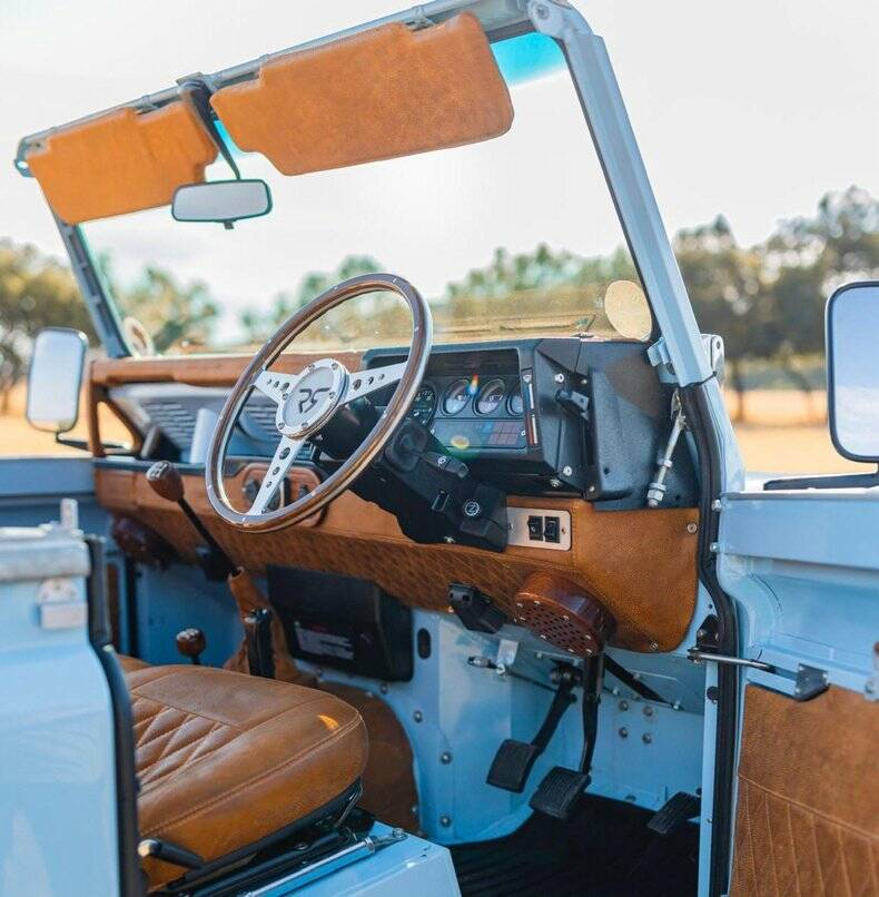 The price reflects not only the quality of the work but the rarity of such a cohesive vision. This is not just a capable Defender for the fields or the dunes, but also a jaunt-mobile for the city, lakeside, day trips - just like a Riva!