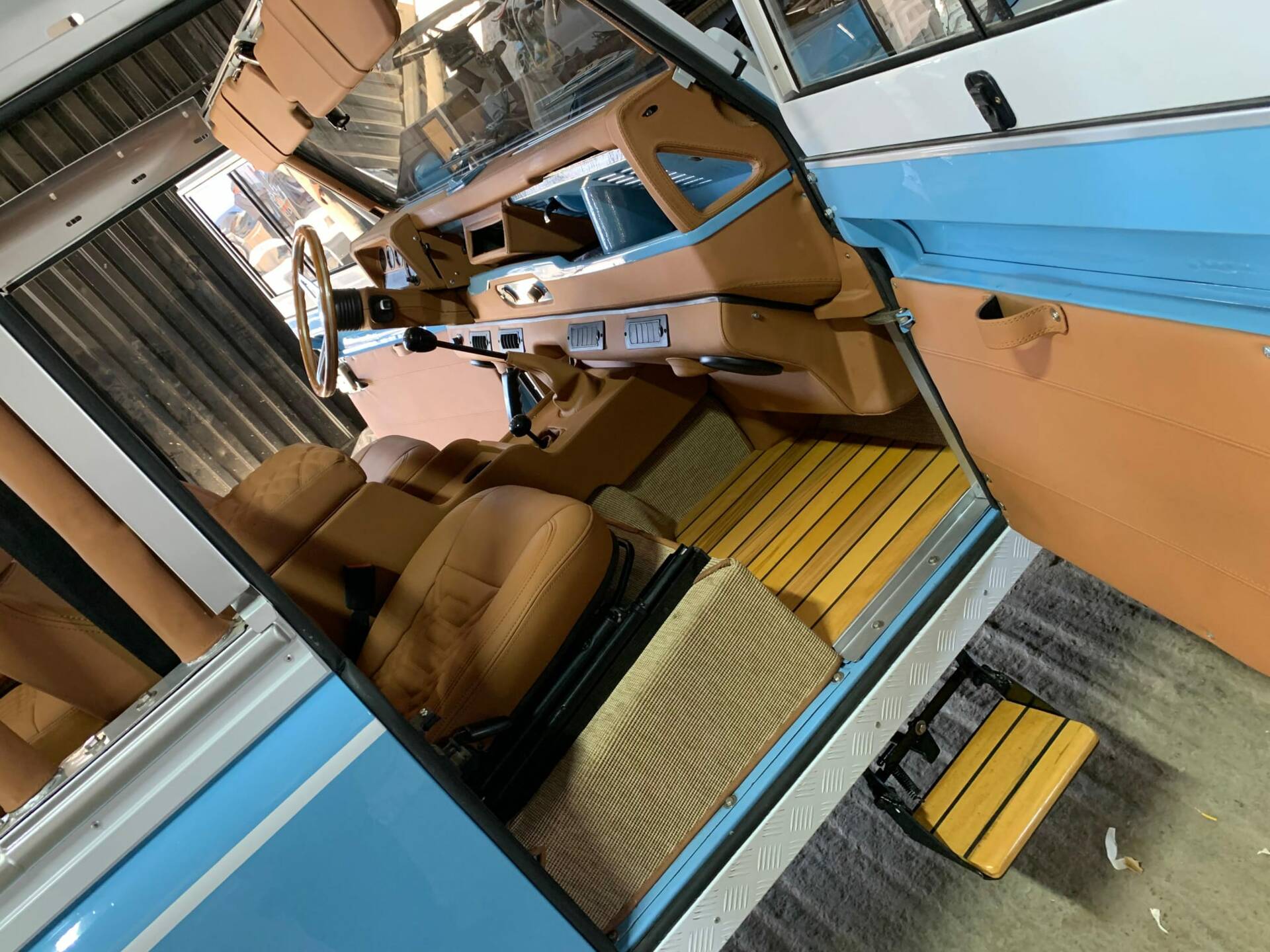 Plancher chauffeur, passager et coffre en teck style pont bateau, finition haut de gamme