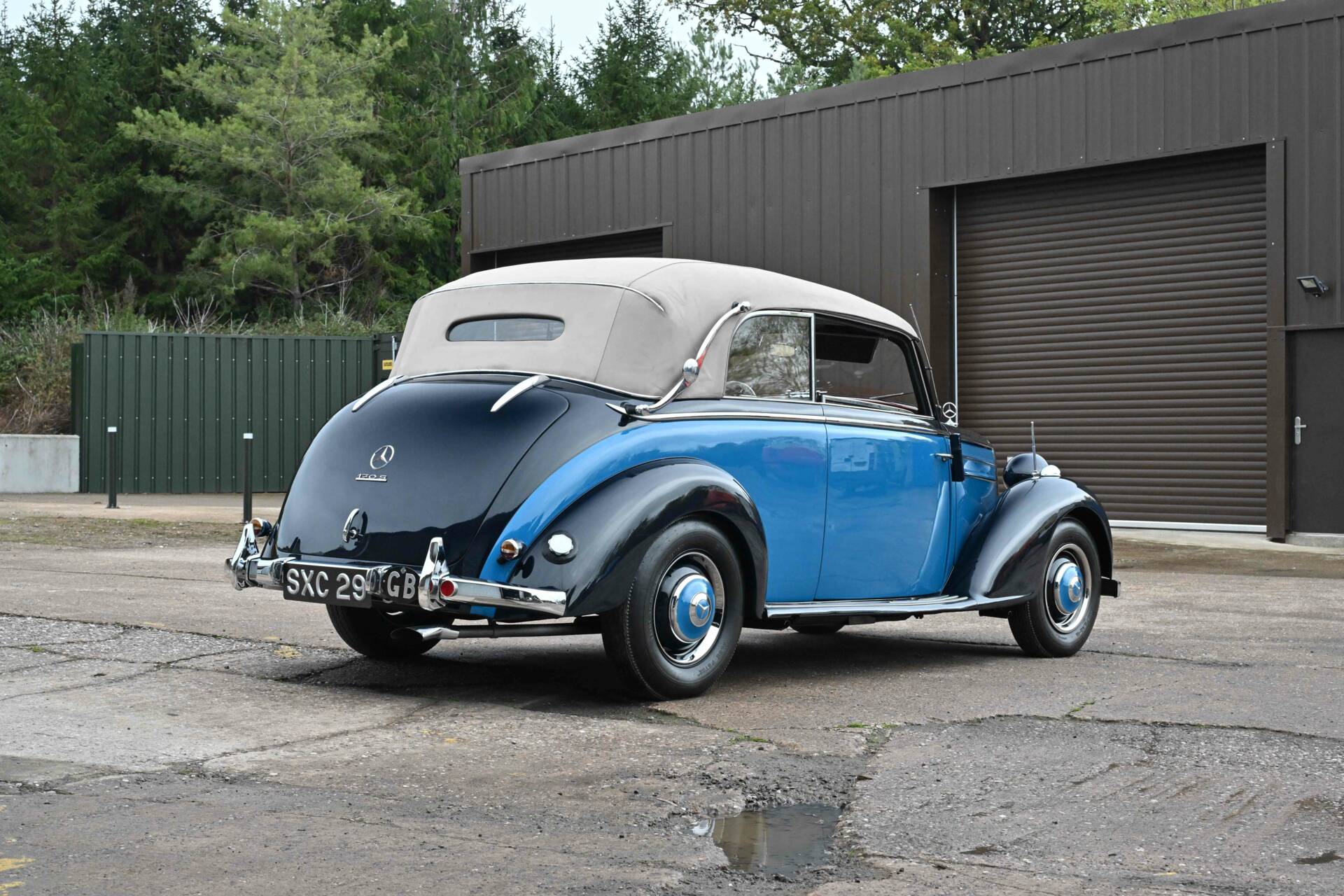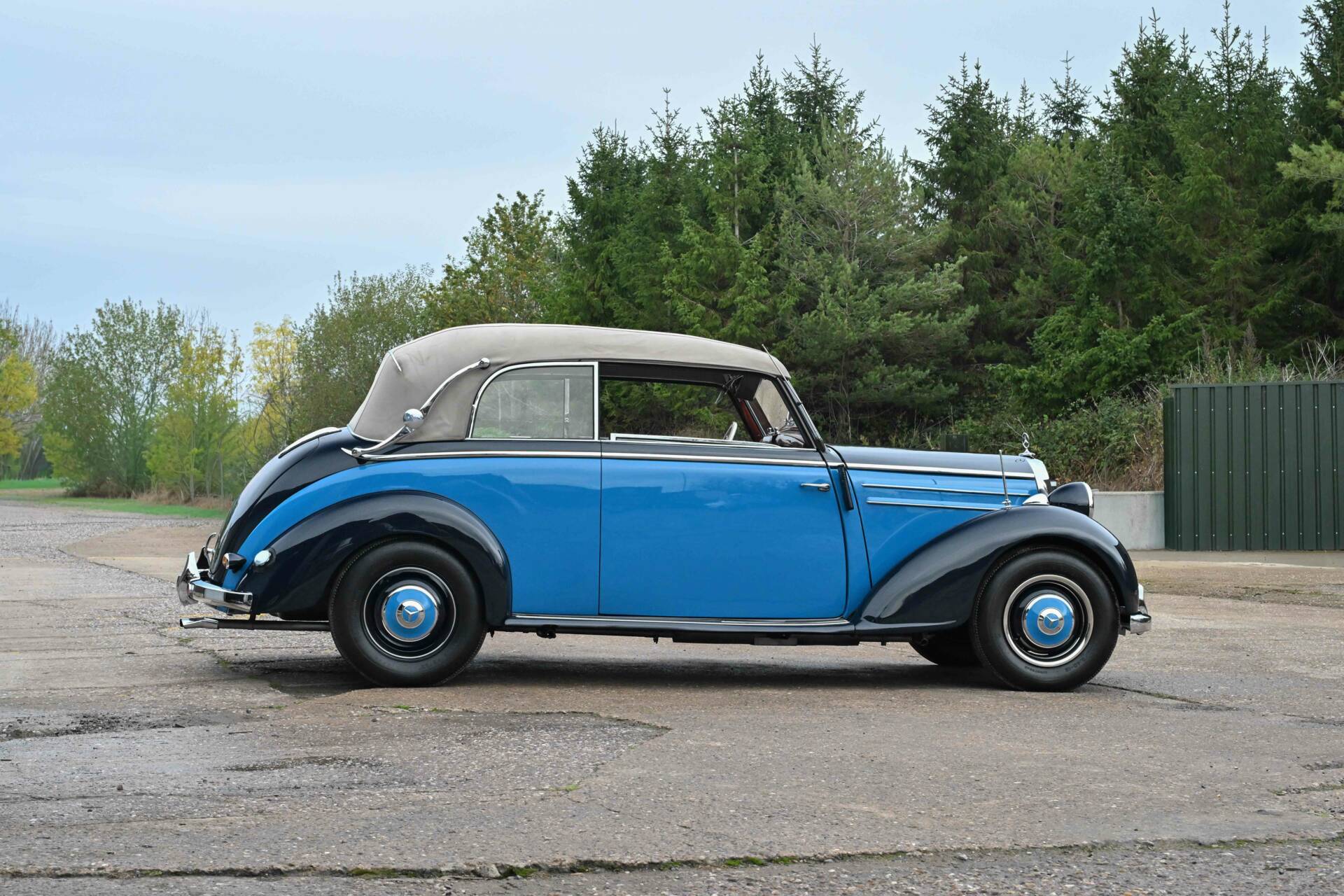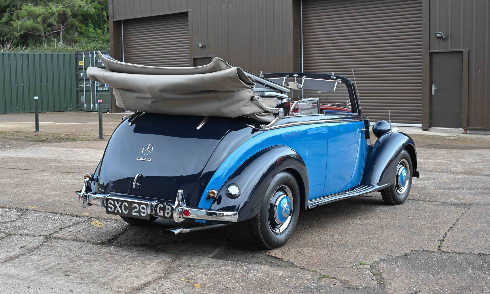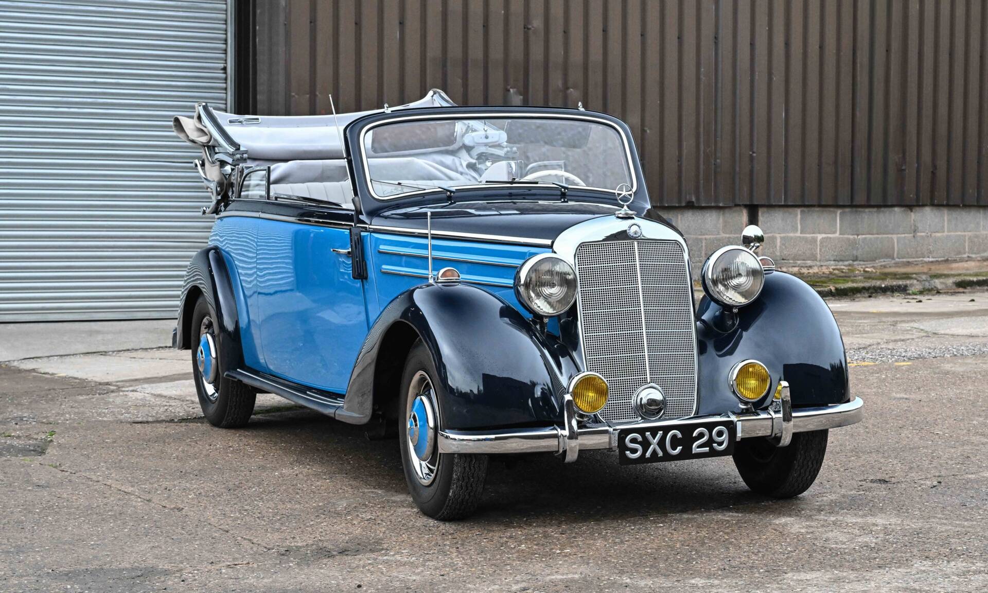 The car offered here was used by the MI6 in Berlin during one of the most interesting periods of the Cold War in the 1950's. Imported to the UK in the late 50's, and after lying in decay for decades it was purchased by Kenneth Foat who then restored it to a concours standard. The car has since won several awards, been on display at Mercedes-Benz World and featured in the Mercedes history movie. This award-winning Mercedes-Benz is presented in two-tone blue with light grey leather interior. Its black hood is in superb condition and folds back as it should, all wood is in excellent condition and the whole car remains in award winning condition. Aside from its condition, this absolute gem has as fascinating history! It was owned originally by MI6 in 1956 and used by the then MI6 agent, Howard Greville, his neighbour in Berlin at the time was none other than the infamous George Blake, the Soviet double agent/spy during the height of the Cold War period. There is no doubt George knew the Mercedes well, considering he and Howard worked together and lived at the same address, so it's highly likely George sometimes took a ride with Howard to the MI6 headquarter at the Olympic Games stadium. The incredible and fascinating history together with the car's superb condition, must surely make this one of the most desirable examples of this model to come to the market in years. This car was also displayed to the public at Mercedes-Benz World in Brooklands between 2008-2013. Consigned by Will Penrose