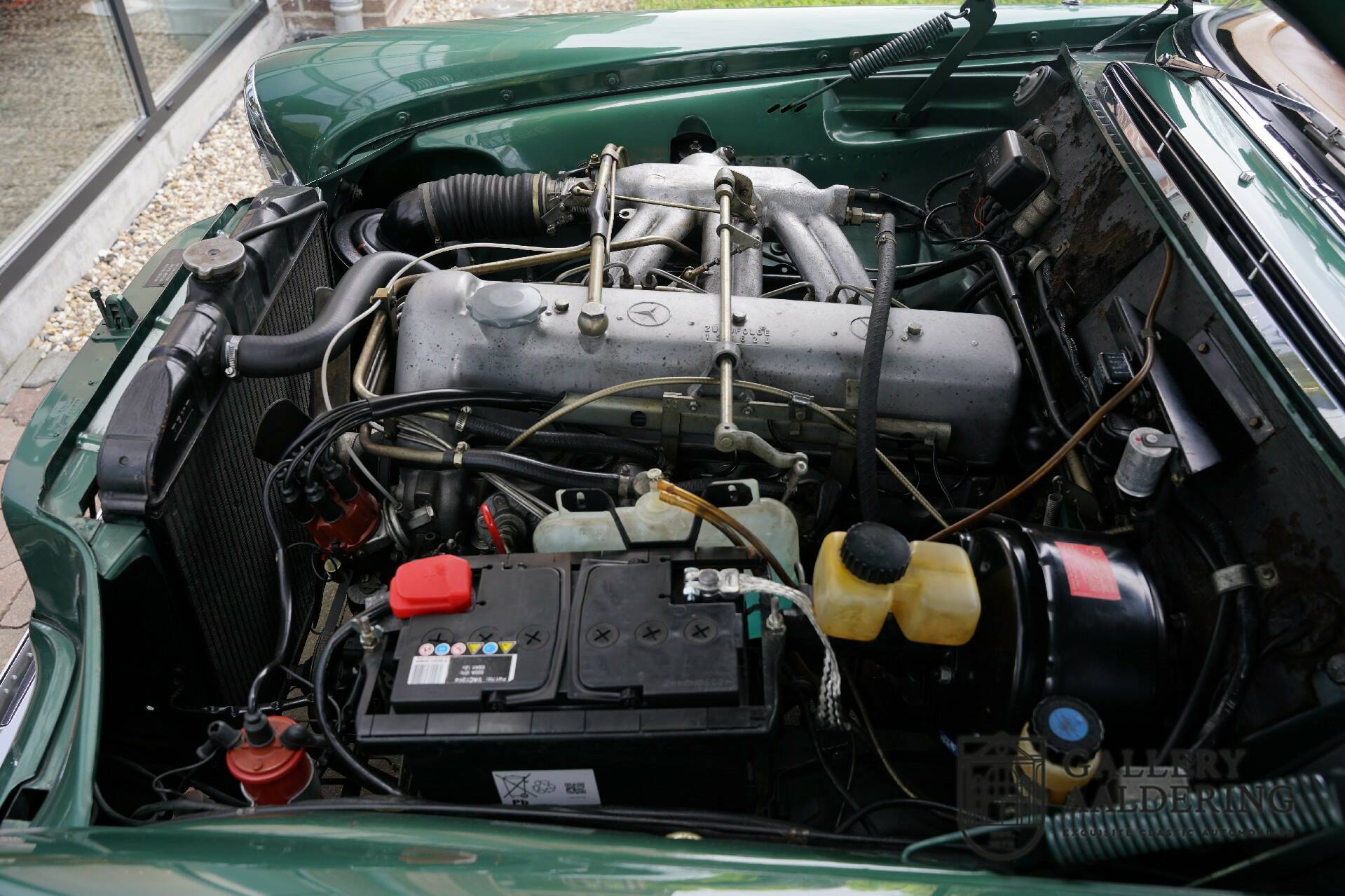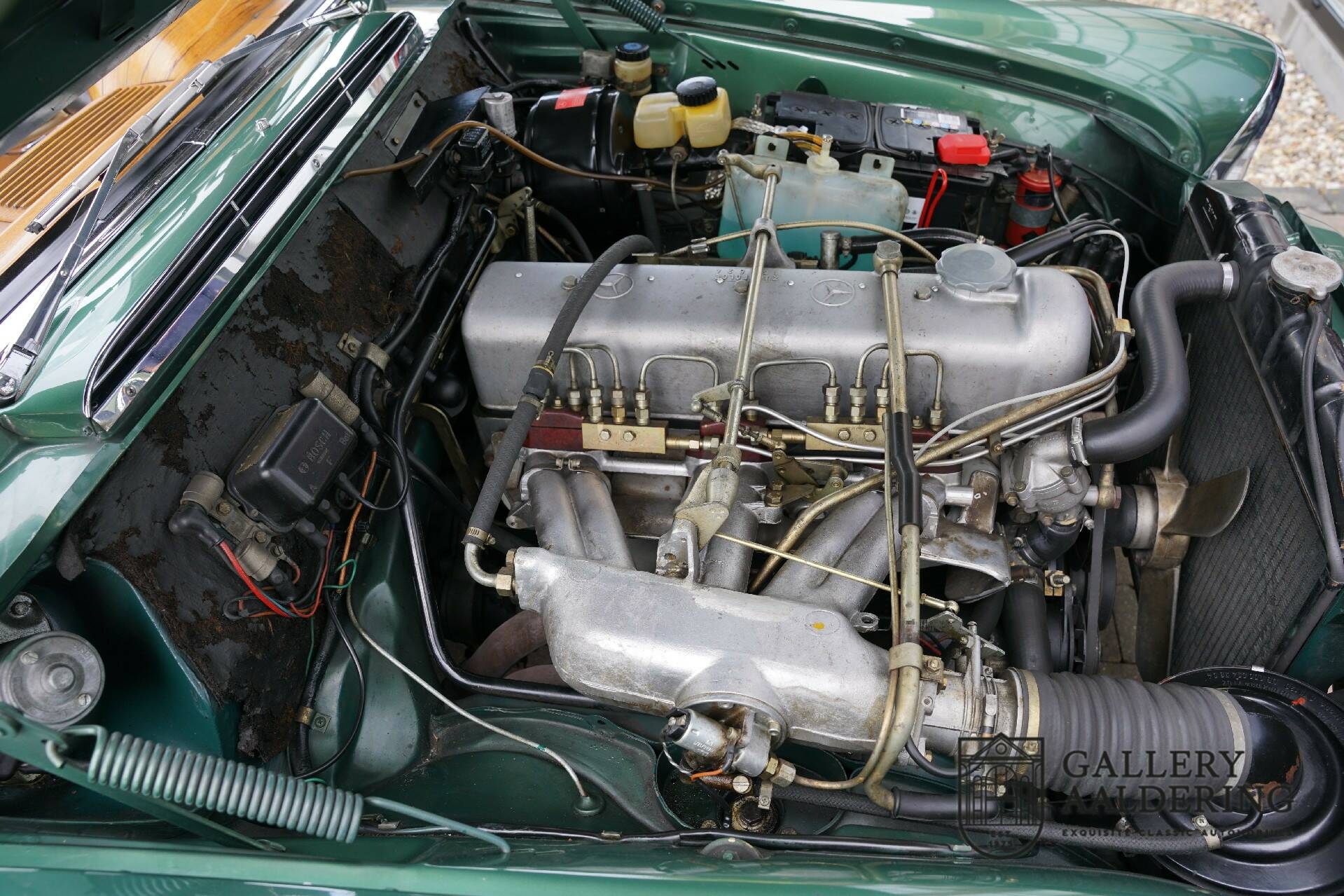 De auto wordt aangedreven door de onverwoestbare M270 zes-in-lijn die in dit geval 2.2 liter groot is en 118 pk levert. De motor is heerlijk soepel en loopt prachtig. Een snelle blik op de Datenkarte die bij de auto komt, laat zien dat deze auto nog steeds beschikt over de originele motor. Het betreft hier dus een matching numbers auto. De transmissie met vier versnellingen past zeer goed bij het koppelrijke karakter van de zes-in-lijn en het ontspannen rijgedrag van de 220SE cabriolet. Dit is een wagen waarin u heerlijk kunt ontspannen en om mee te toeren over de mooiste landelijk gelegen wegen die u maar kunt vinden. Ondertussen geniet u niet alleen van het prachtige motorgeluid, maar ook van de langzaam voorbij trekkende omgeving. Het onderstel en de remmen zijn eveneens zeer goed op hun taak berekend en dragen bij aan het comfortabele totaalplaatje.