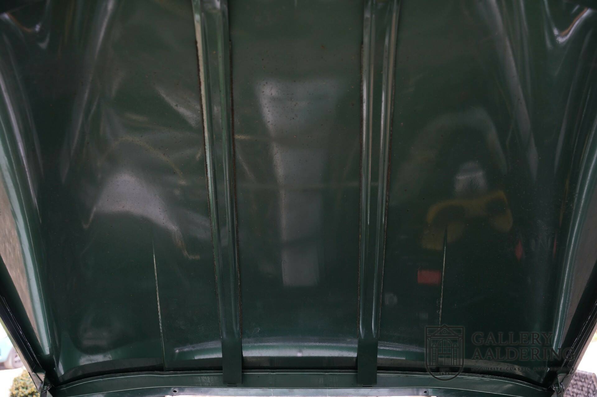 De carrosserie ziet er schitterend uit en is overduidelijk gekoesterd. Het plaatwerk ziet er nog prima uit en de verschillende carrosseriedelen hebben hele mooie passingen. De lak is omwille van cosmetische redenen al een keer opnieuw gespoten en ziet er nog steeds prachtig uit. De cabrioletkap laat zich eenvoudig bedienen en sluit overal fraai aan. De auto staat op de originele stalen velgen met daaromheen wieldoppen die deels zijn verchroomd en deels zijn gespoten in de kleur van de auto.