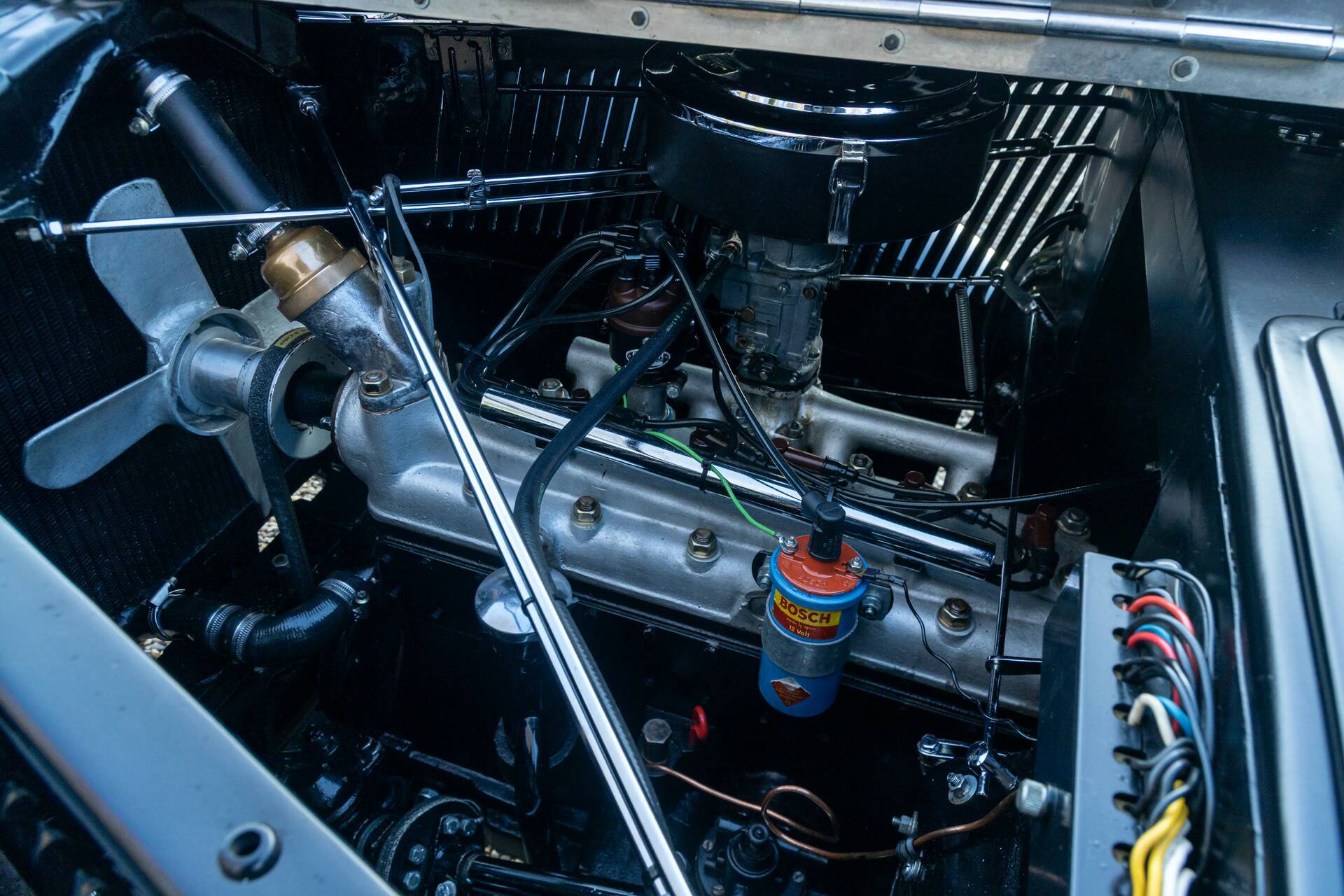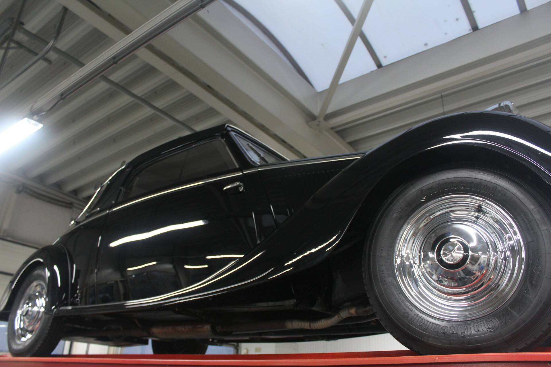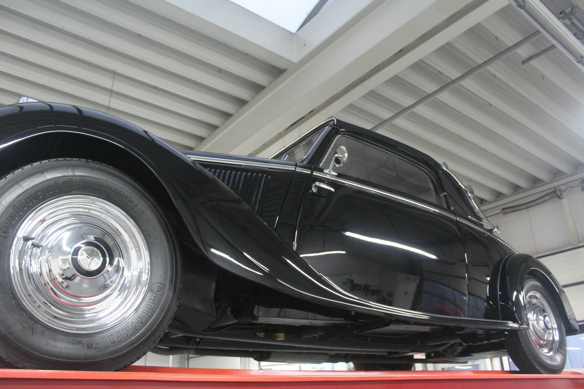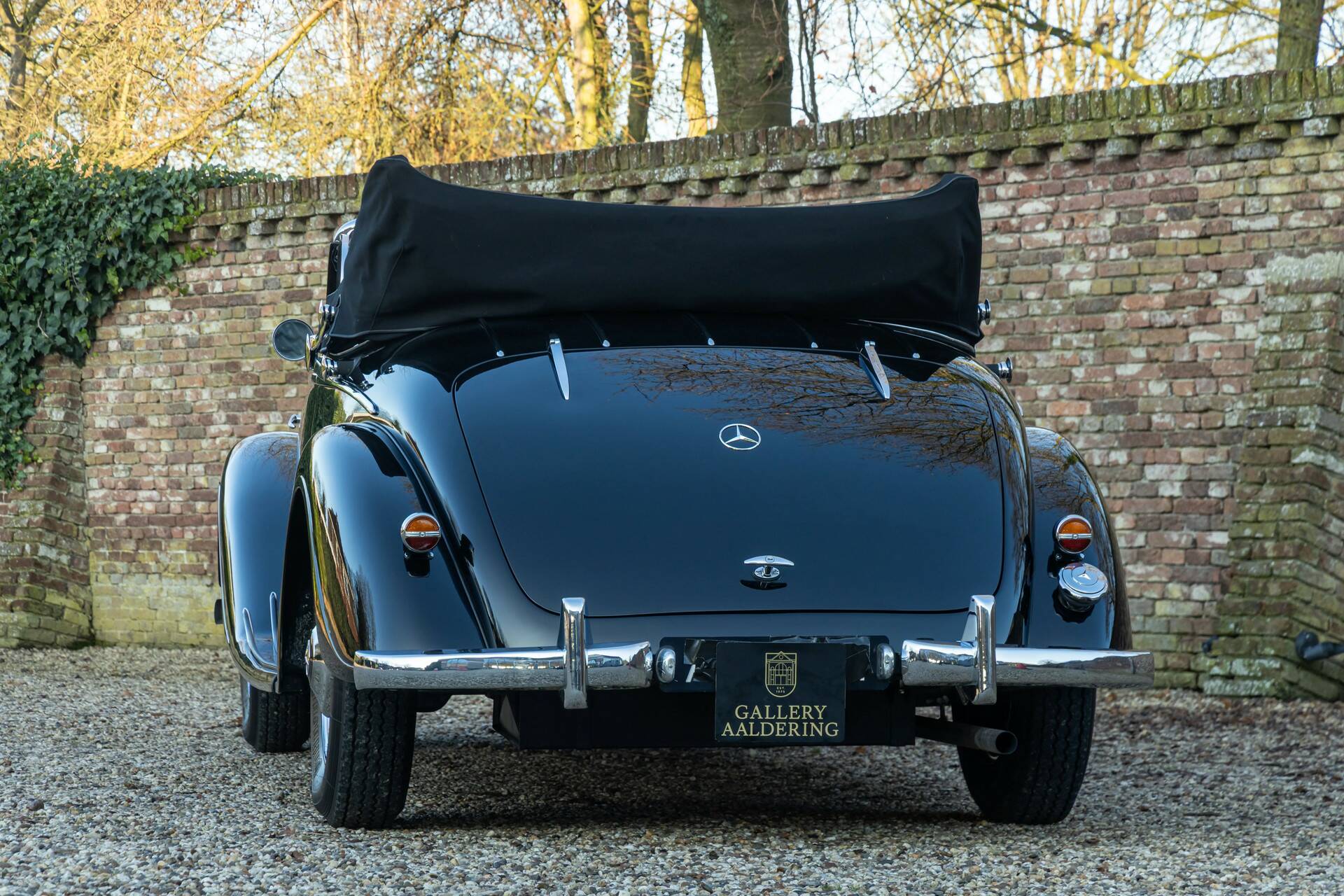 Deze 230A Cabriolet is uitgevoerd in een diepzwarte lak die de lijnen van het koetswerk prachtig accentueert en waarbij het lijkt alsof de auto zo uit een vooroorlogse film komt rijden. In combinatie met het fraaie rode leren interieur ontstaat een zeer stijlvolle vertoning. Wat deze cabriolet extra bijzonder maakt, is zijn onderscheidende carrosserie: geen alledaagse verschijning, maar een variant met een eigen karakter en uitstraling, waardoor hij zich duidelijk onderscheidt van de meer gangbare open modellen uit die periode.