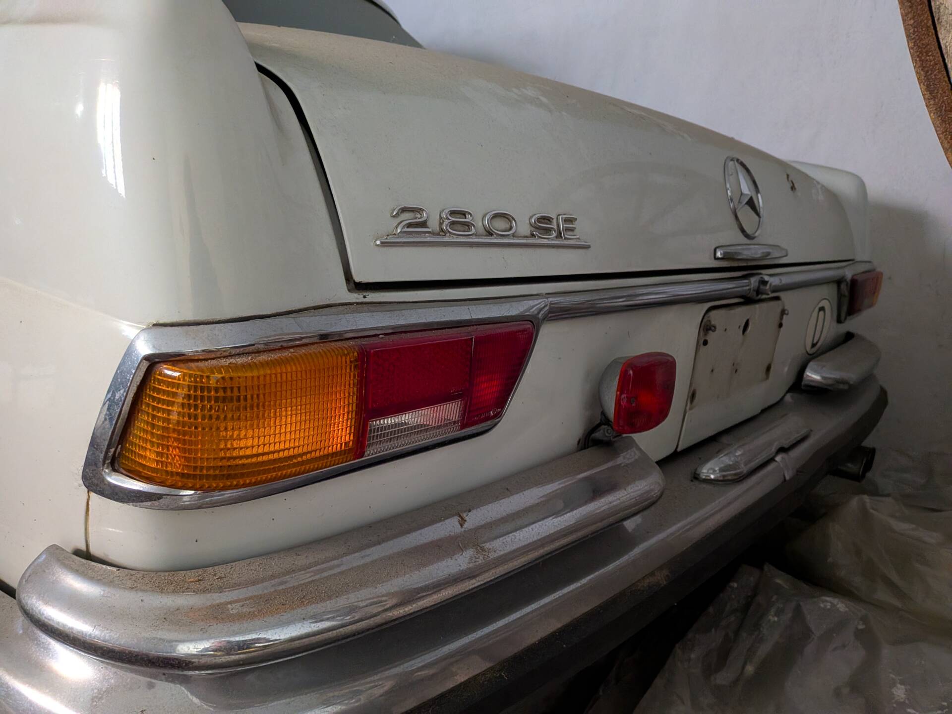 Zum Verkauf steht ein klassischer Mercedes-Benz 280 SE (Baureihe W111) aus dem Jahr 1970, einer der letzten Vertreter der legendären „Heckflossen“-Serie.