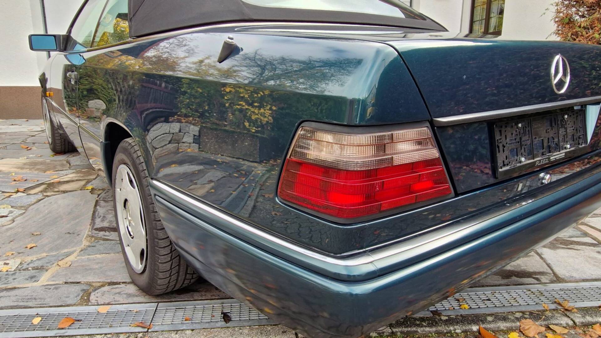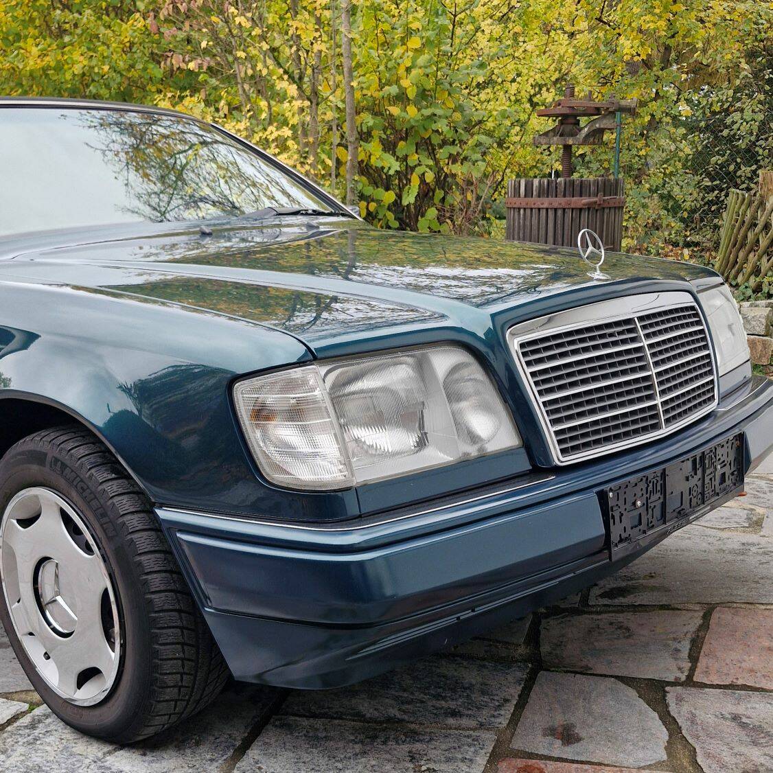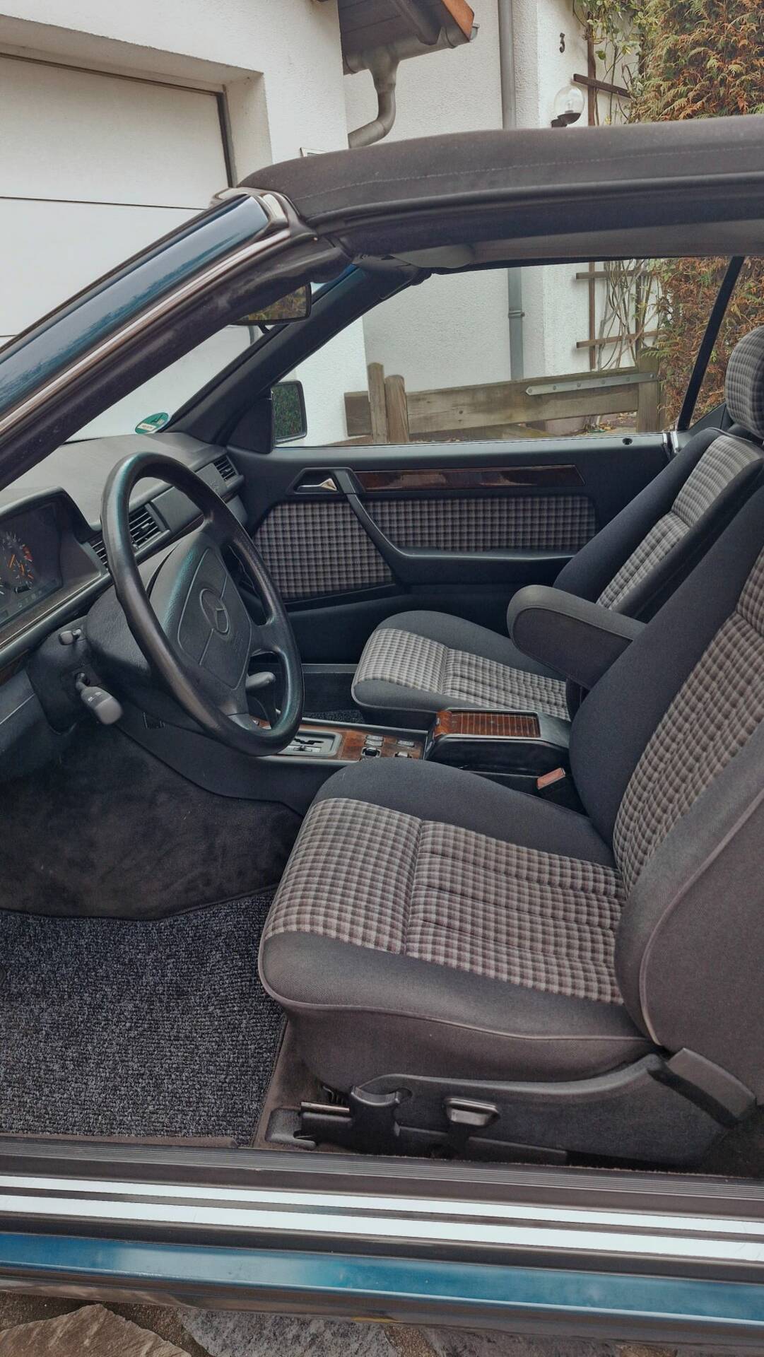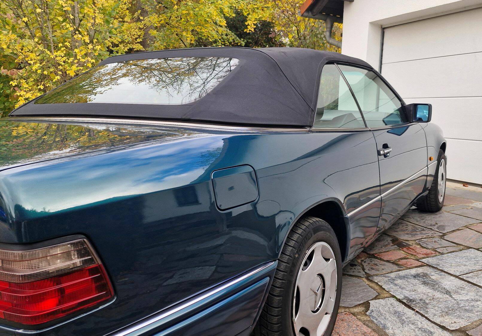 Schönes E 200 Oldtimer Cabrio mit H- Kennzeichen. Dunkelgrünmetallic (turmalin)mit schönem Stoff Karo kombiniert. Gepflegt und gewartet, Garagenfahrzeug.Das Fahrzeug ist gut ausgestattet mit Automatik, Klimaanlage, elektr. Fensterhebern, Tempomat, Sitzheizung, Radiovorrüst. mit elektr. Antenne, ZV mit Funk und 2 Schlüsseln, dunkles Wurzelholz, Ganzjahresreifen, Metalliclack usw.