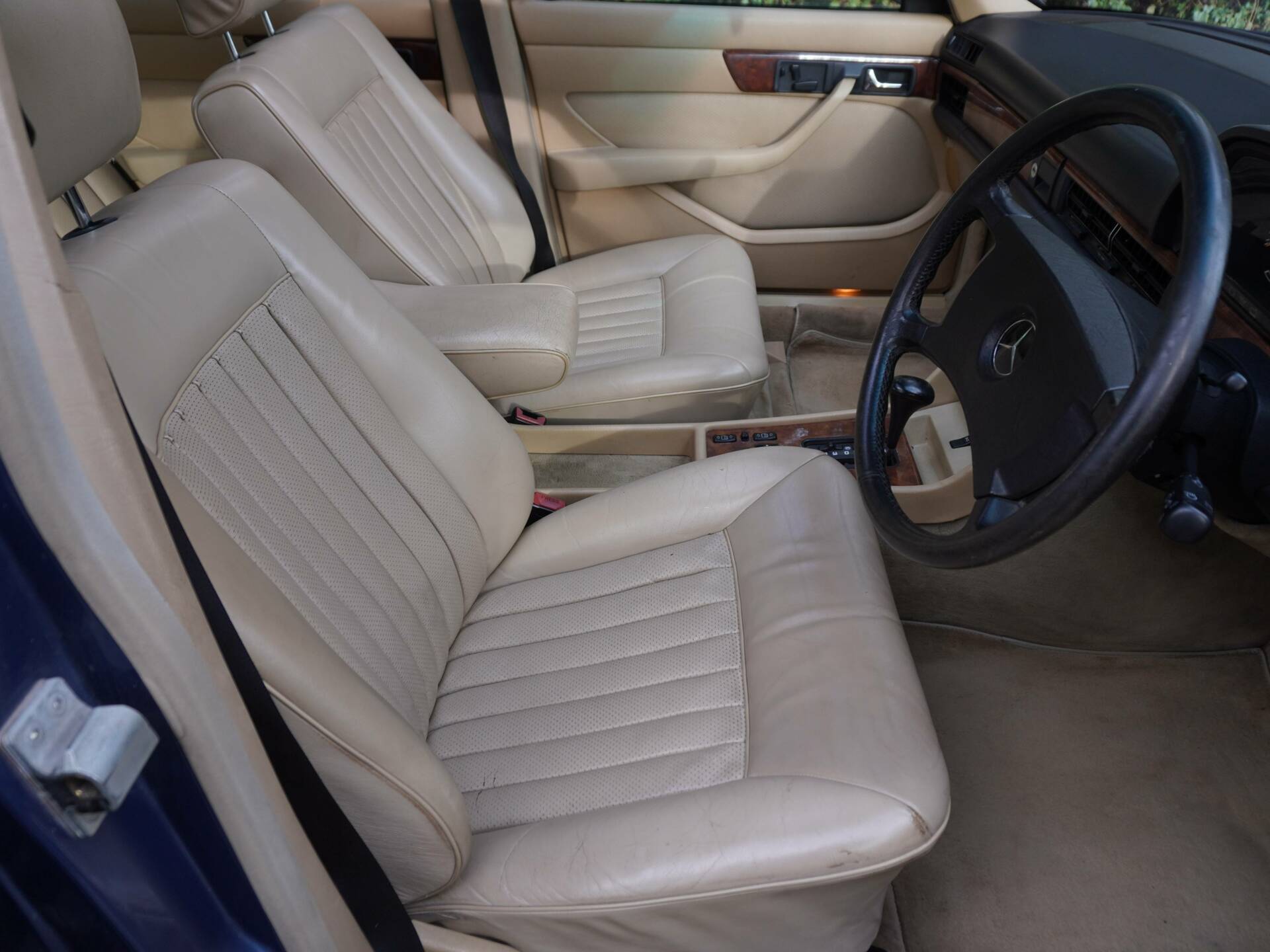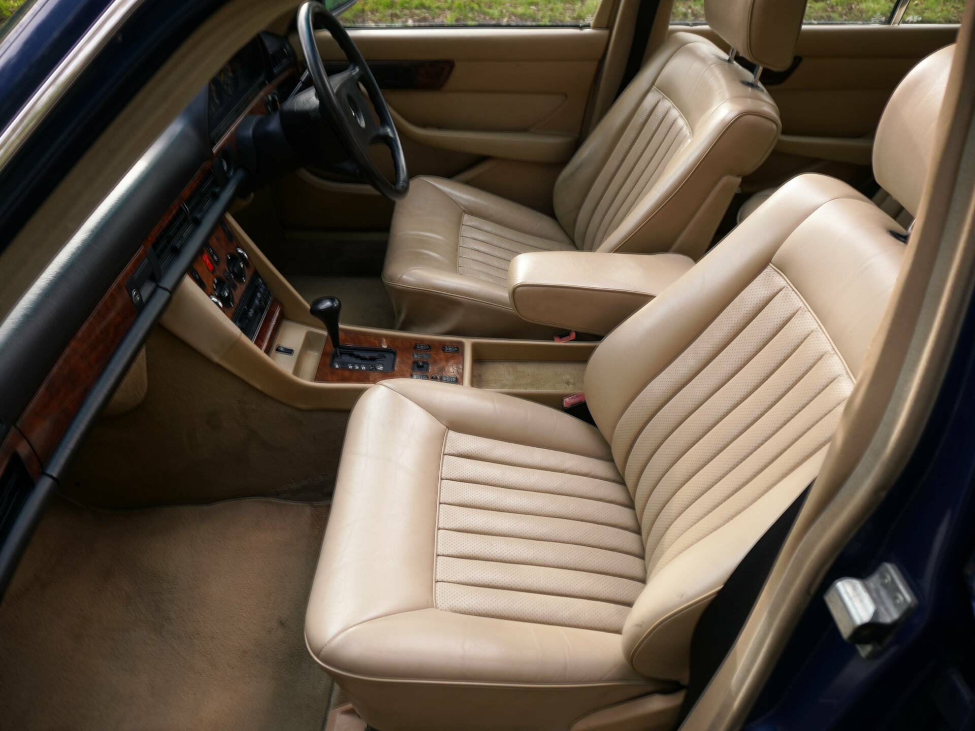 The Mercedes 500SE is a fabulous modern classic boasting a tremendous specification from the factory and earns the title as the epitome of a premium 80s saloon. Luxury materials adorn the cabin, the Beige leather seats have been incredibly well preserved and feel both comfortable and supportive. Advanced climate control and many functions being electrically operated immerse the riders in a feel of over-engineered German quality.
