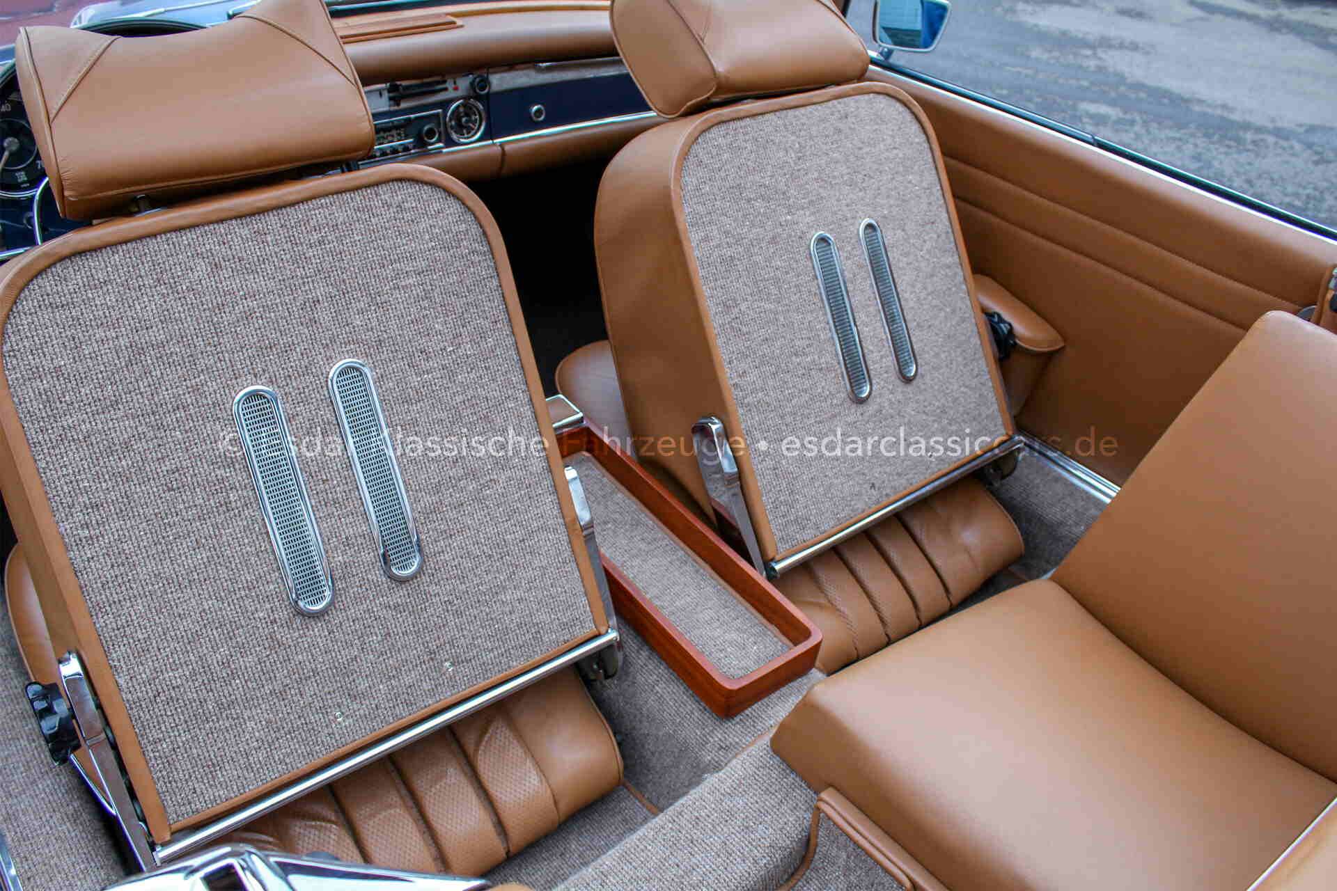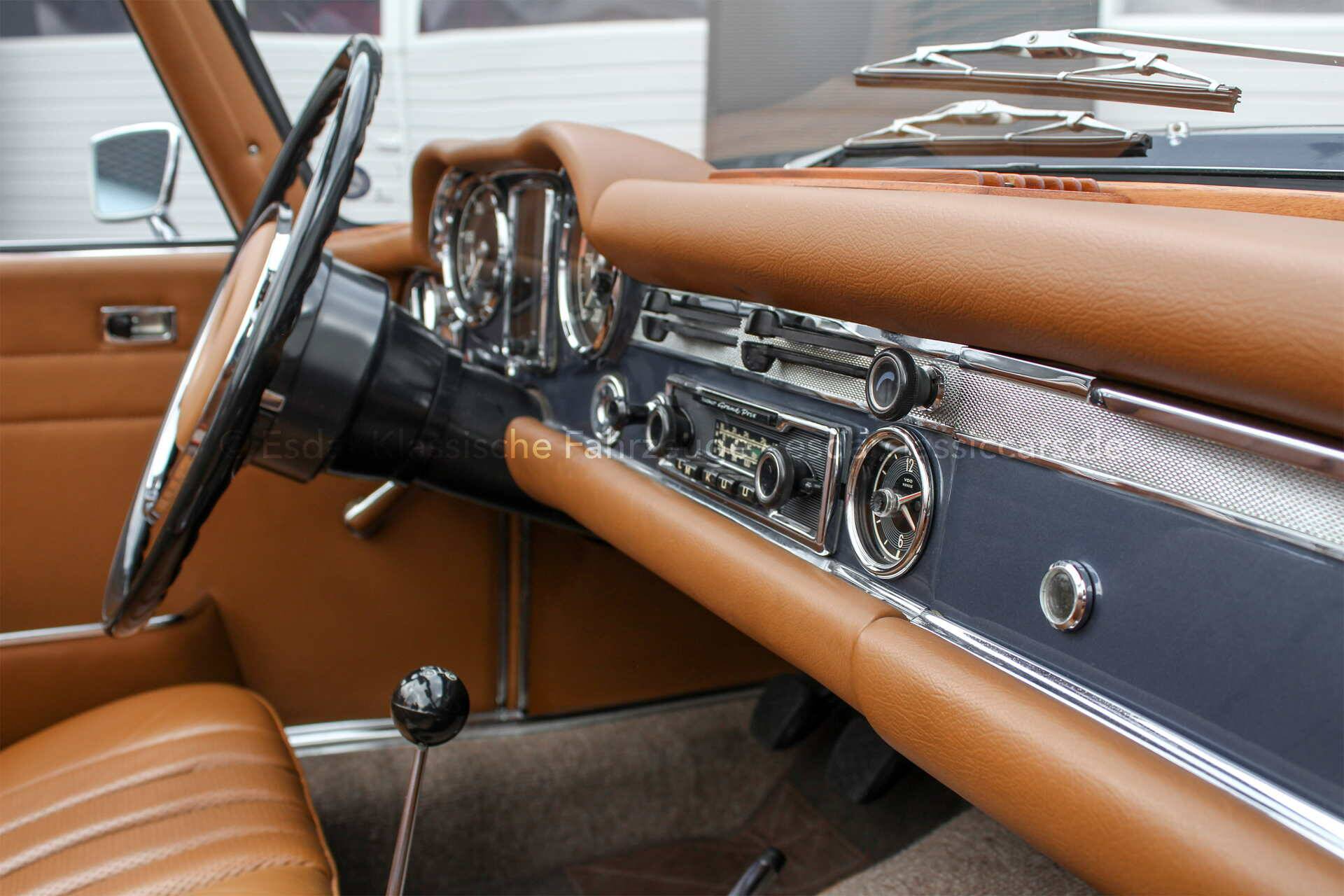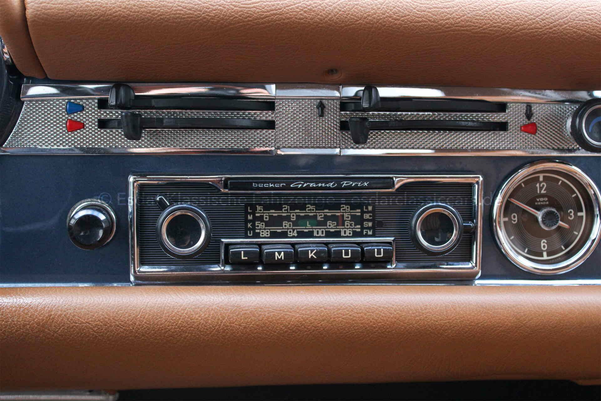 Zu den besonderen Ausstattungsmerkmalen zählen der seltene Drittsitz (Notsitz) sowie ein Becker Grand Prix Radio. Das Fahrzeug verfügt über ein originales Hardtop inklusive originaler Mercedes-Benz Transportkiste. Zudem ist ein originales Windschott vorhanden. Die Kombination aus originalem Farbton, deutscher Erstauslieferung, Handschaltgetriebe und umfangreichem Zubehör macht diese Pagode besonders attraktiv.