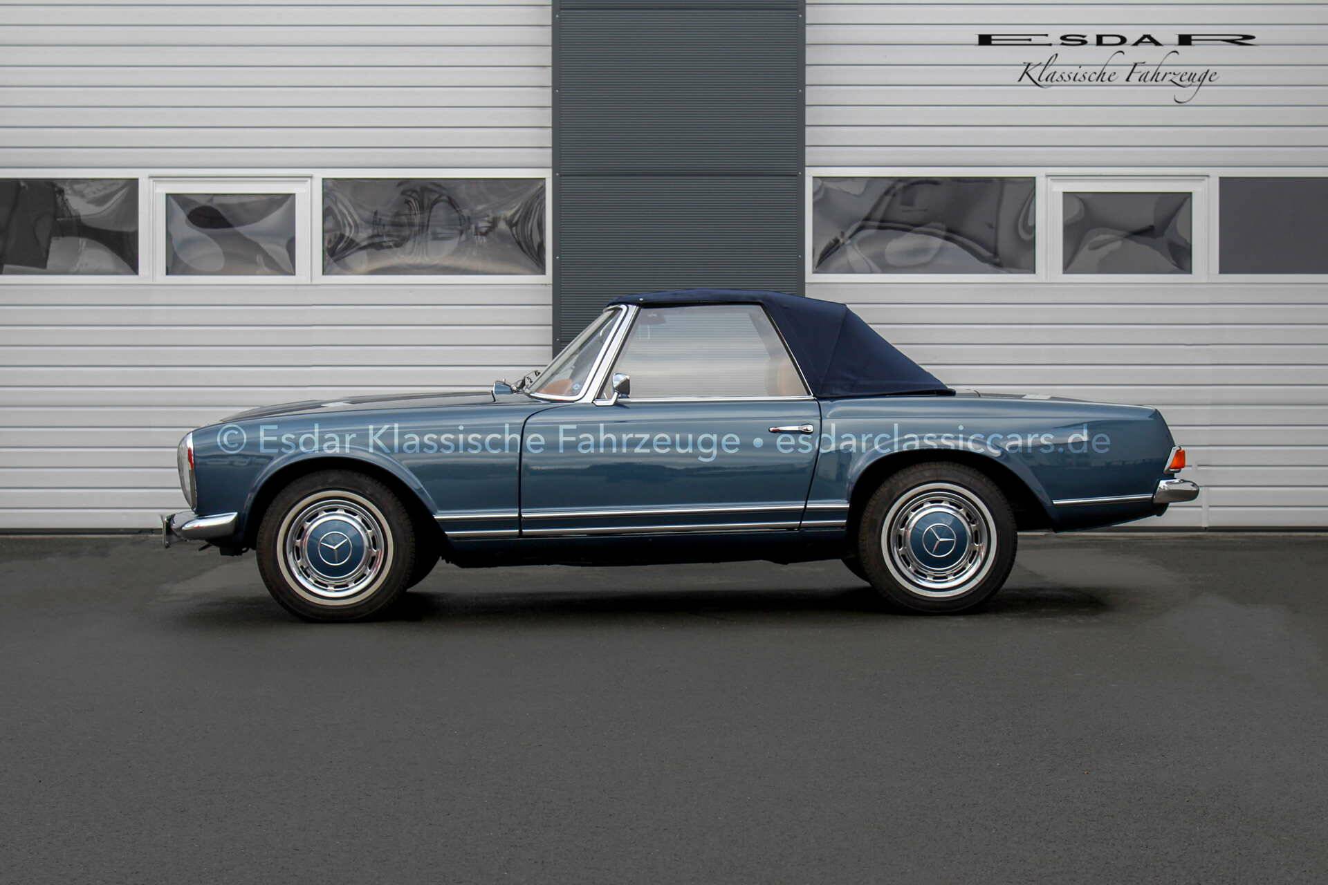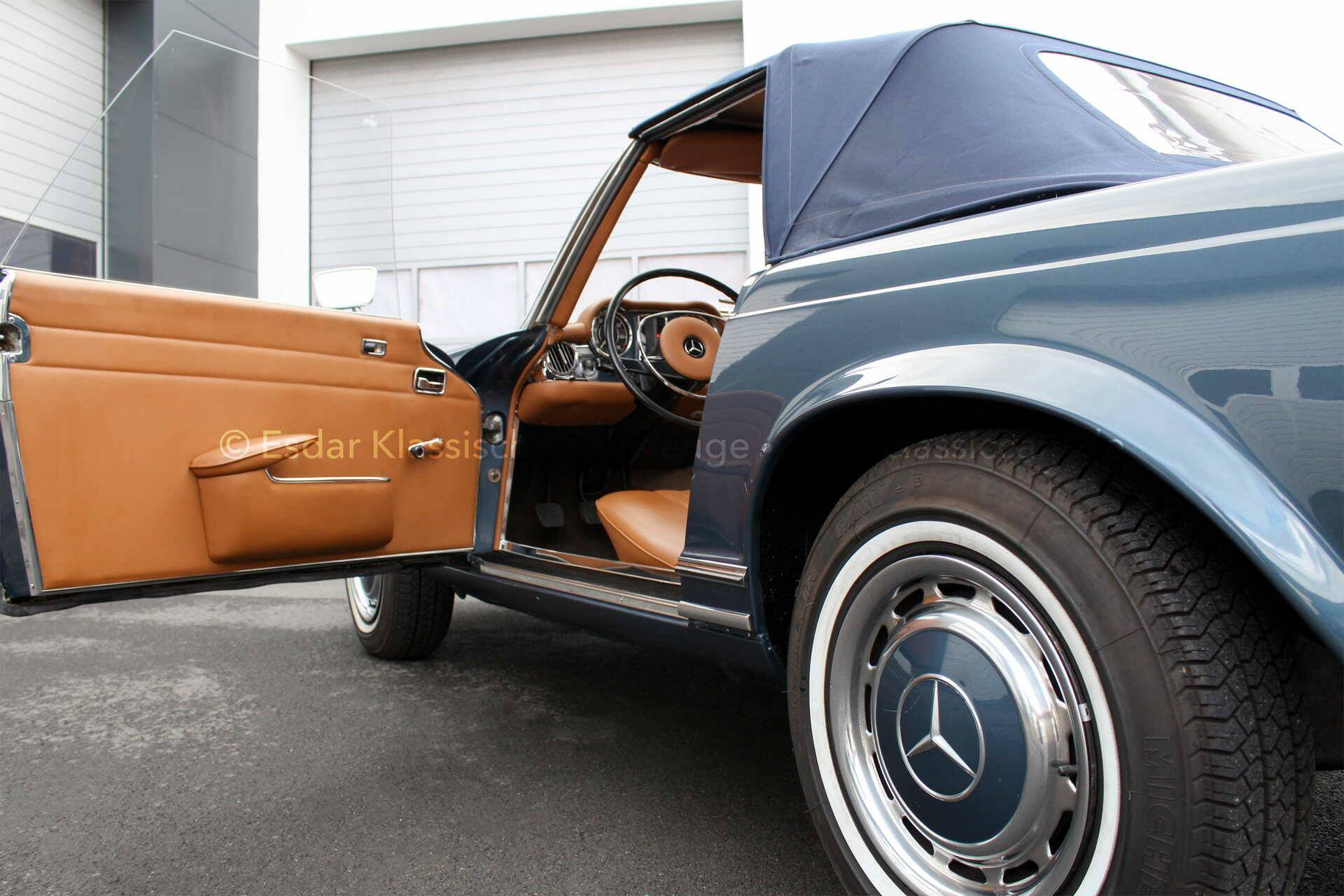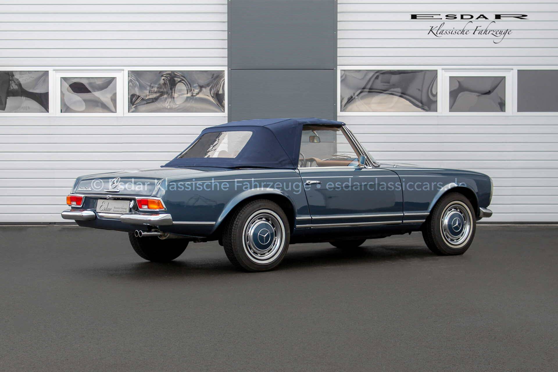Das Fahrzeug wurde 1969 in Deutschland ausgeliefert und war seitdem ausschließlich in Deutschland zugelassen. Im Jahr 2011 erfolgte eine umfangreiche Restauration, in deren Zuge das Fahrzeug vollständig neu lackiert wurde. Die Lackierung erfolgte im originalen Farbton 387 Blaumetallic. In genau dieser Farbe verließ die Pagode 1969 auch das Werk. Der Innenraum ist heute mit braunem Leder in Safran-Braun ausgestattet. Original wurde das Fahrzeug in MB-Tex Kunstleder weiß ausgeliefert.