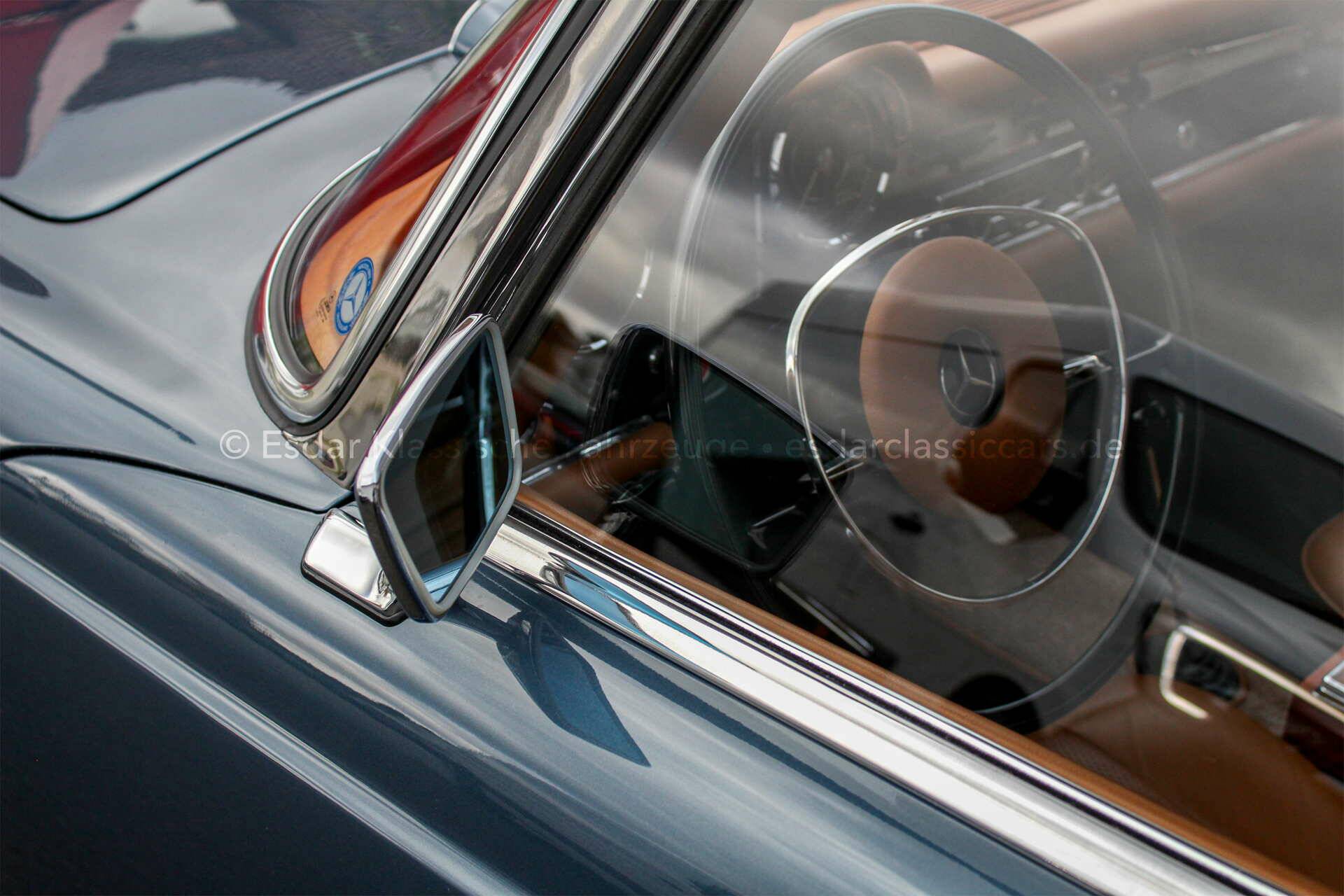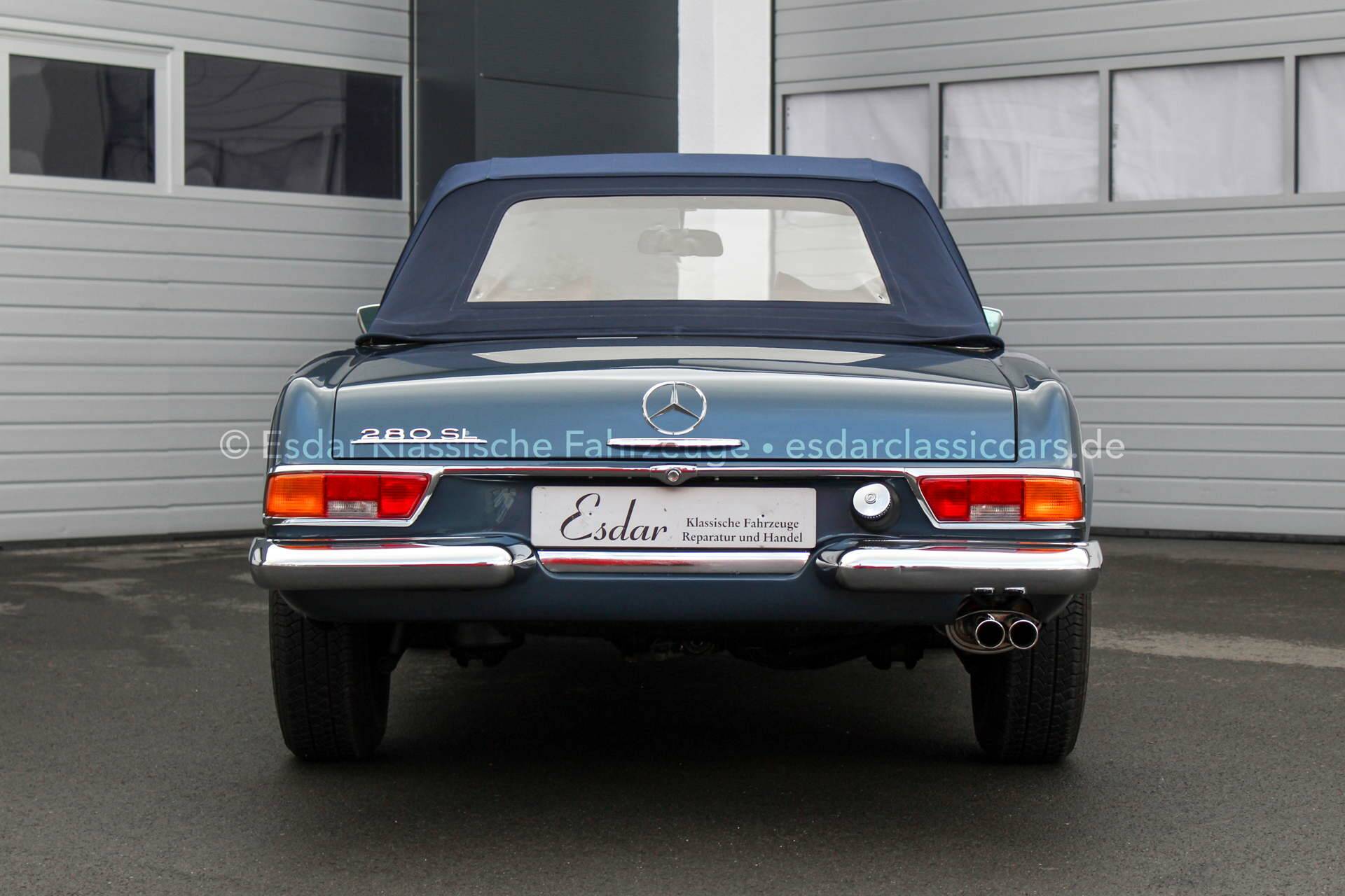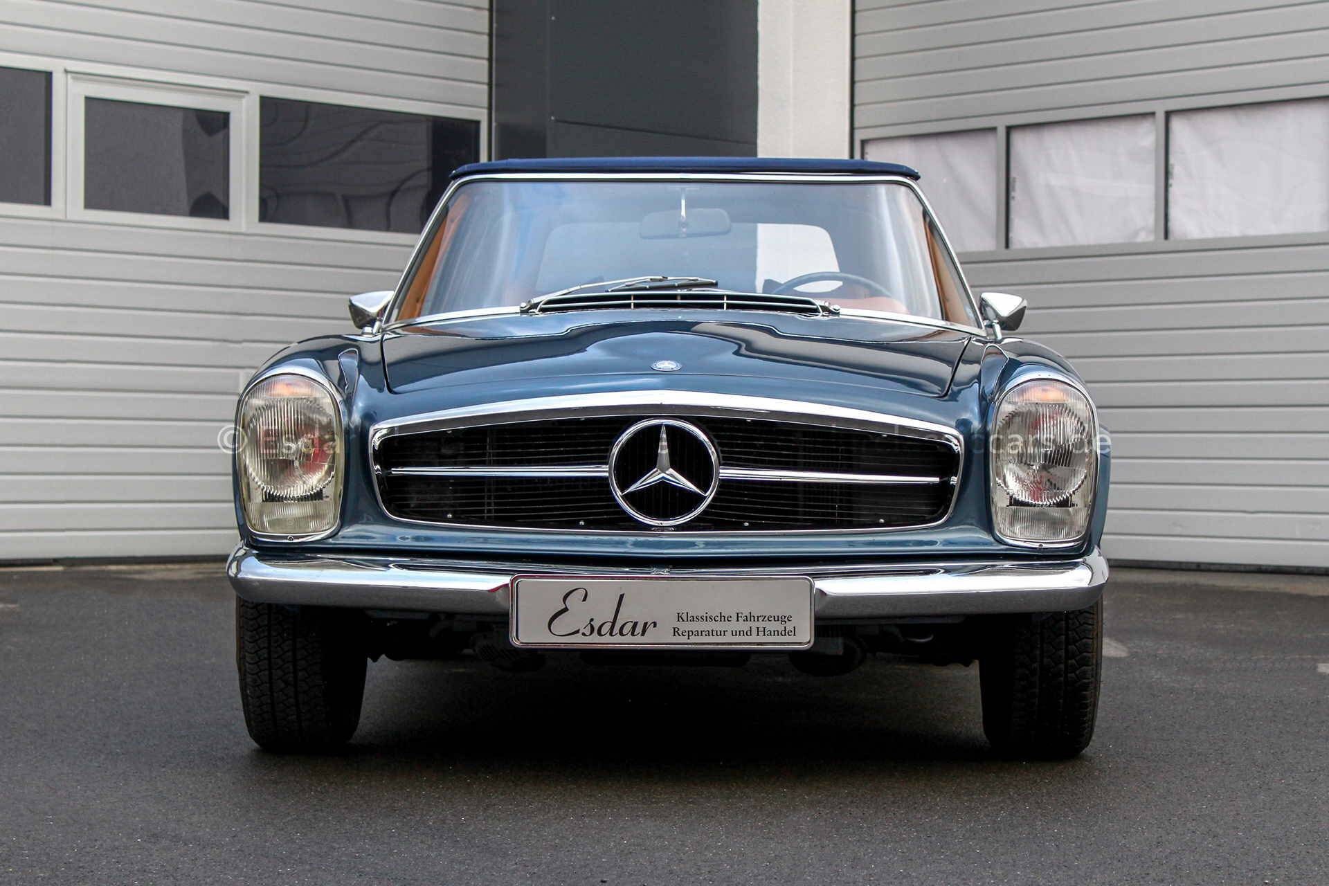 Das Fahrzeug wurde 1969 in Deutschland ausgeliefert und war seitdem ausschließlich in Deutschland zugelassen. Im Jahr 2011 erfolgte eine umfangreiche Restauration, in deren Zuge das Fahrzeug vollständig neu lackiert wurde. Die Lackierung erfolgte im originalen Farbton 387 Blaumetallic. In genau dieser Farbe verließ die Pagode 1969 auch das Werk. Der Innenraum ist heute mit braunem Leder in Safran-Braun ausgestattet. Original wurde das Fahrzeug in MB-Tex Kunstleder weiß ausgeliefert.