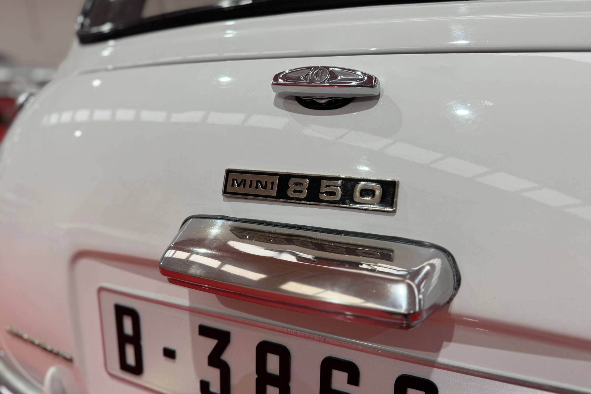 Classic Mini 850, white with black racing stripes, in very good overall condition and with a beautiful, eye-catching look.