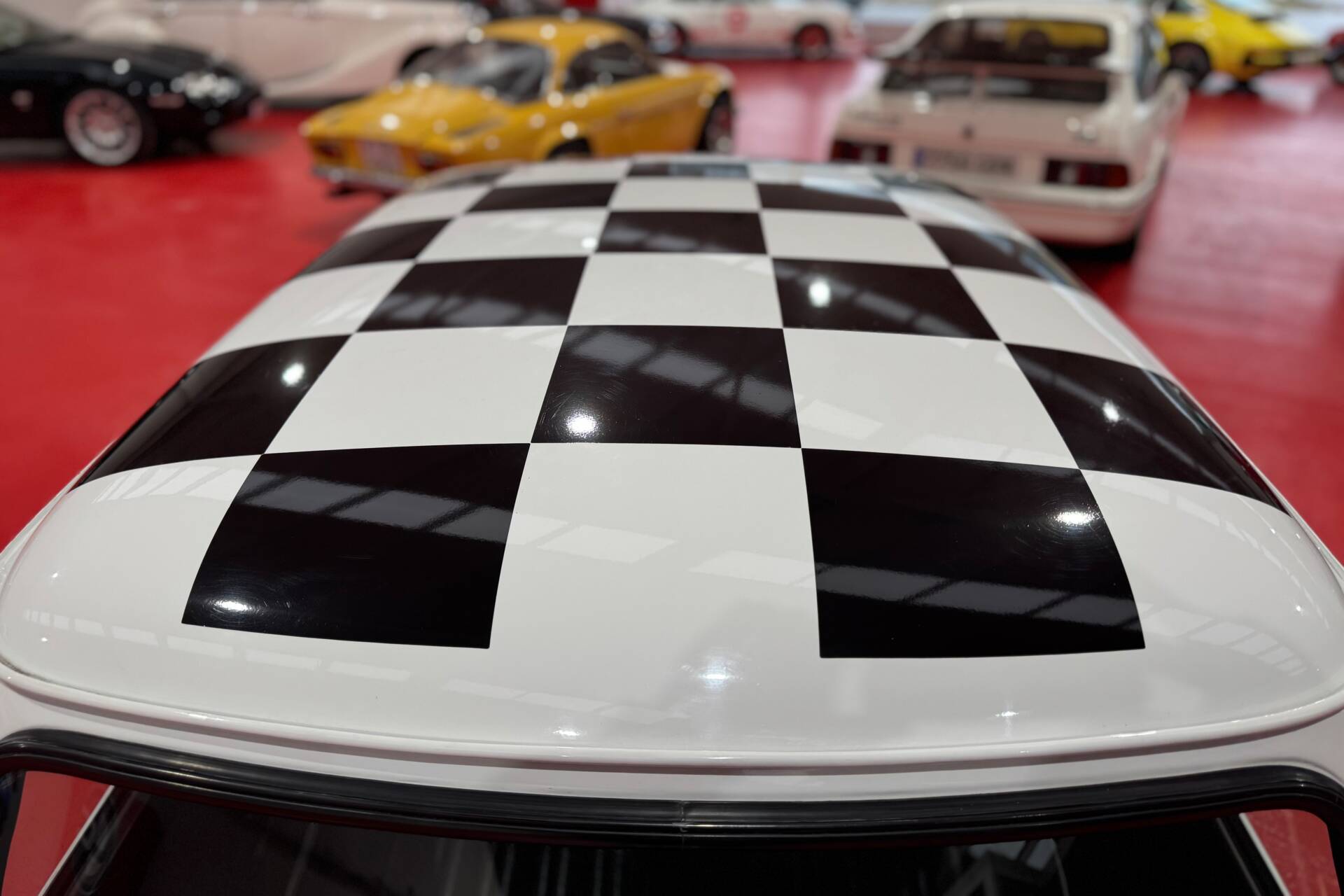 Mini 850 clásico, en color blanco con franjas deportivas negras, en muy buen estado general y con una estética preciosa que no pasa desapercibida.
