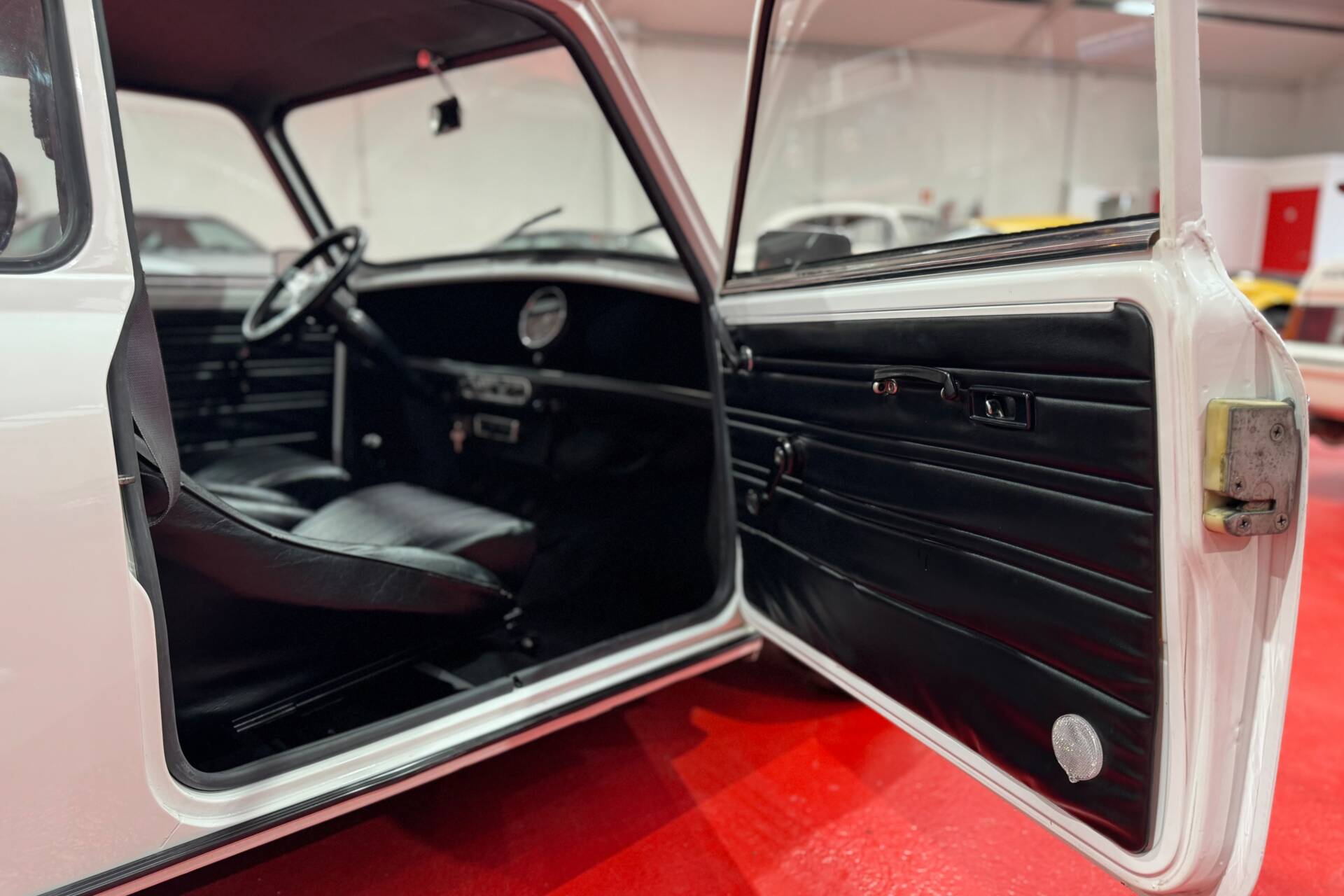 The car boasts a meticulously maintained body, with excellent paintwork, gleaming chrome, and original details that respect the essence of the classic Mini. The interior is in very good condition, clean and well-preserved, in keeping with the model's original style.